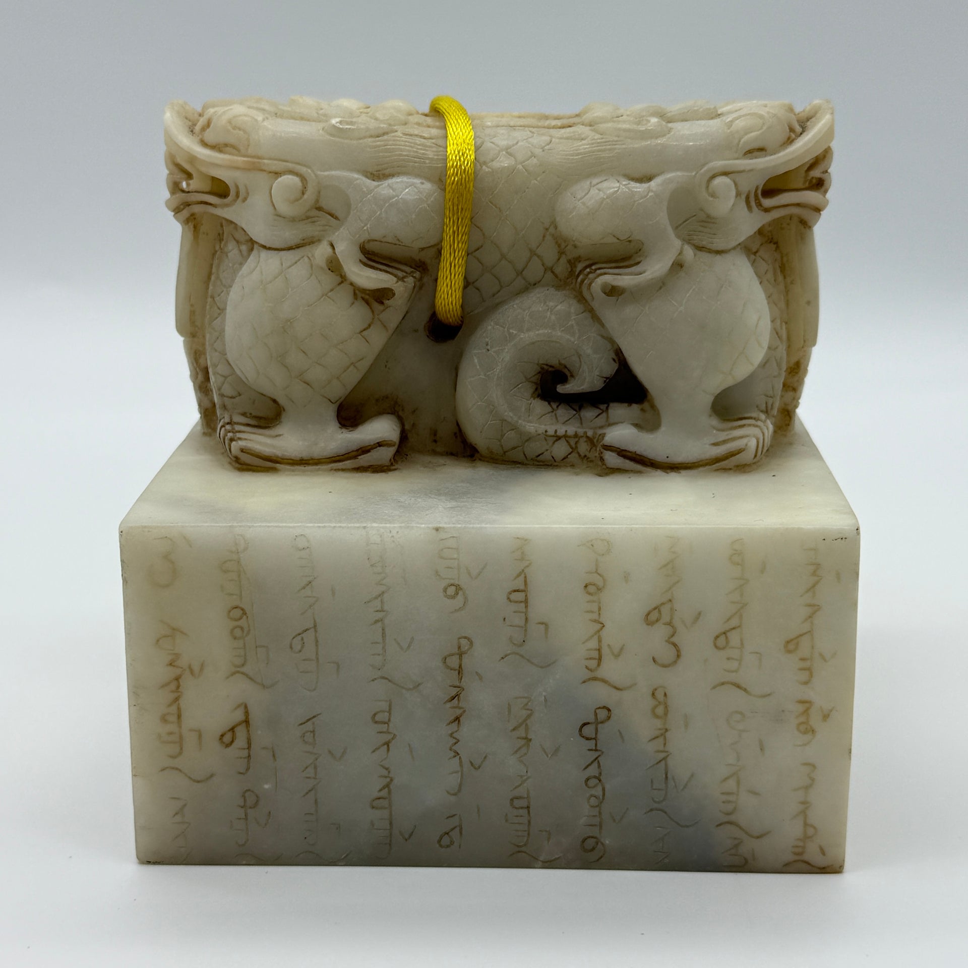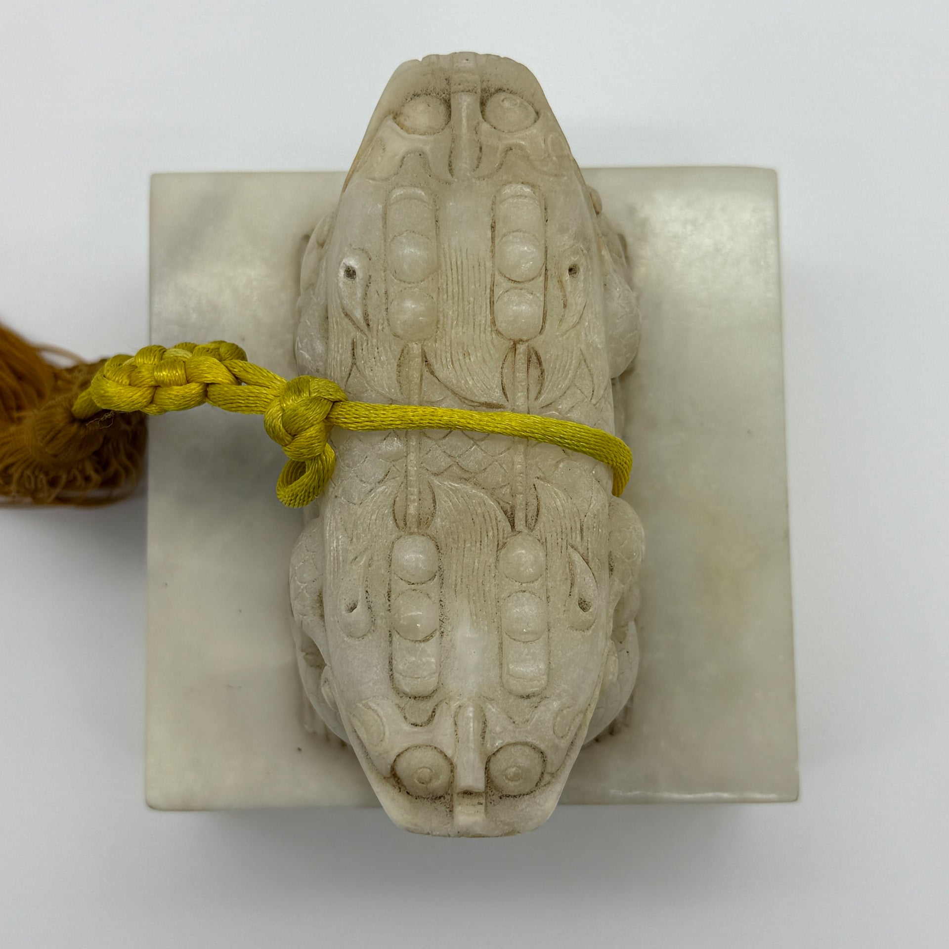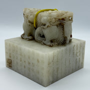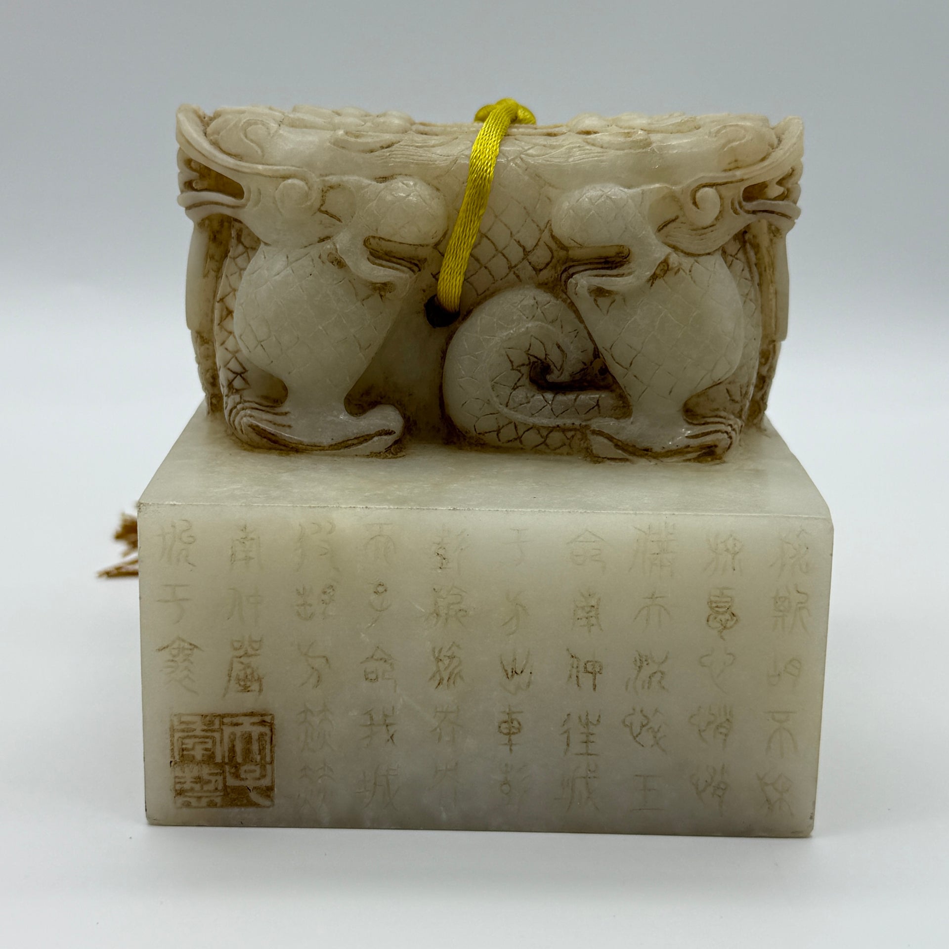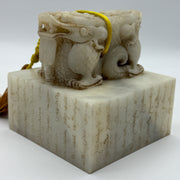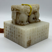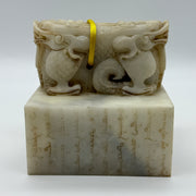 Rare Antique Natural Old Mine Yellowish White Nephrite Double Headed Dragon Seal 2,023.4g 101.4 by 101.0 by 110.0mm