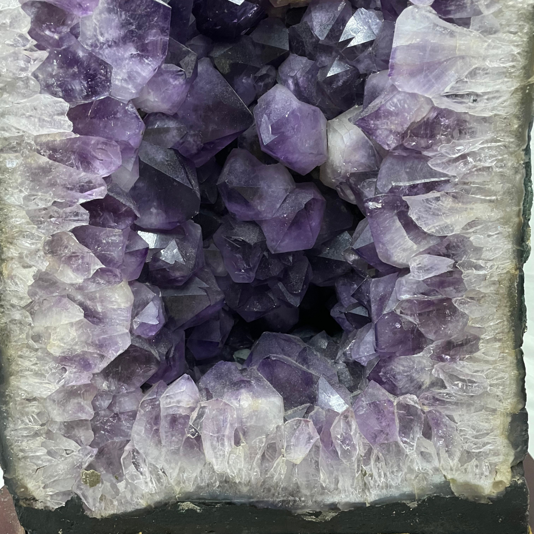 Thick Large Crystal Brazil Natural Amethyst Display Wooden Stand - 78.6kg 815 by 445 by 420mm