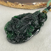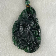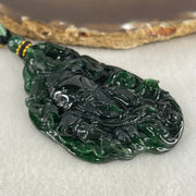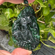 The Sovereign Sage | Rare High-End Grand Master Type A Full Spicy Green Jadeite Guan Gong with Scroll Pendant 48.01g 72.0 by 44.8 by 9.3mm