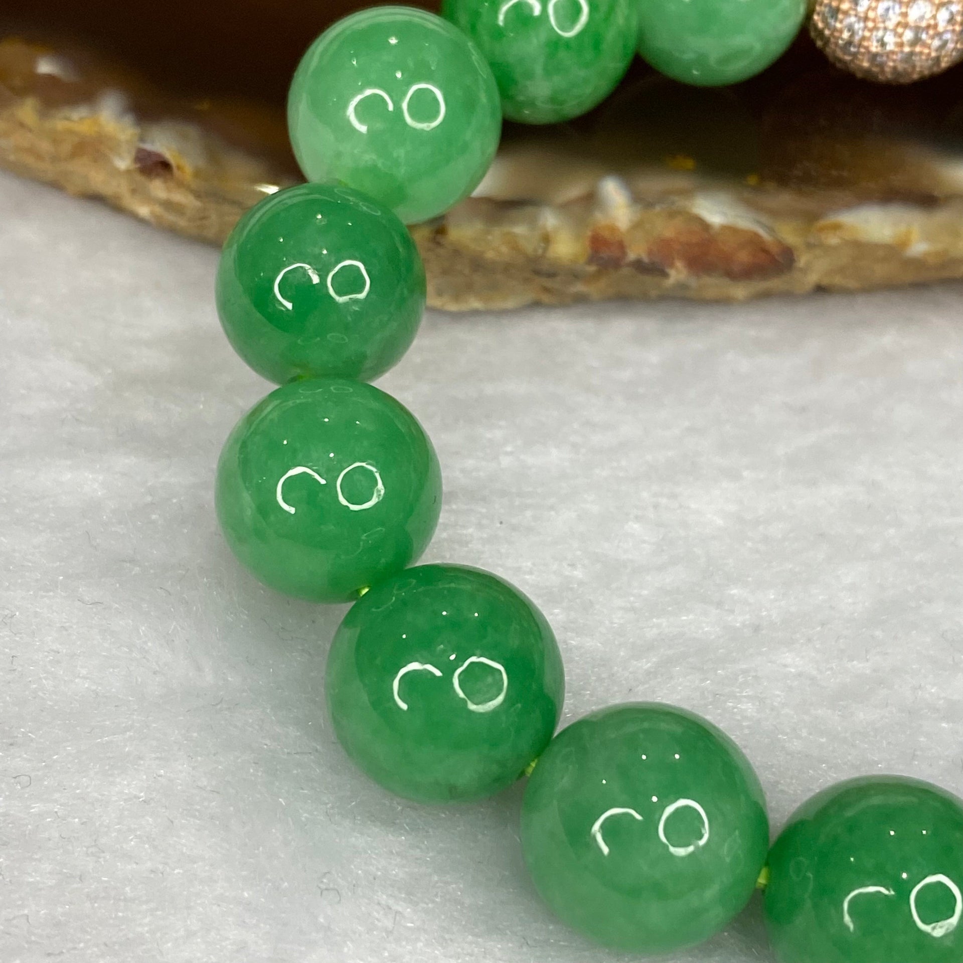 Rare High End Type A Full Spicy Green Myanmar Burmese Jadeite Beads Bracelet 49.02g 12.2mm 16 Beads