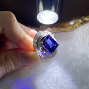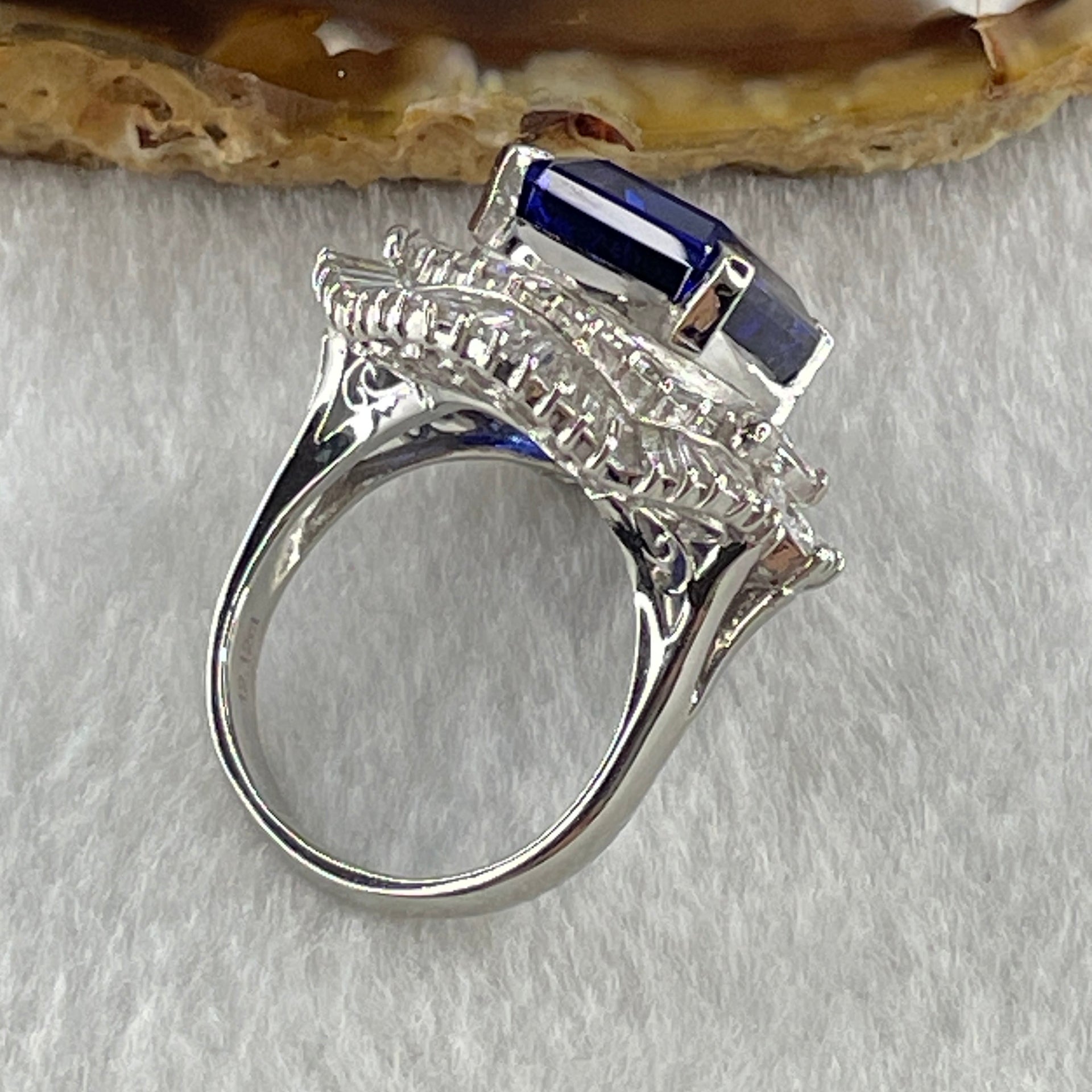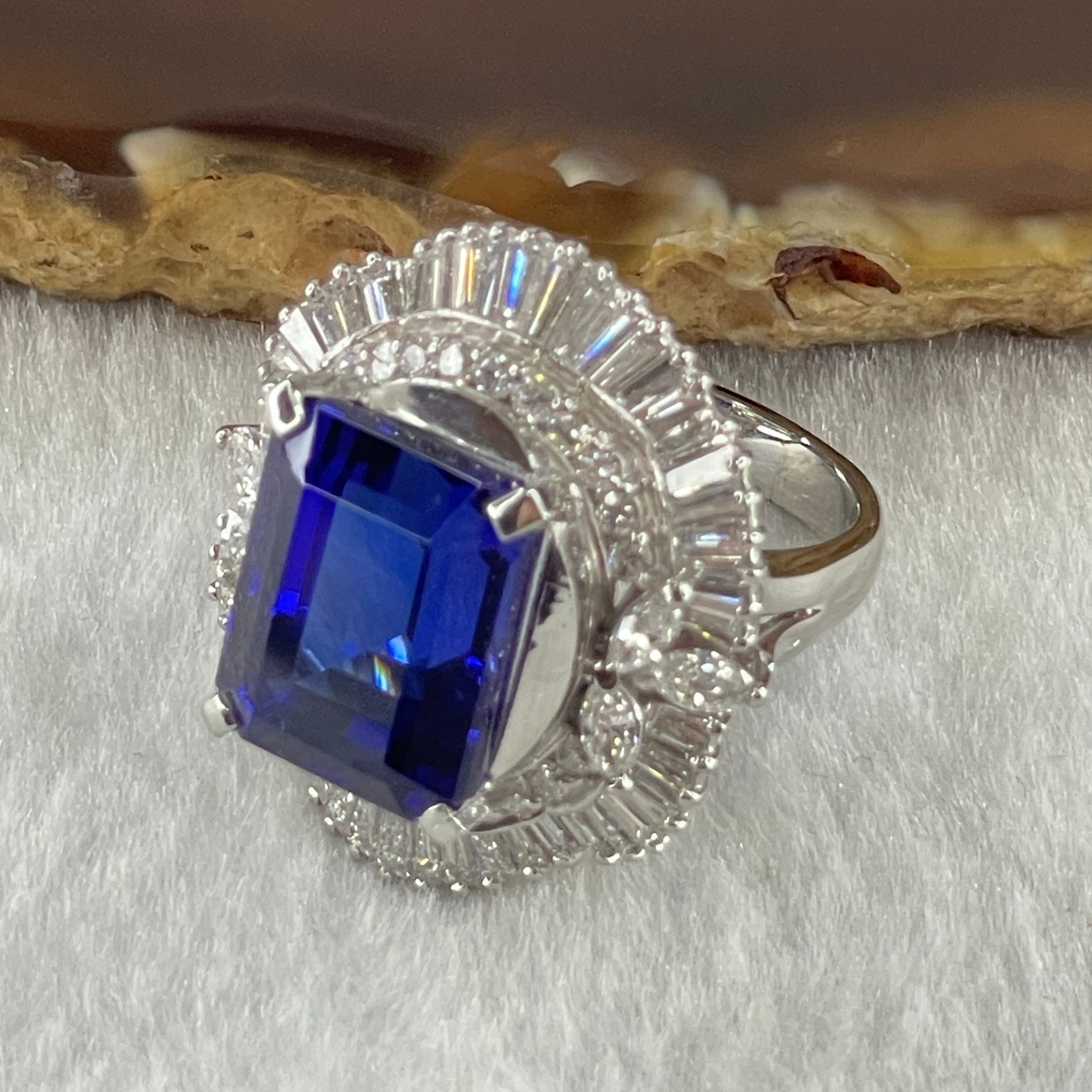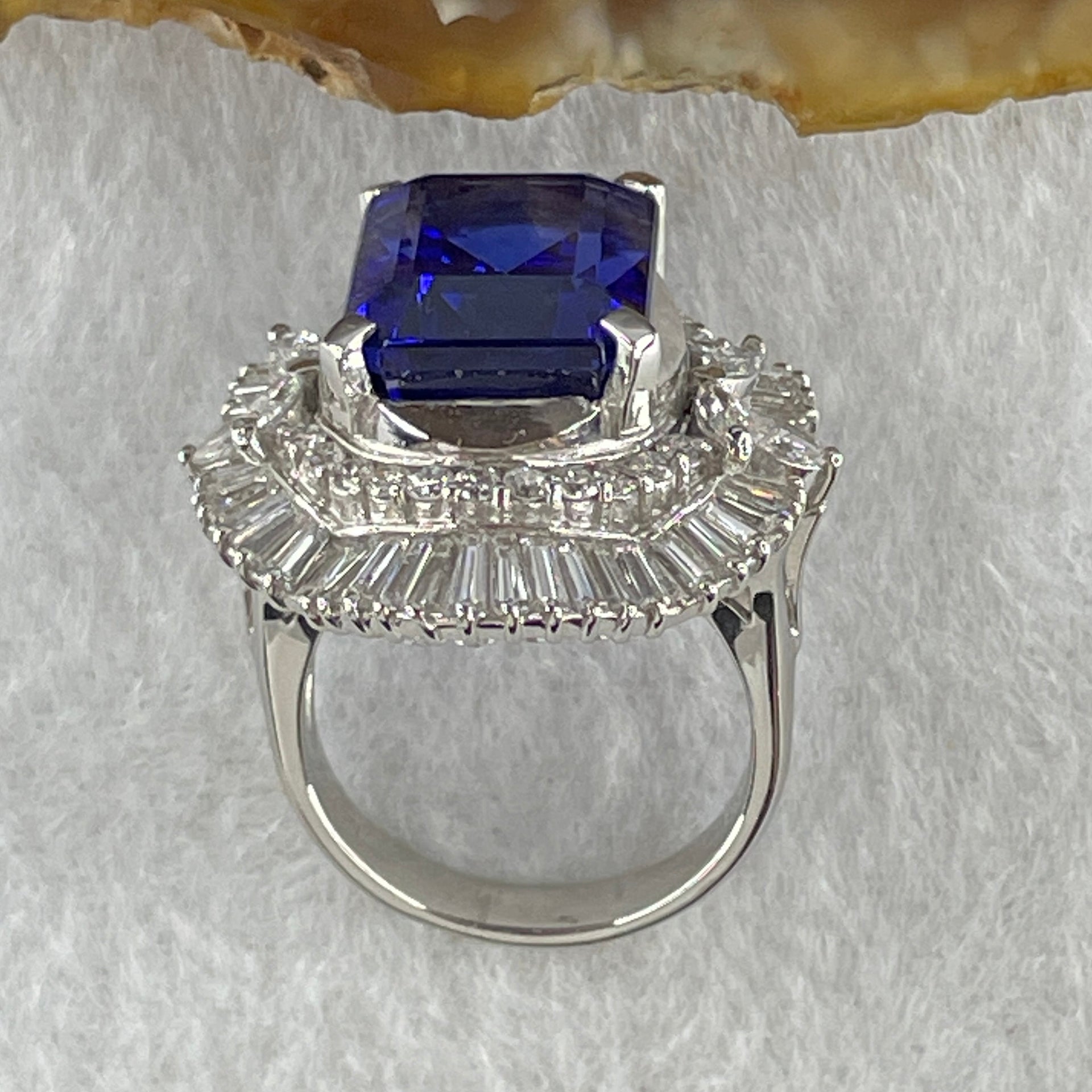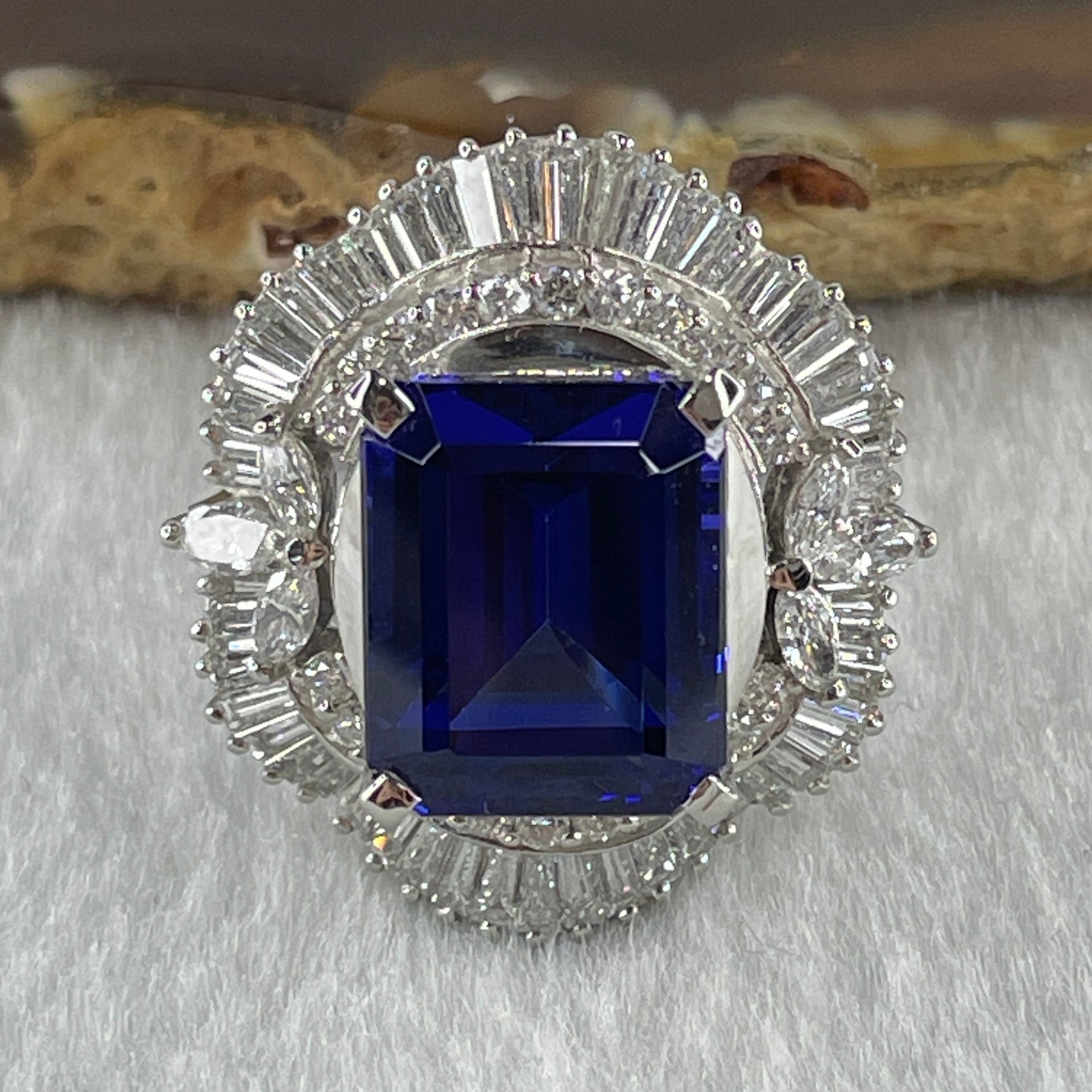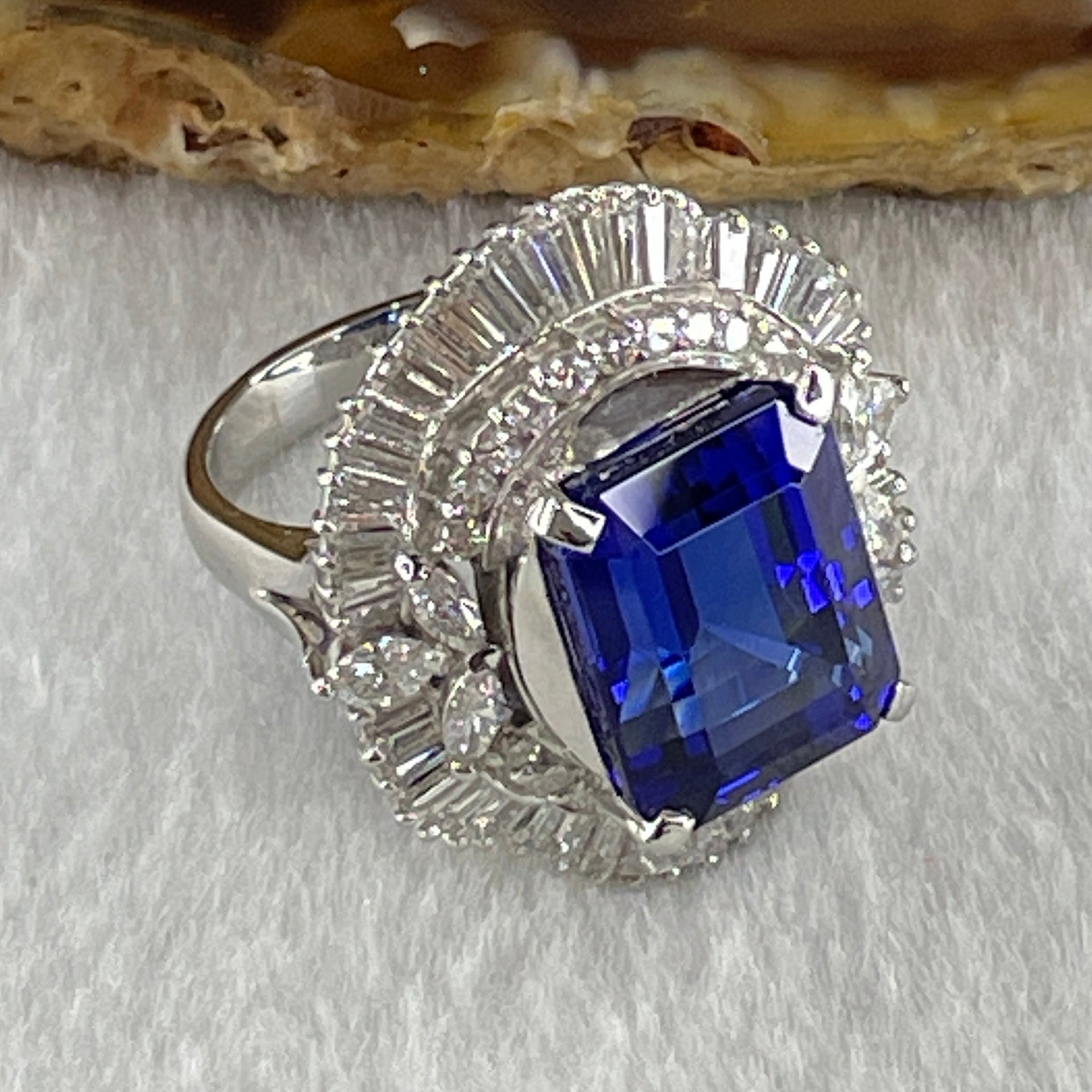 Very High Grade Natural Blue Tanzanite 12.12ct Natural Diamonds 2.33ct Platinum PT900 15.21g Ring Total 15.85g US6 HK13 EU52 Inner Diameter 16.5mm