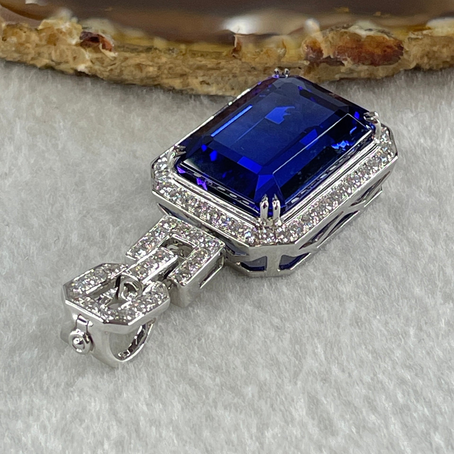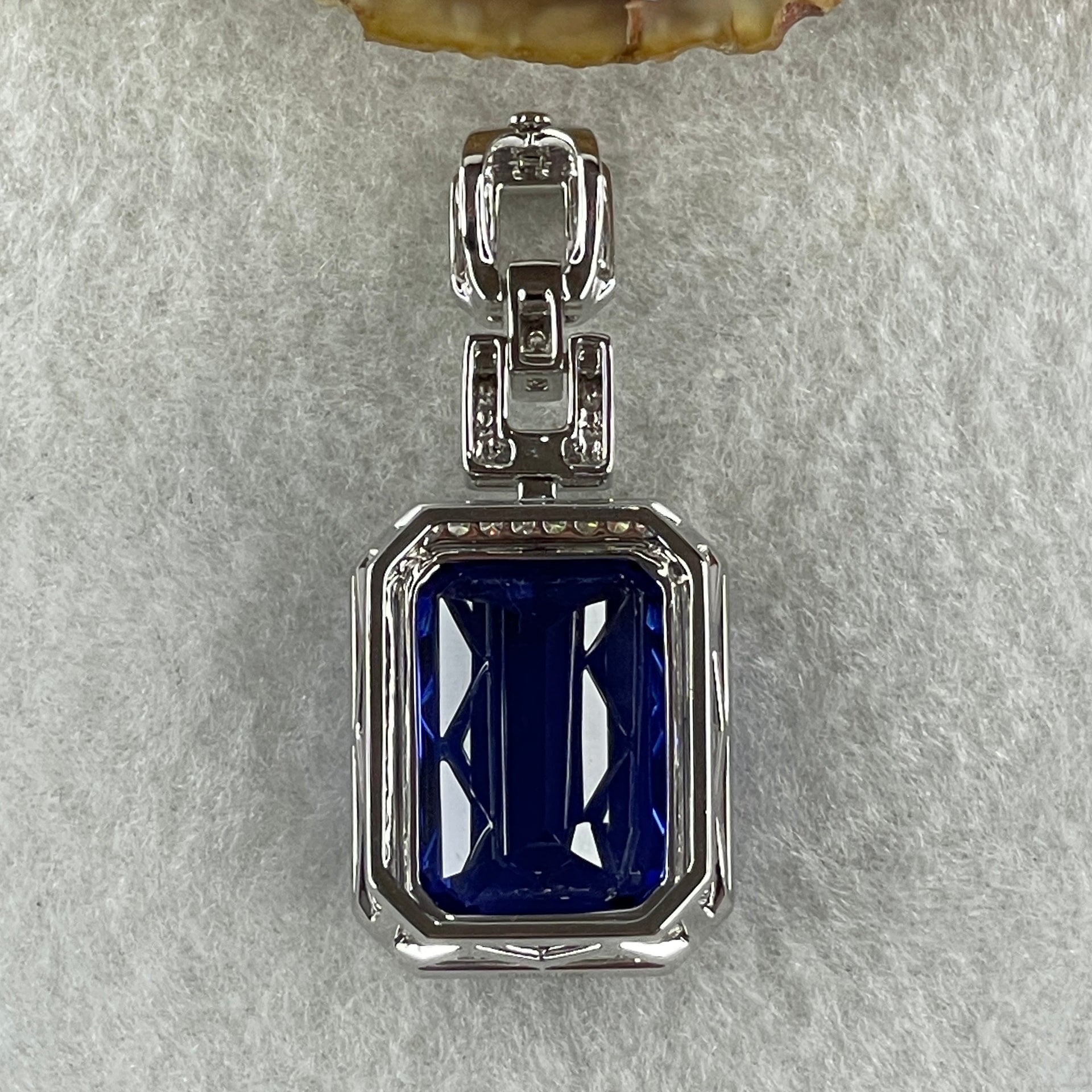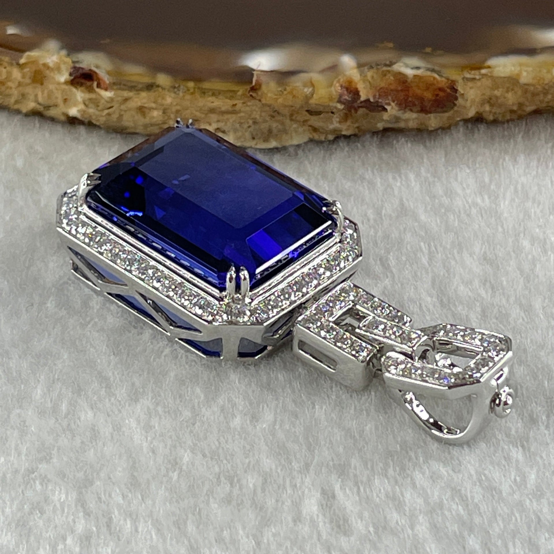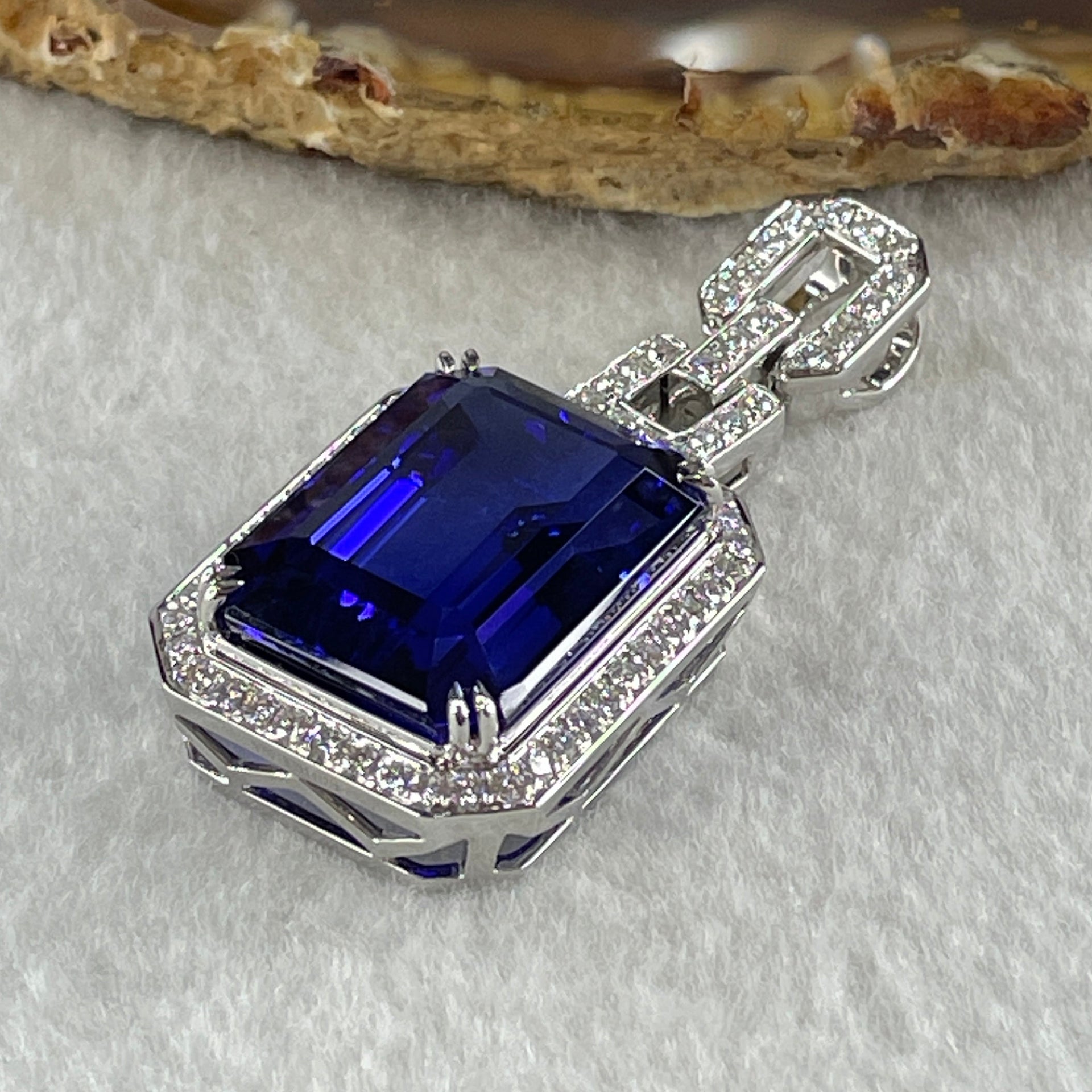 GIA Certified Very High Grade Natural Blue Tanzanite 35.93ct 21.79 by 16.03 by 10.69mm Natural Diamonds 1.27ct Au750 White Gold Pendant Total 20.64g