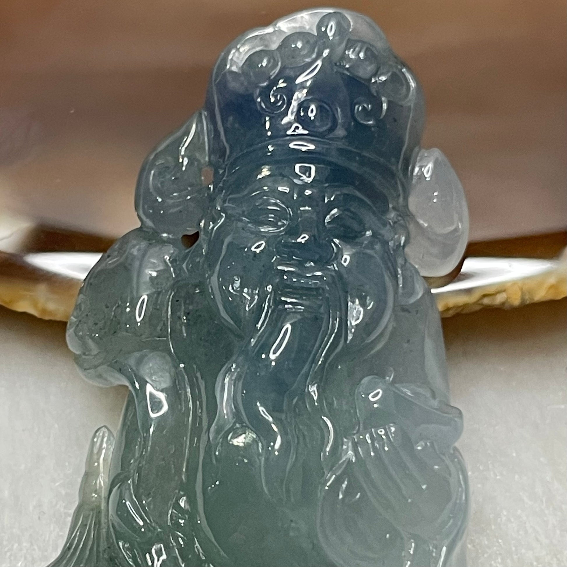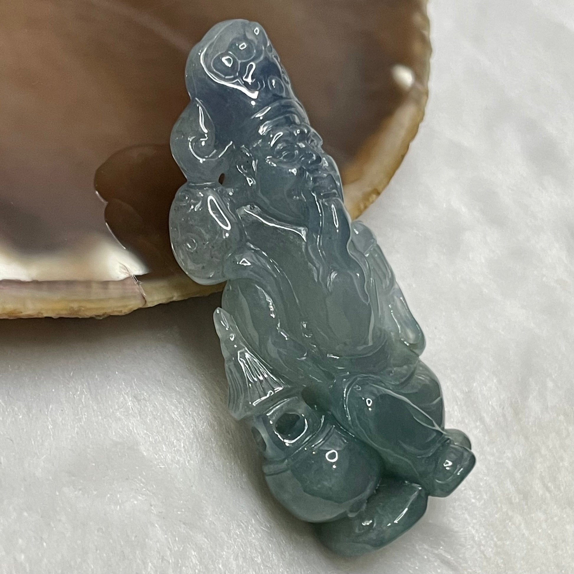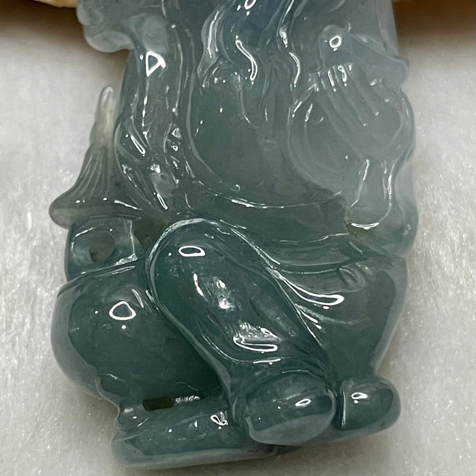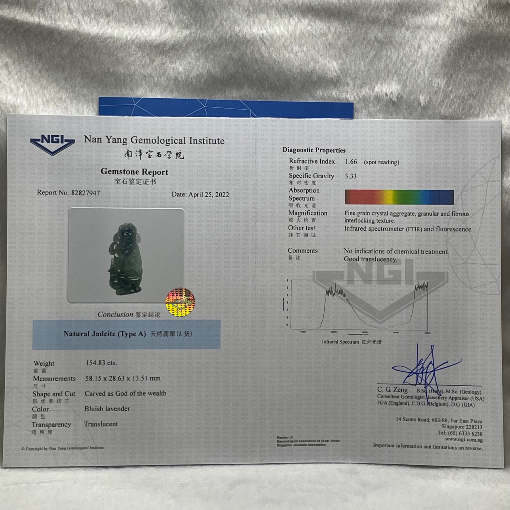 18K Gold Rare Type A Blueish Green with Lavender Jadeite Cai Sheng Ye Pendant for Ultimate Wealth with NGI Cert - 30.9g 59.0 by 28.9 by 12.8mm