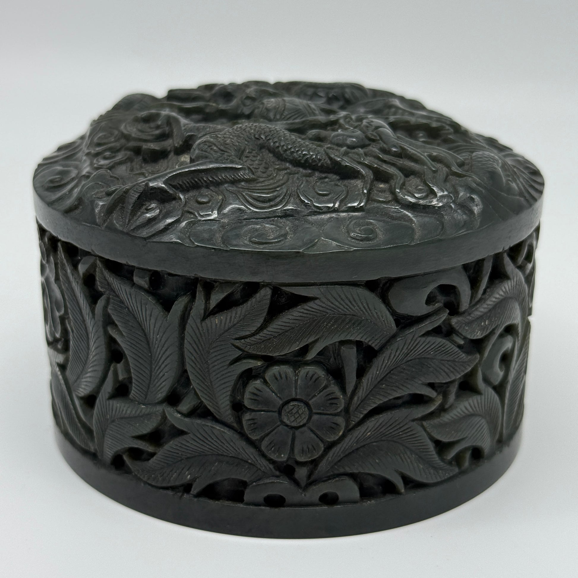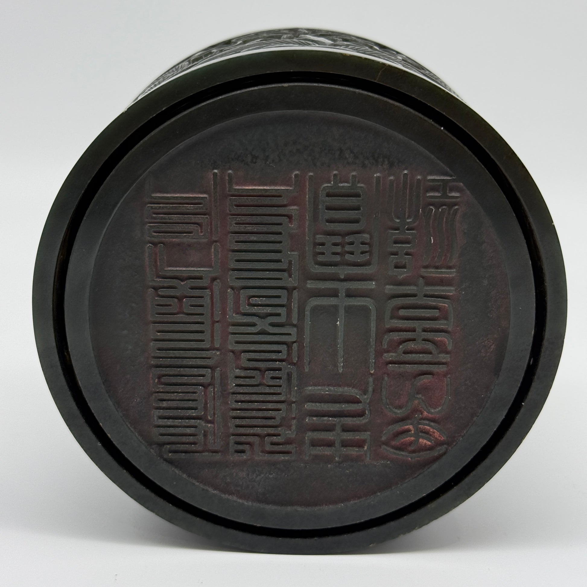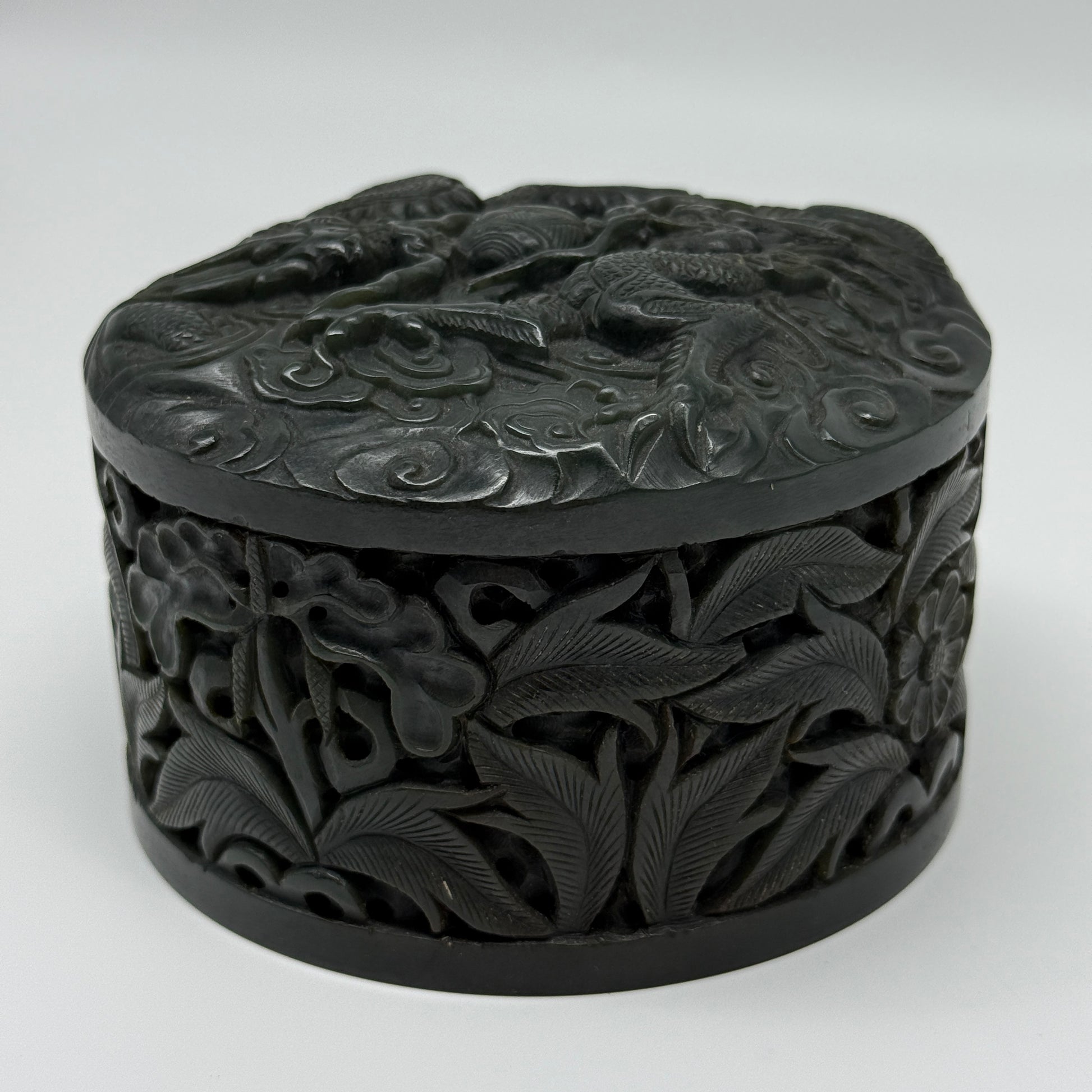 Antique Dark Green Nephrite Double Dragons in Clouds with Flowers and Leaves Seal 1,625.5g 108.2 by 107.6 by 71.6mm