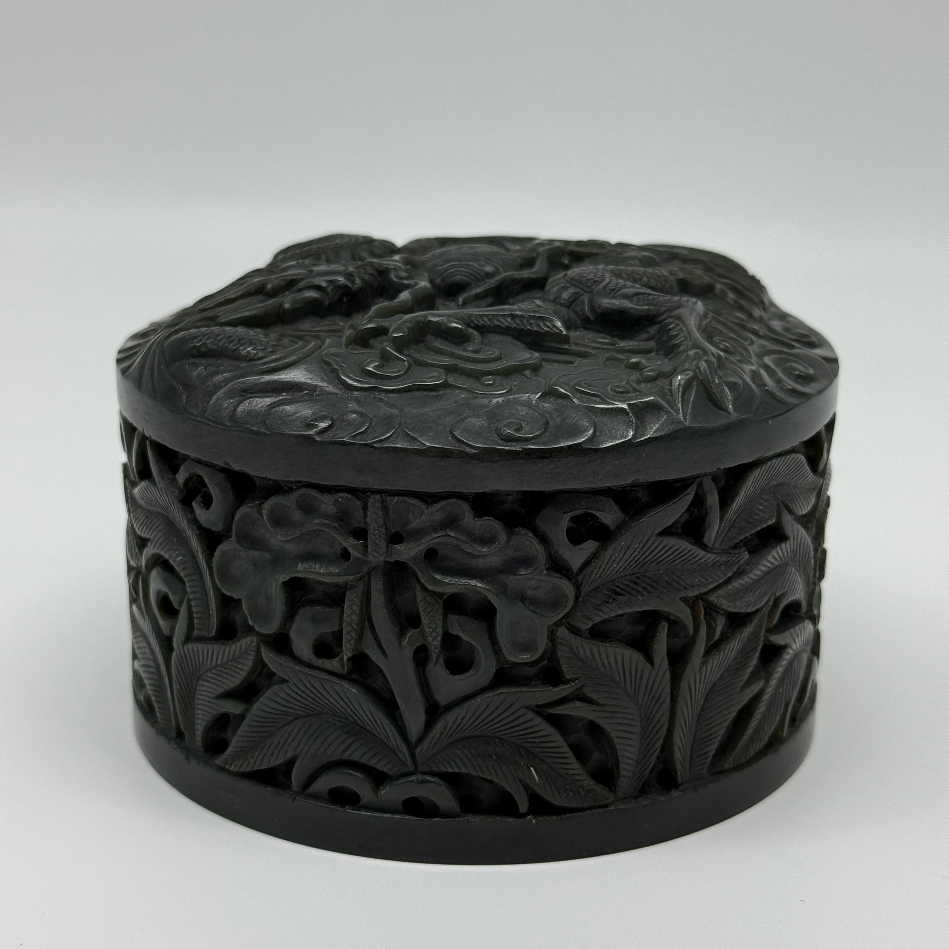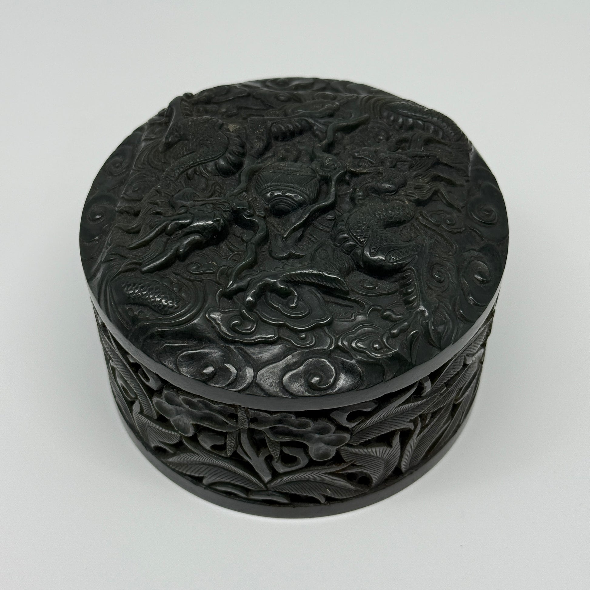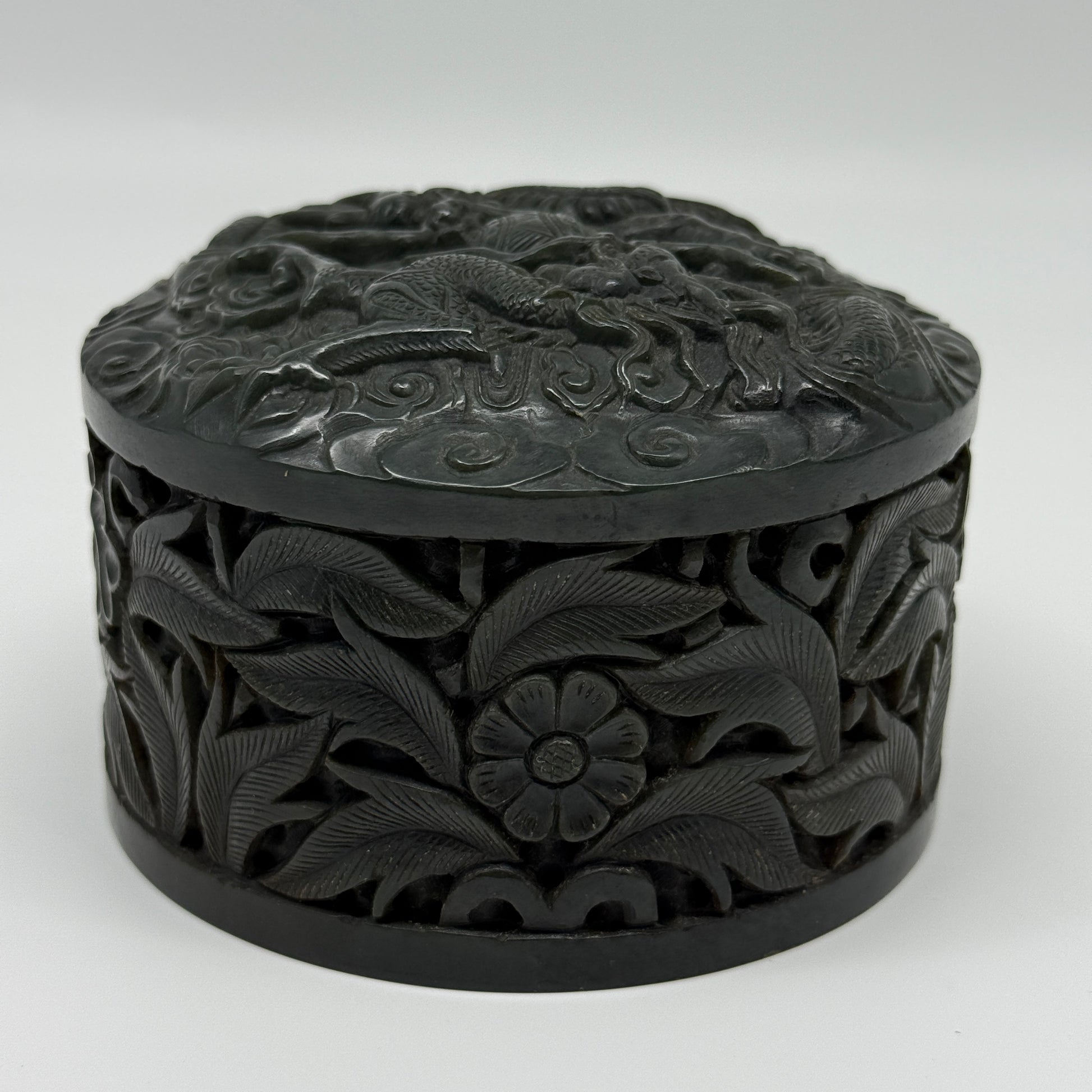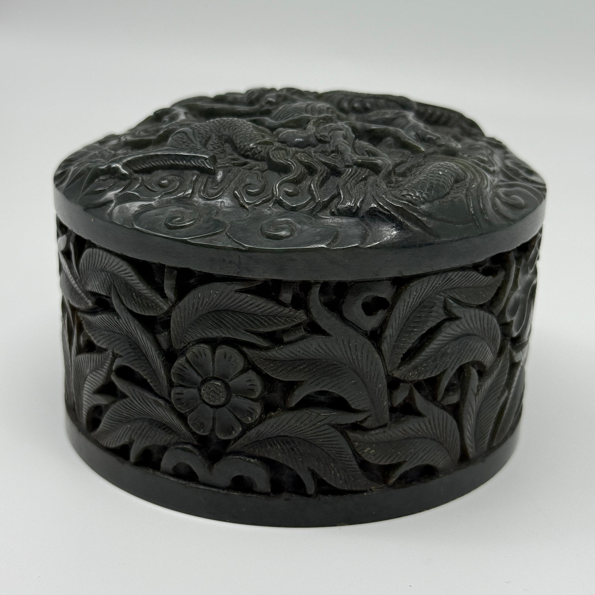 Antique Dark Green Nephrite Double Dragons in Clouds with Flowers and Leaves Seal 1,625.5g 108.2 by 107.6 by 71.6mm