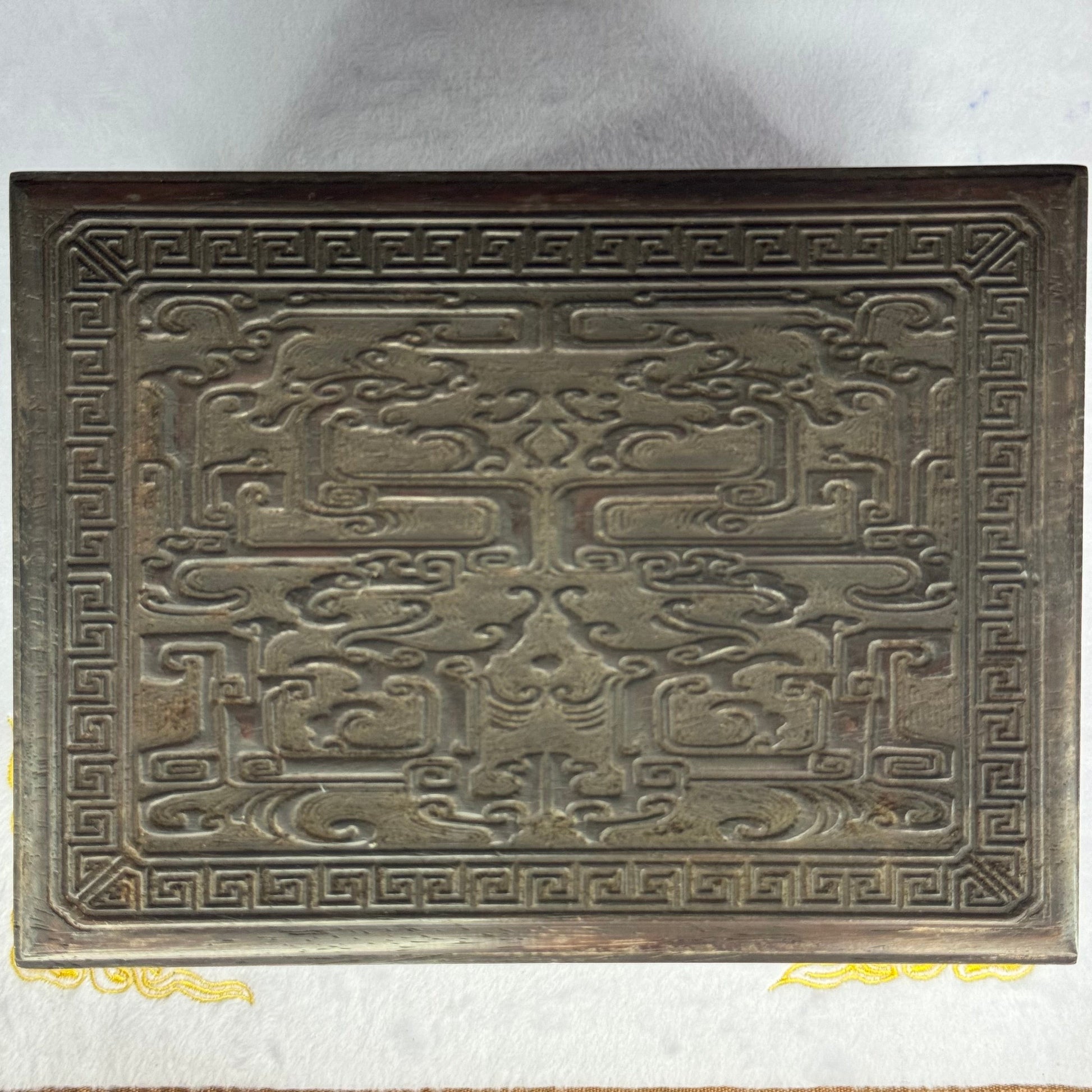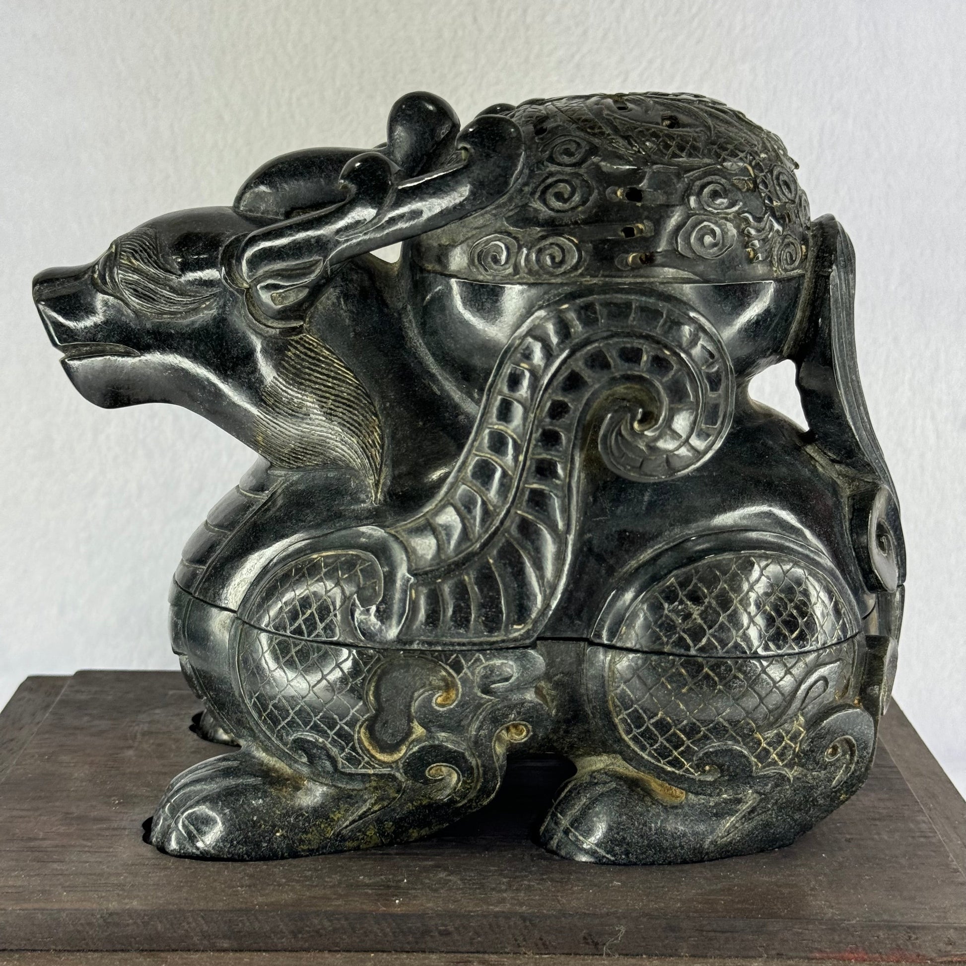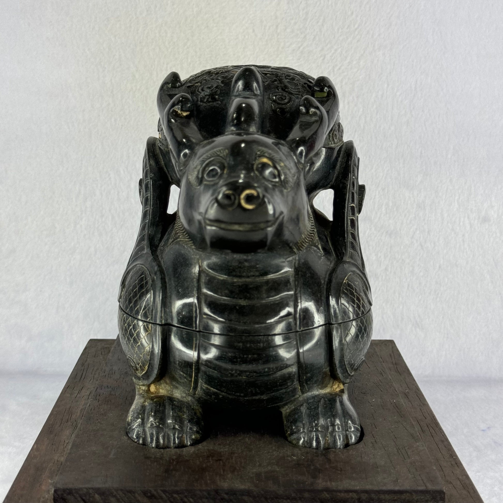 Antique natural nephrite display in heavy old solid wooden box 3,791.3g 191.0 by 243.0 by 215.0mm