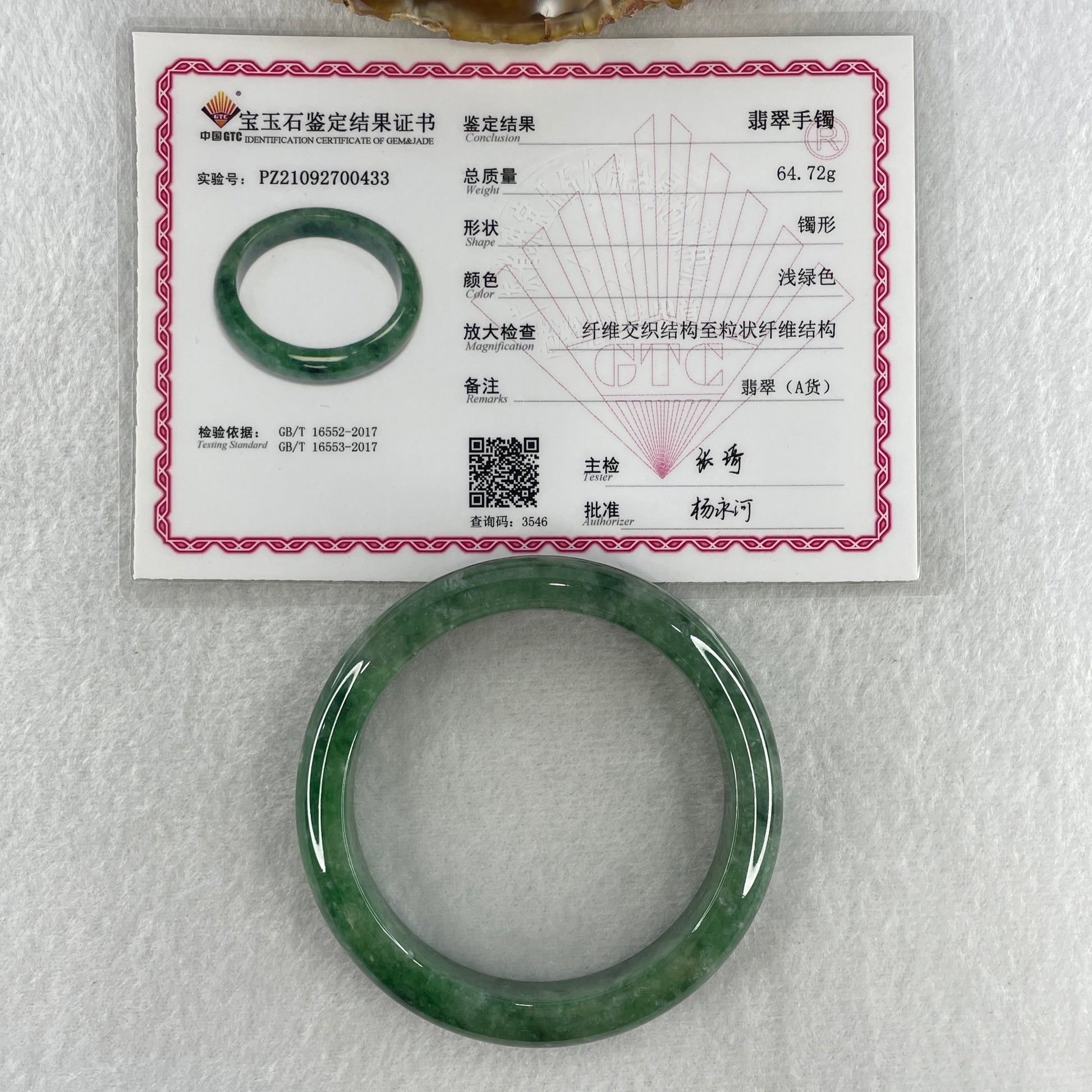 Certified Type A Natural Green with Emerald Green Patches Jadeite Bangle 64.72g Inner Diameter 58.9mm 13.0 by 8.5mm (Close to Perfect)