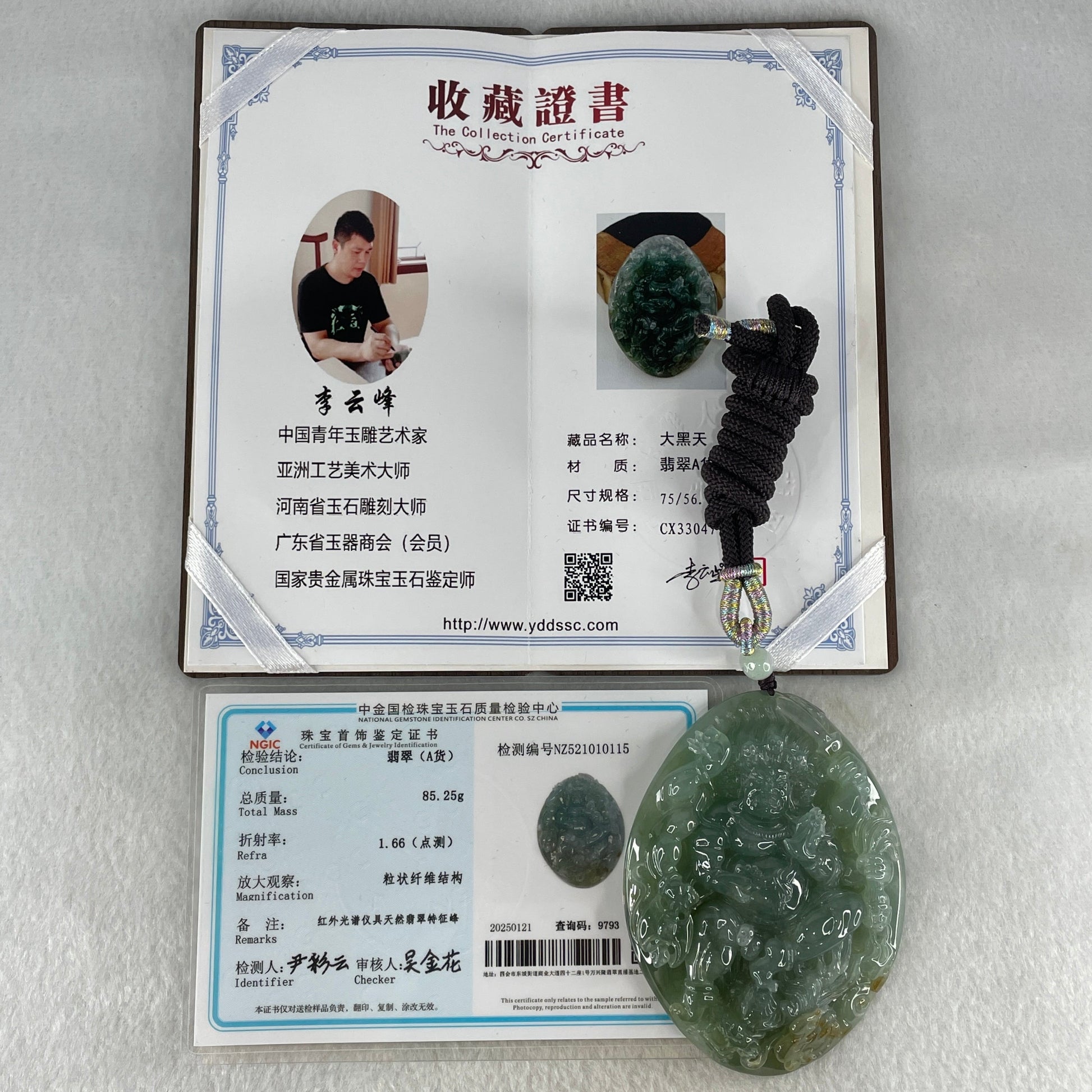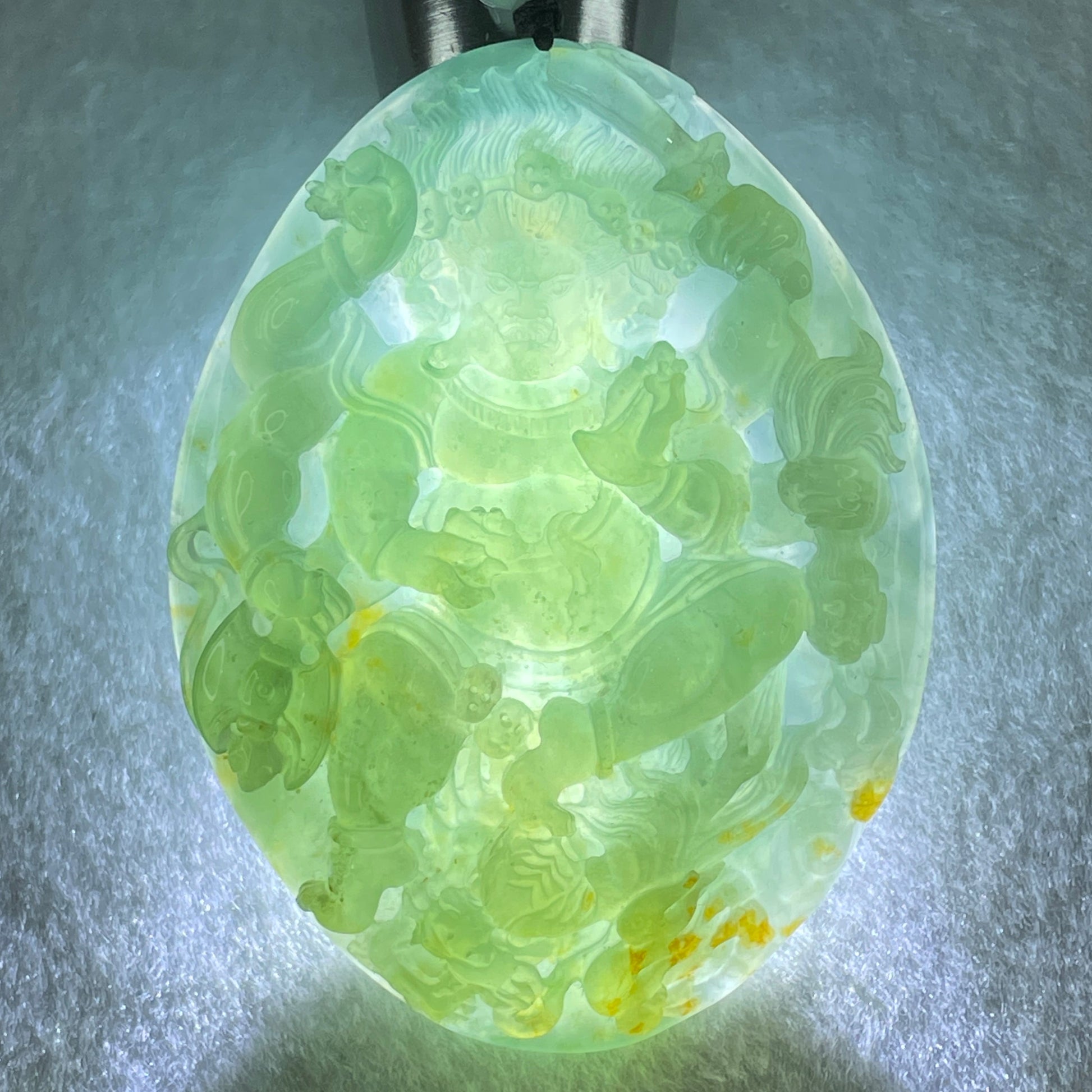 Grand Master Type A Icy Blueish Green with Brown Patches Jadeite Acala Pendant 85.25g 75.0 by 56.6 by 12.4mm