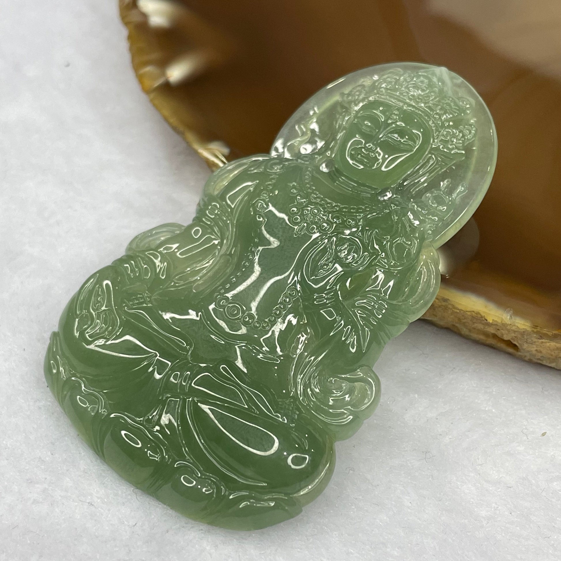 HIGH QUALITY Type A High Icy Green Tibetan Bodhisattva Jade Jadeite Pendant - 23.78g 63.0 by 38.7 by 5.7mm