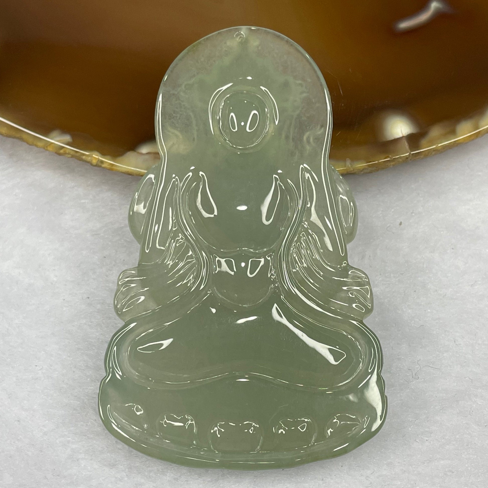 HIGH QUALITY Type A High Icy Green Tibetan Bodhisattva Jade Jadeite Pendant 27.05g 63.5 by 39.7 by 6.3m
