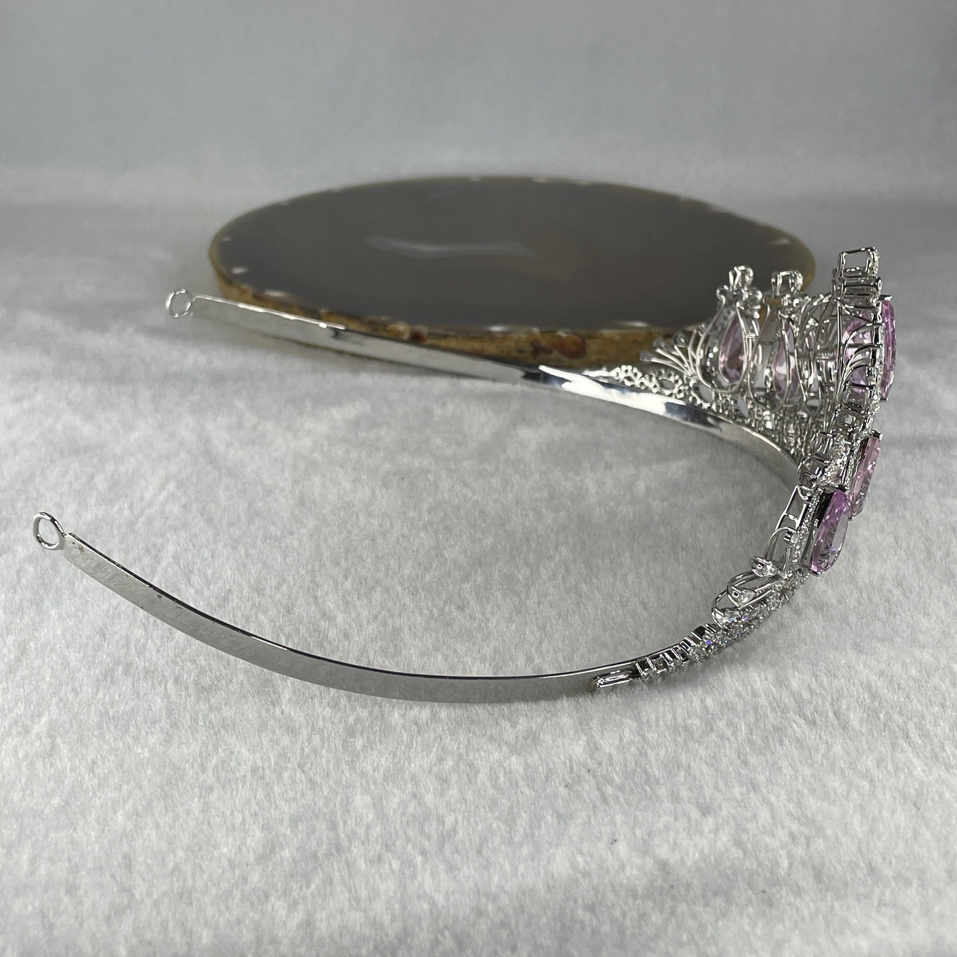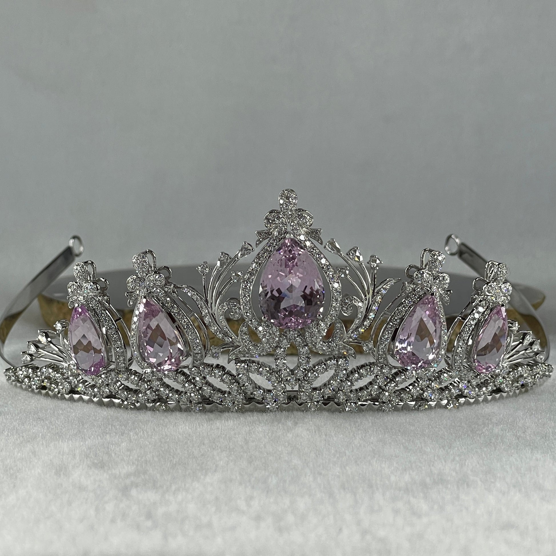 Natural Purplish Pink Kunzite 45.24cts Natural Diamonds D15.0cts in 9K White Gold 53.09g Tiara Total 64.04g