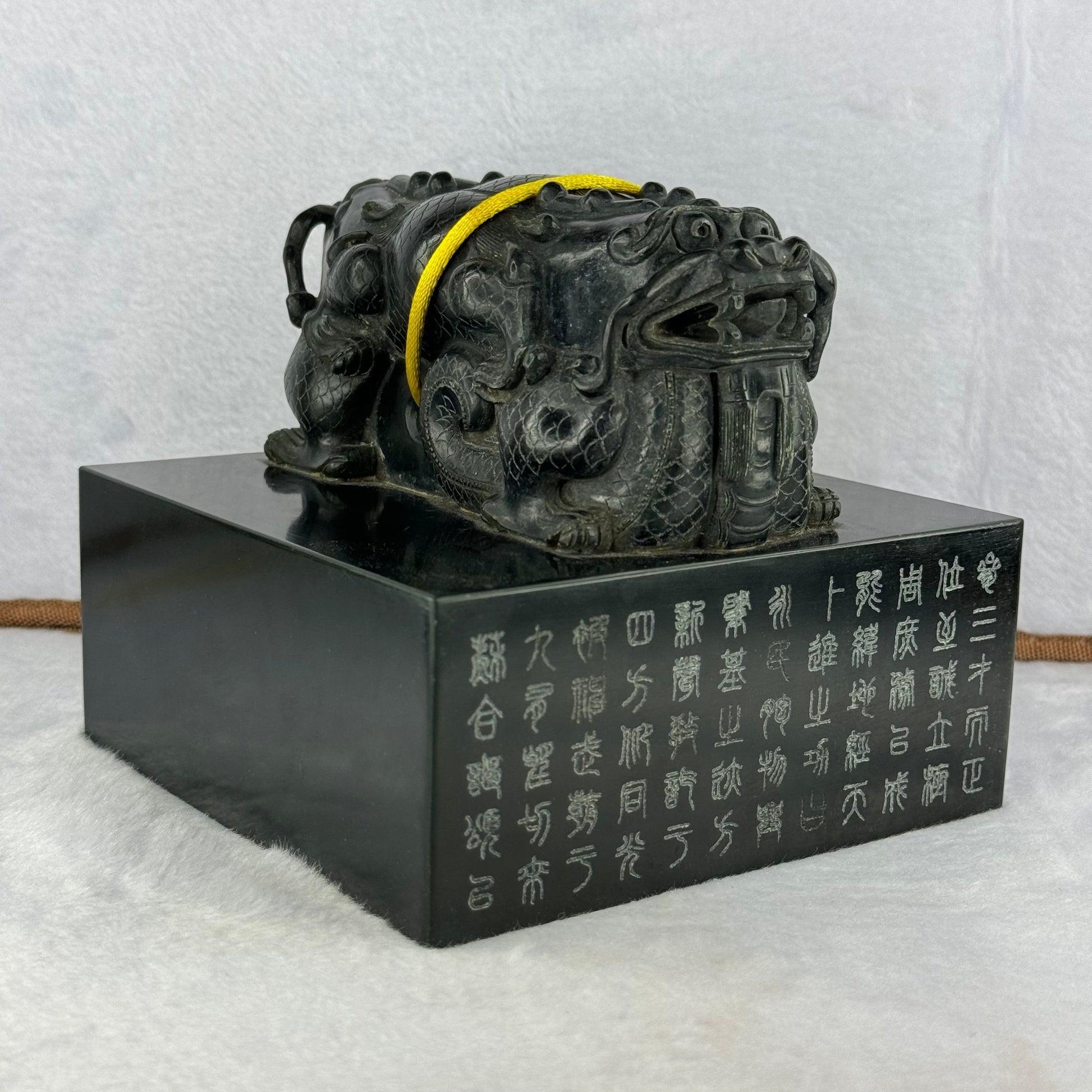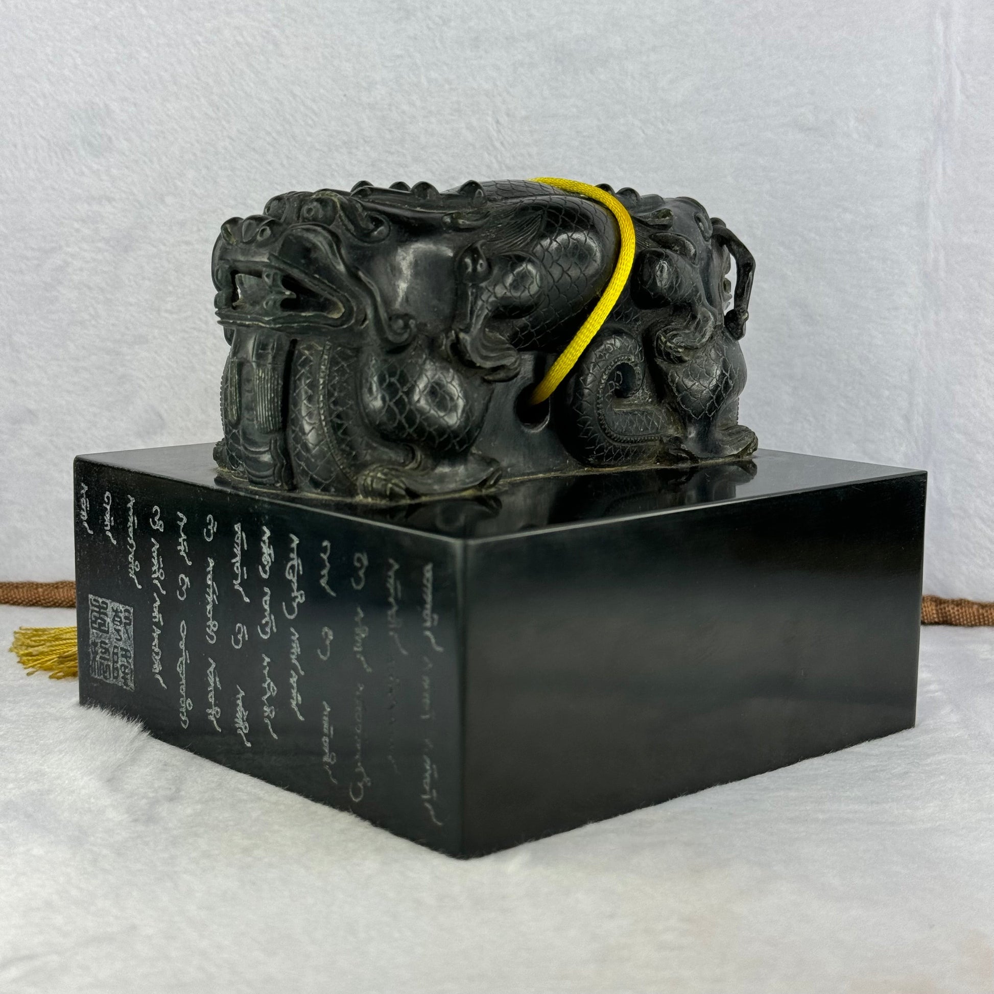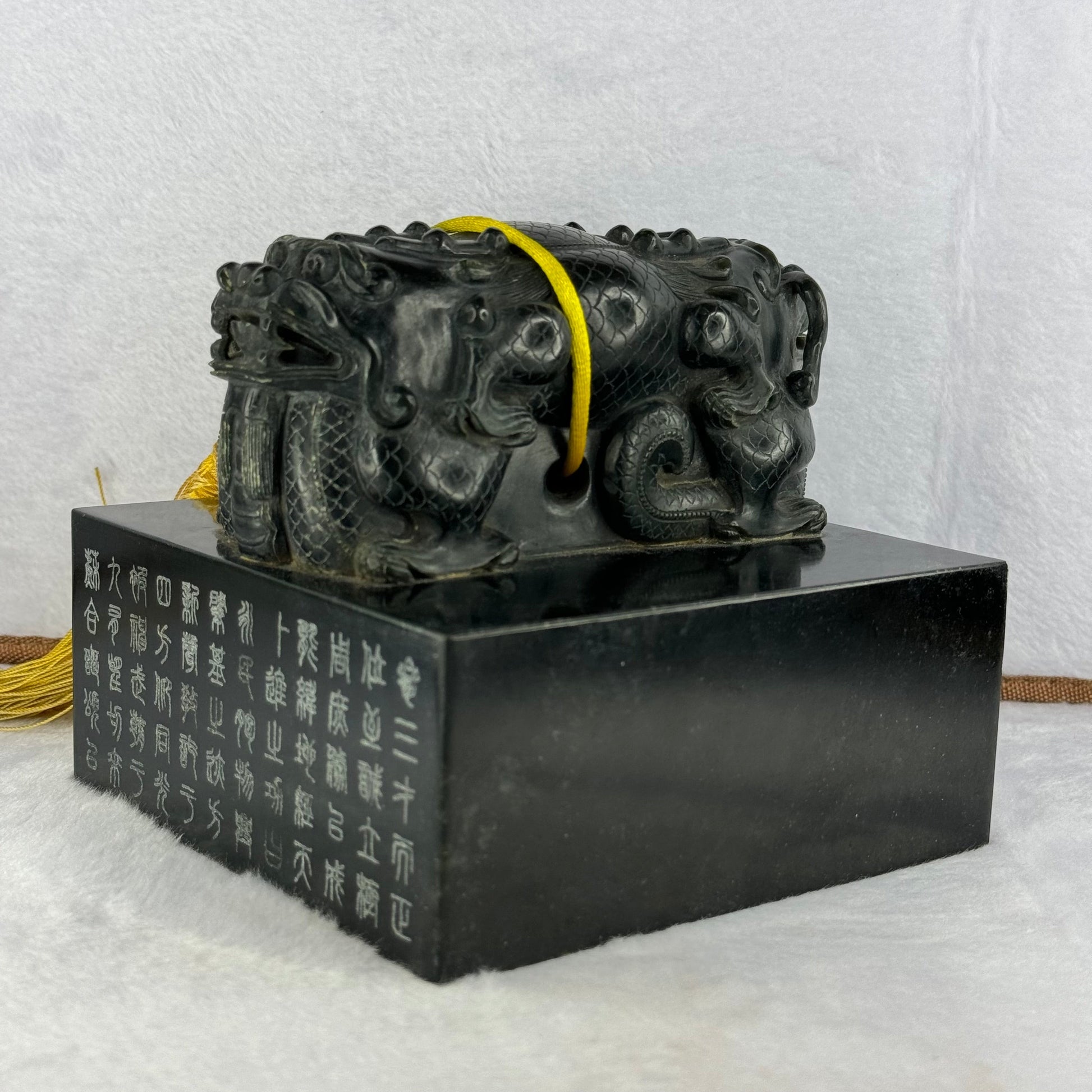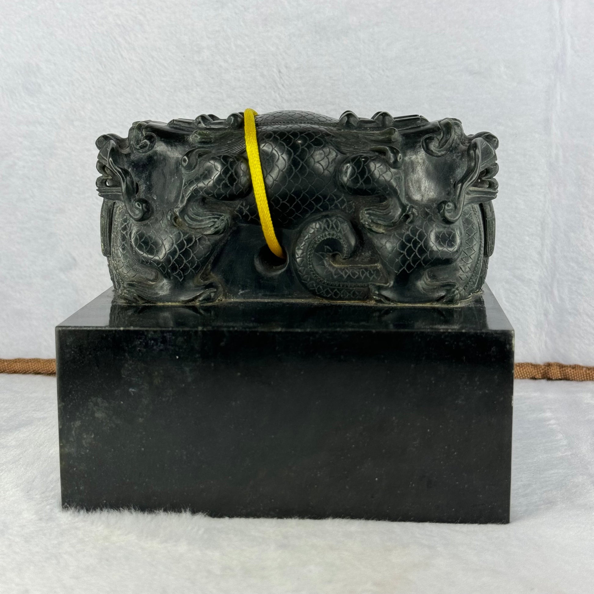 Rare Antique Natural Dark Green Nephrite Double Dragon Heads Seal 4,105.8g 134.8 by 134.3 by 120.0mm