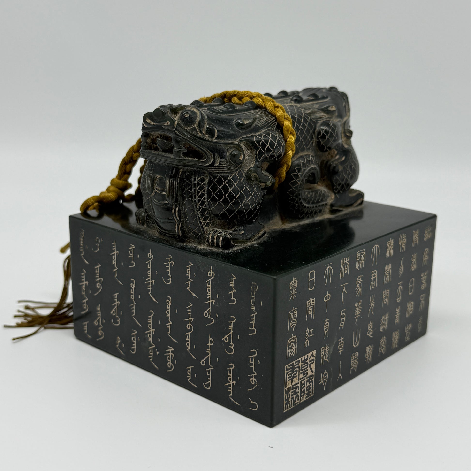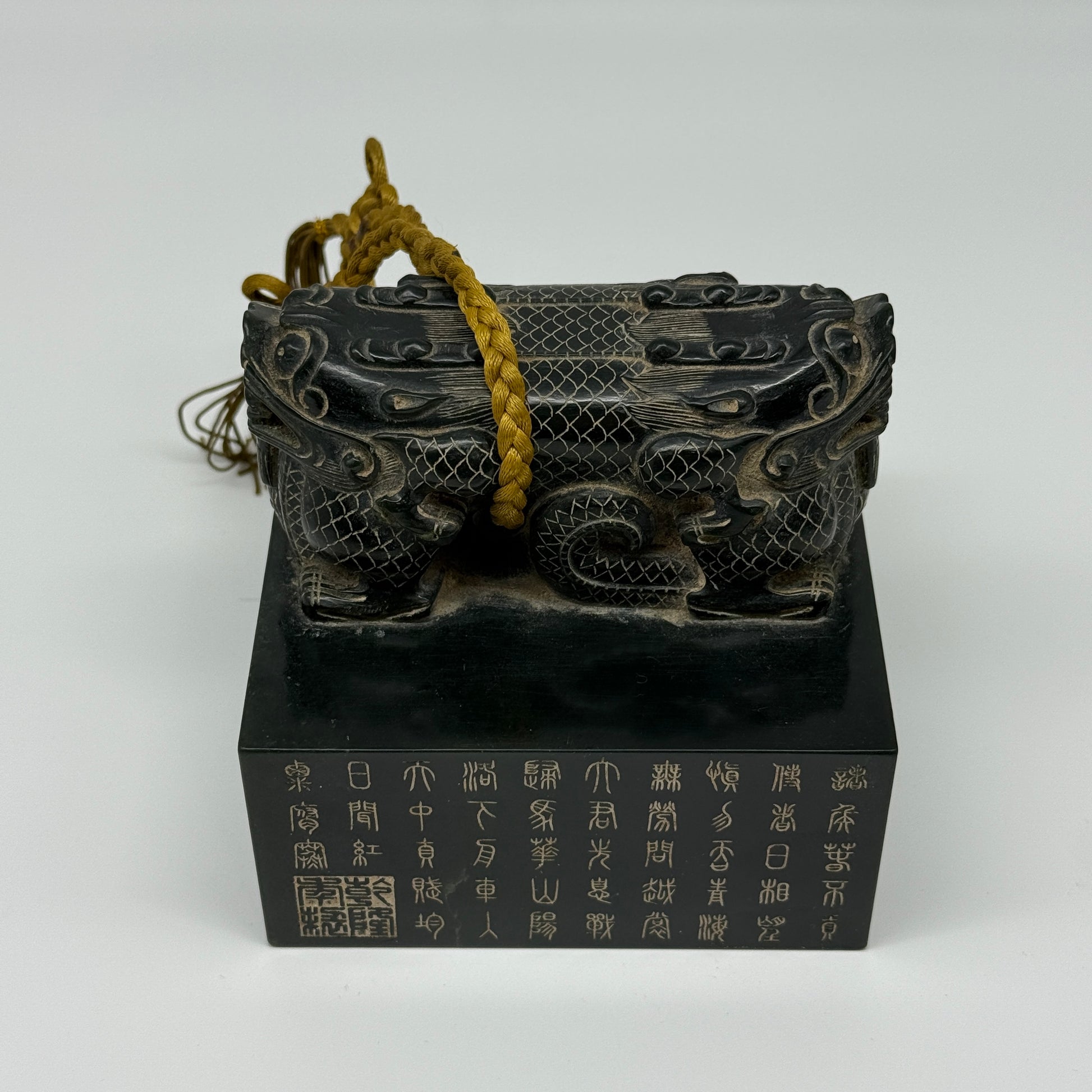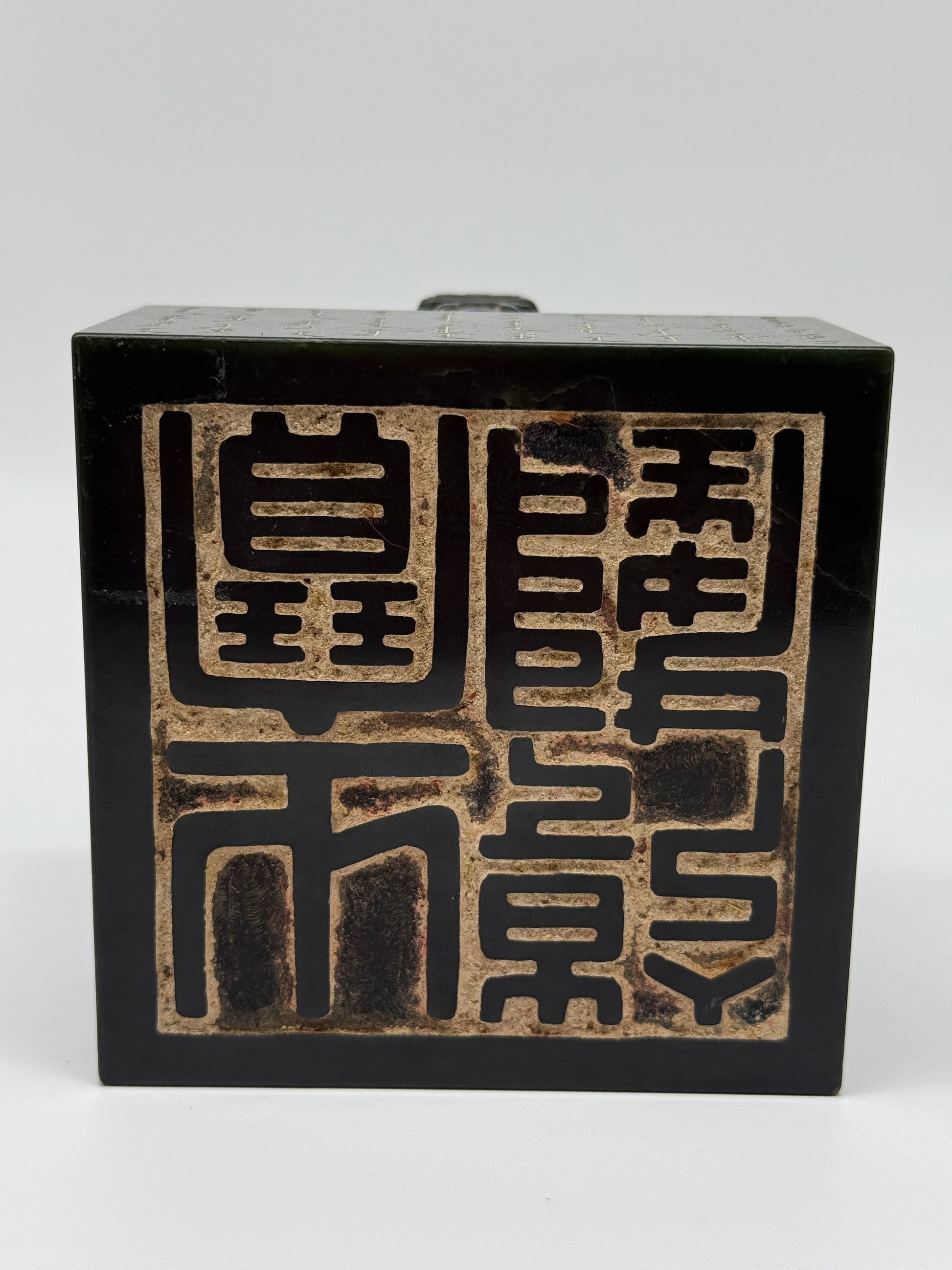 Rare Antique Natural Dark Green Nephrite Double Headed Dragon Seal 2,281.0g 107.1 by 106.7 by 100.0mm