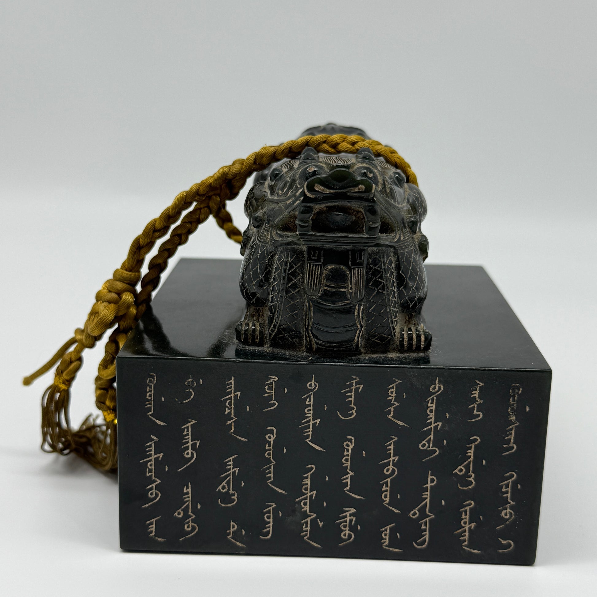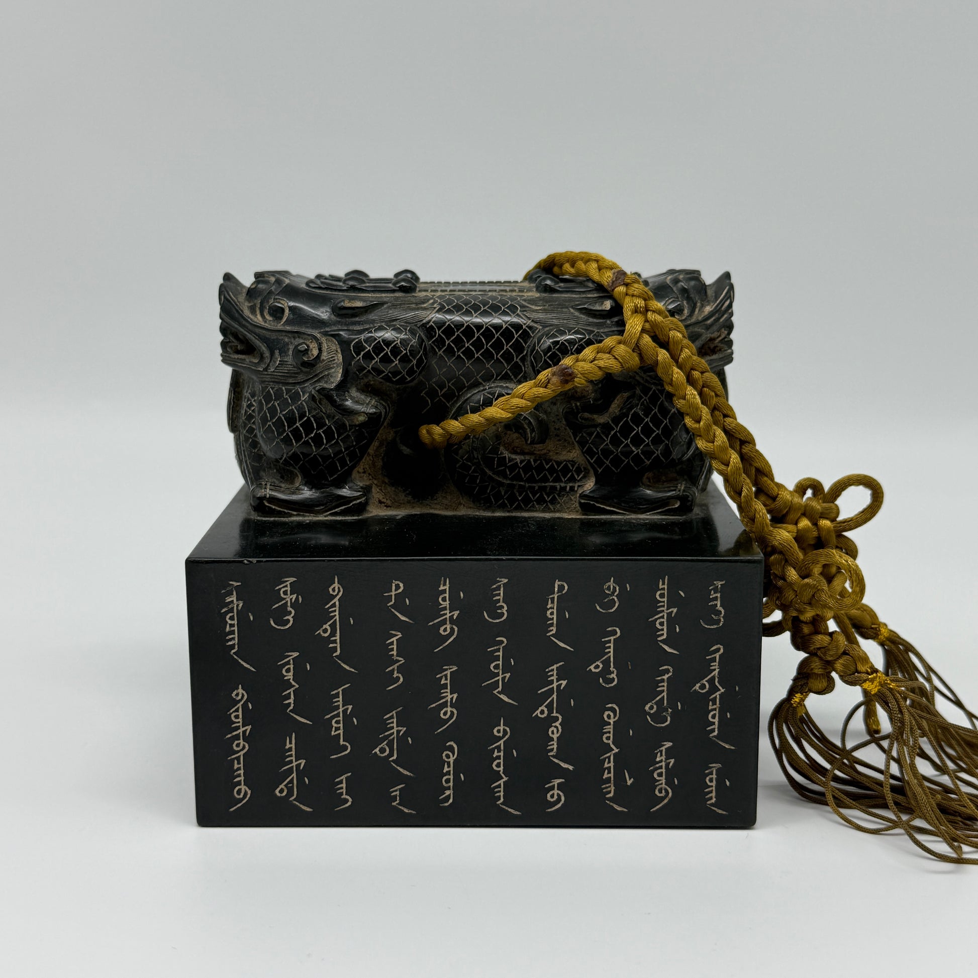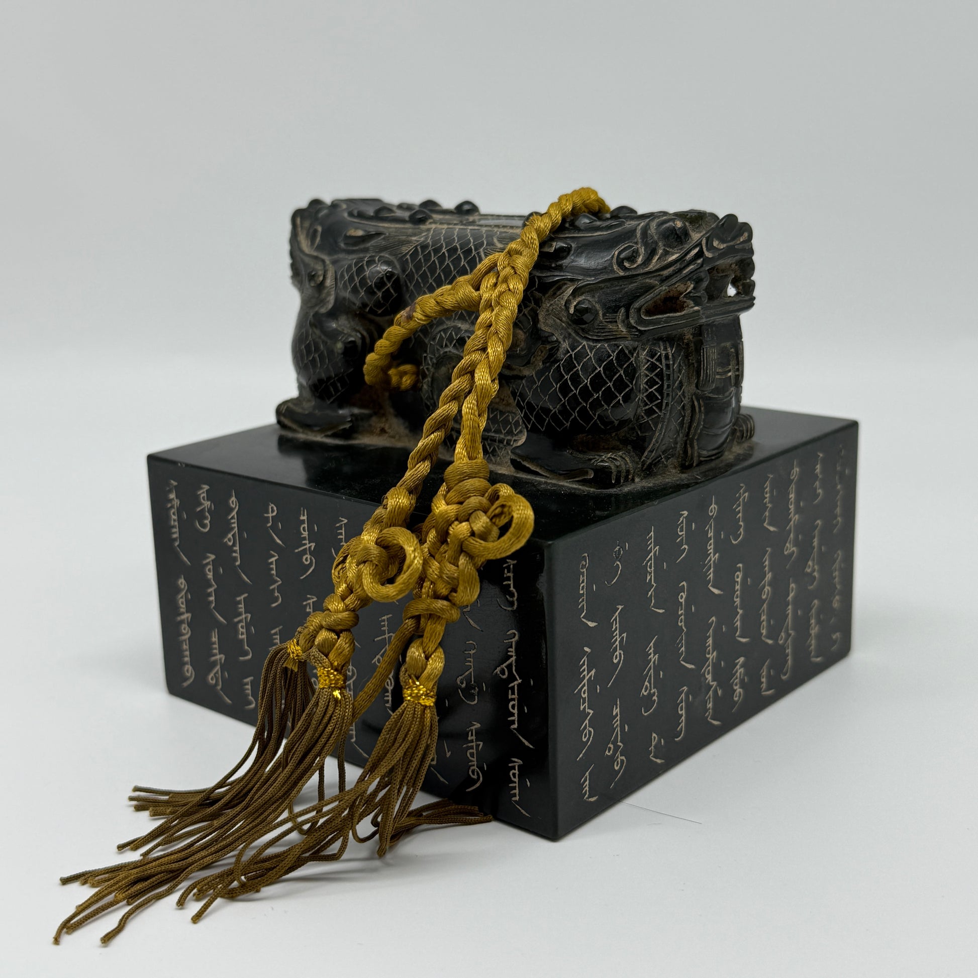 Rare Antique Natural Dark Green Nephrite Double Headed Dragon Seal 2,281.0g 107.1 by 106.7 by 100.0mm