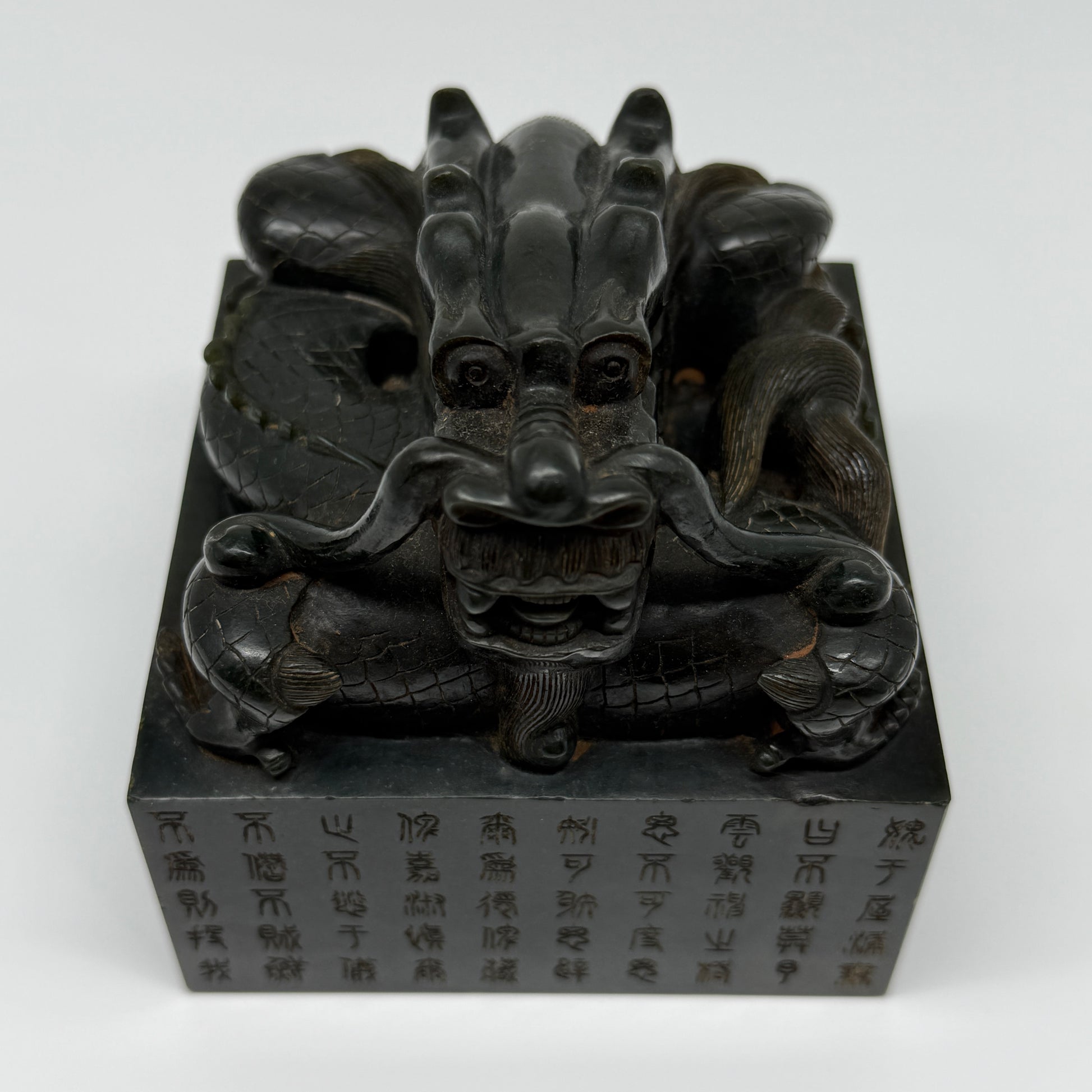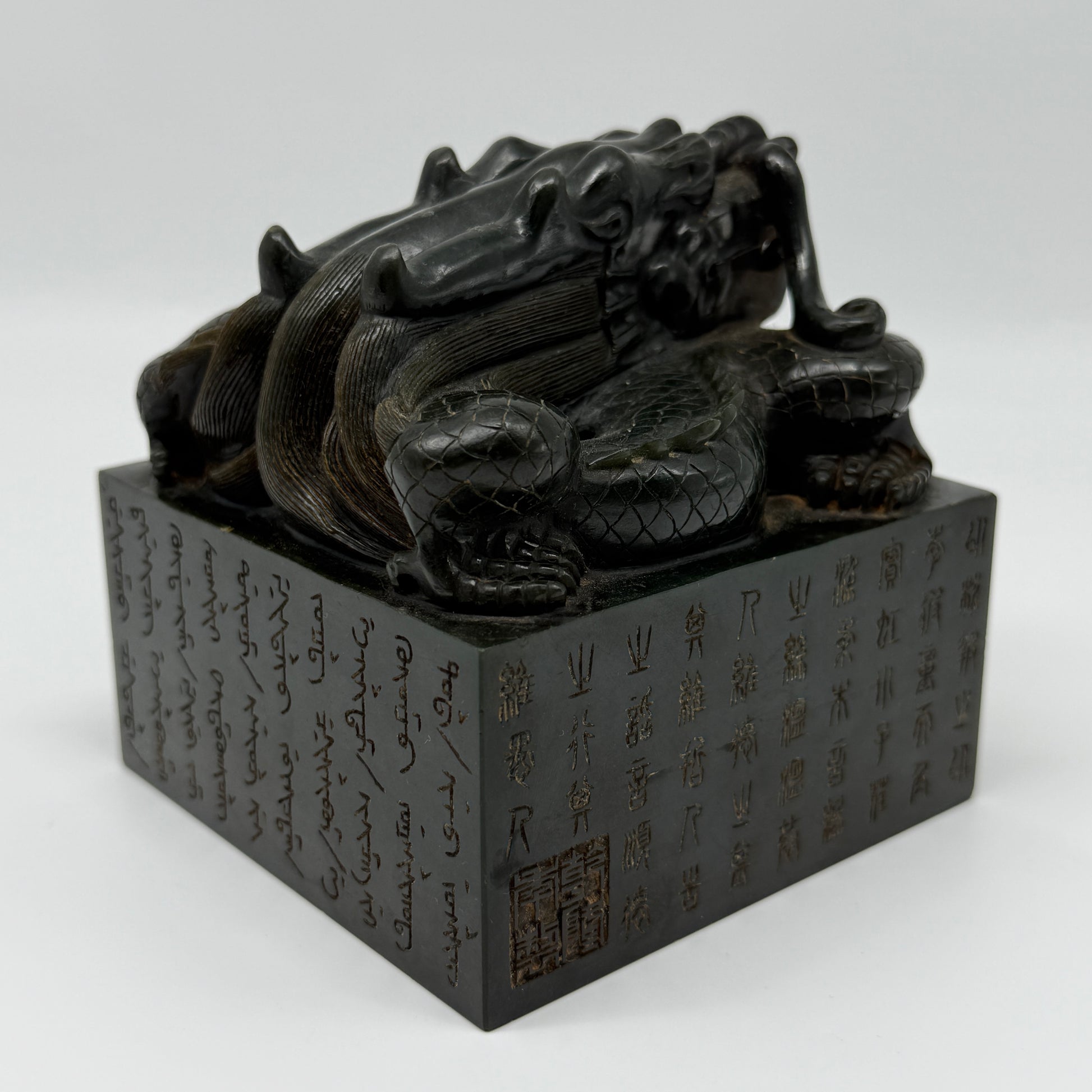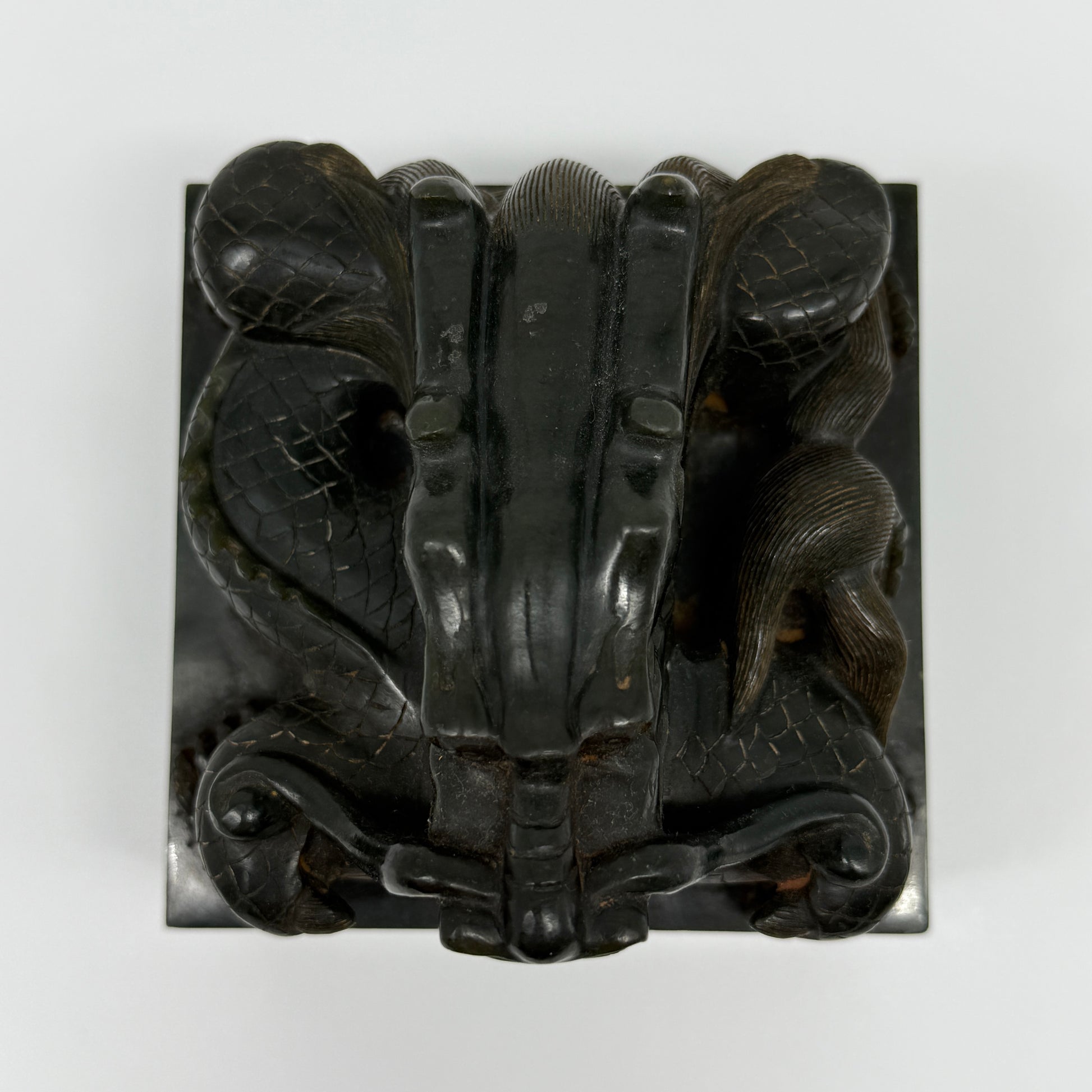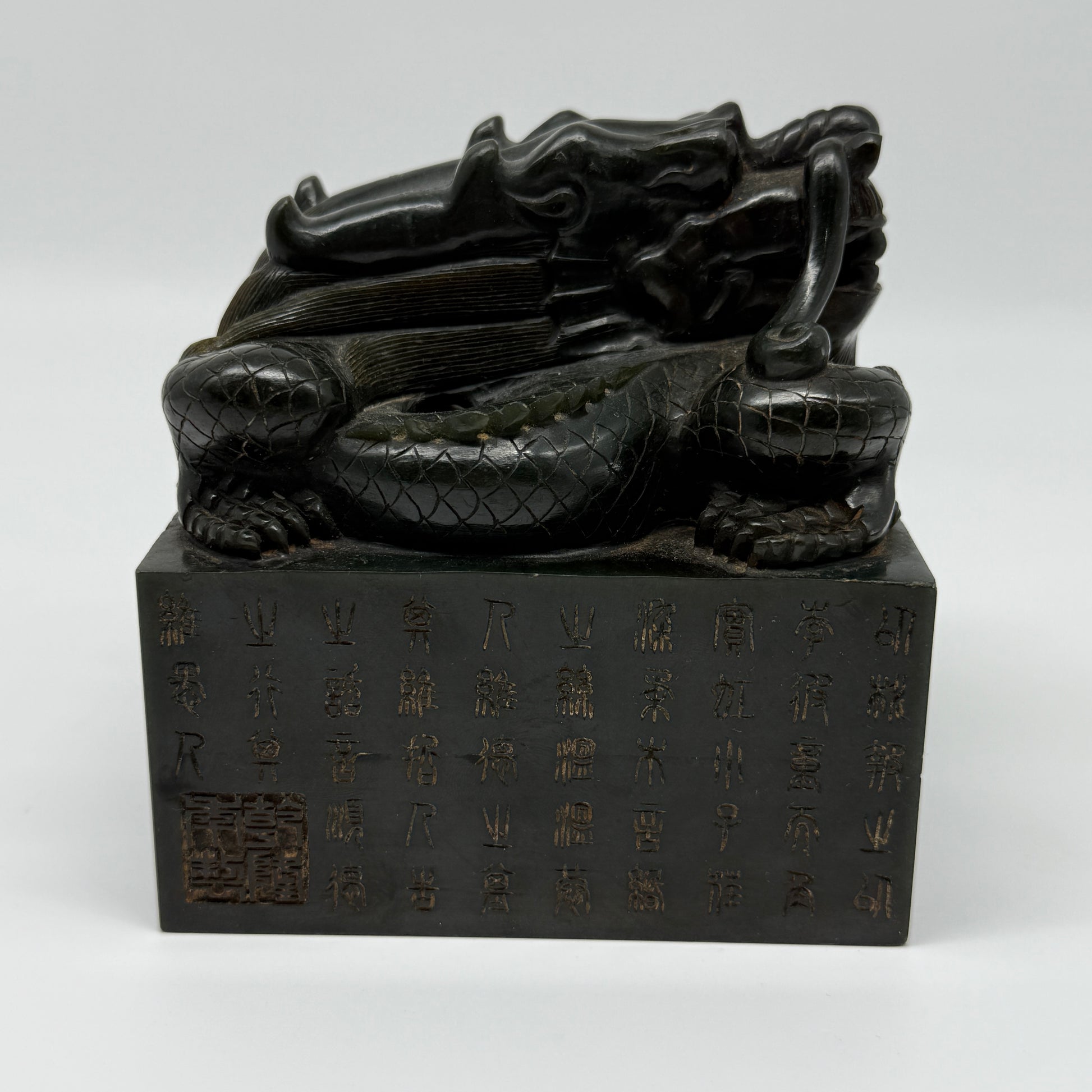 Rare Antique Natural Dark Green Nephrite Dragon Seal 2,218.6g 101.8 by 102.2 by 107.8mm