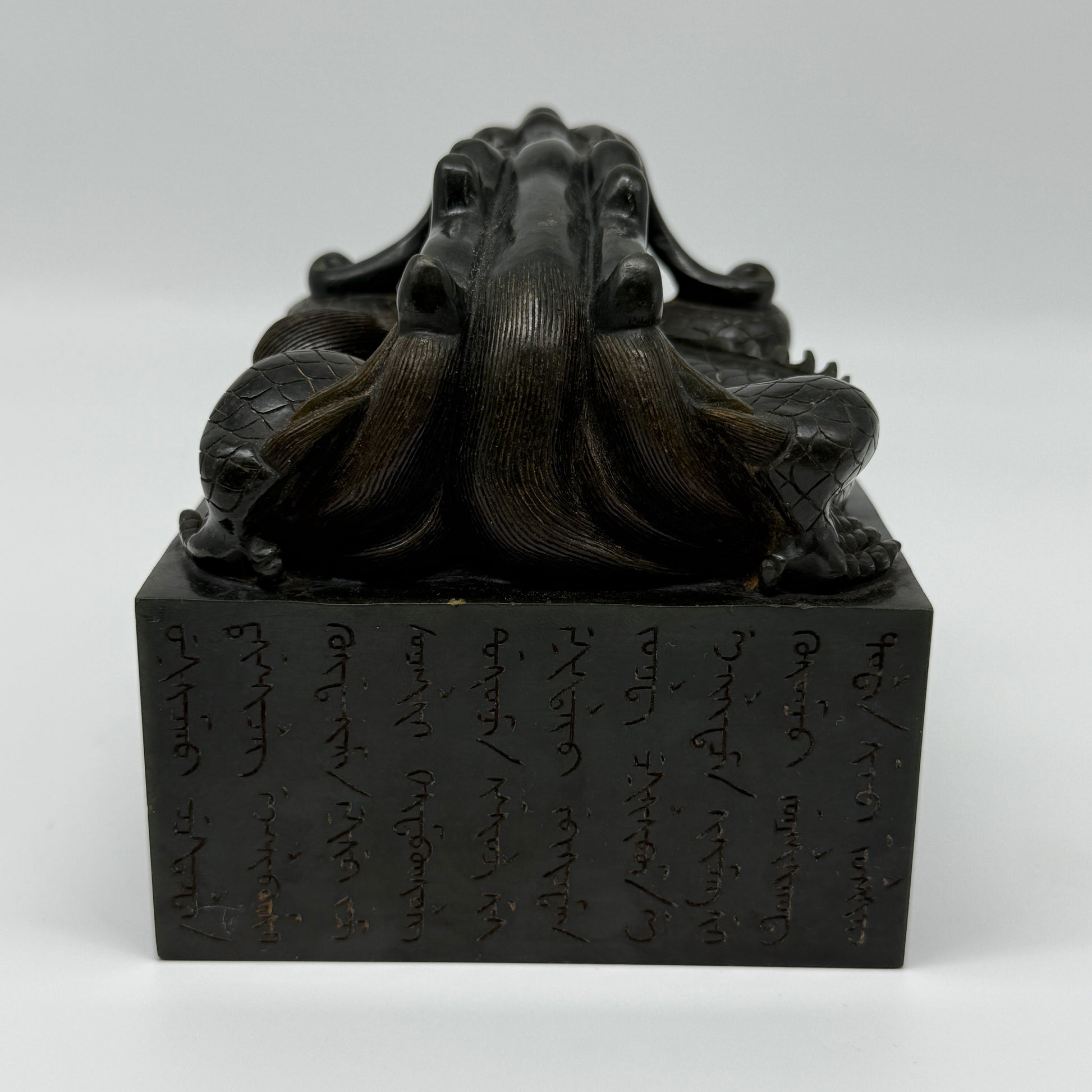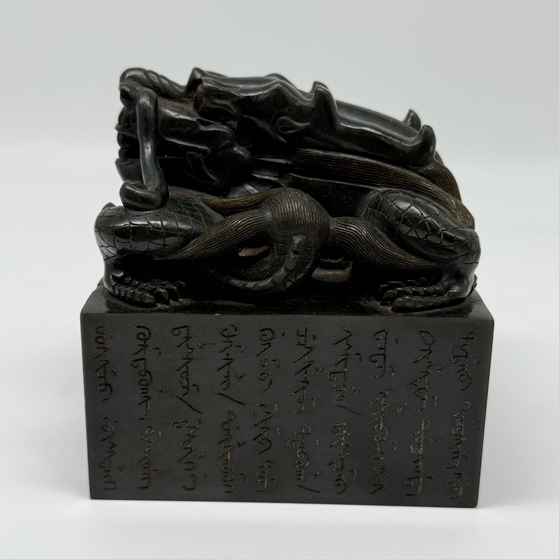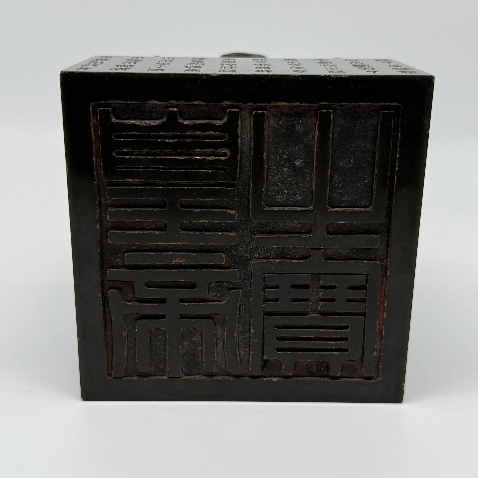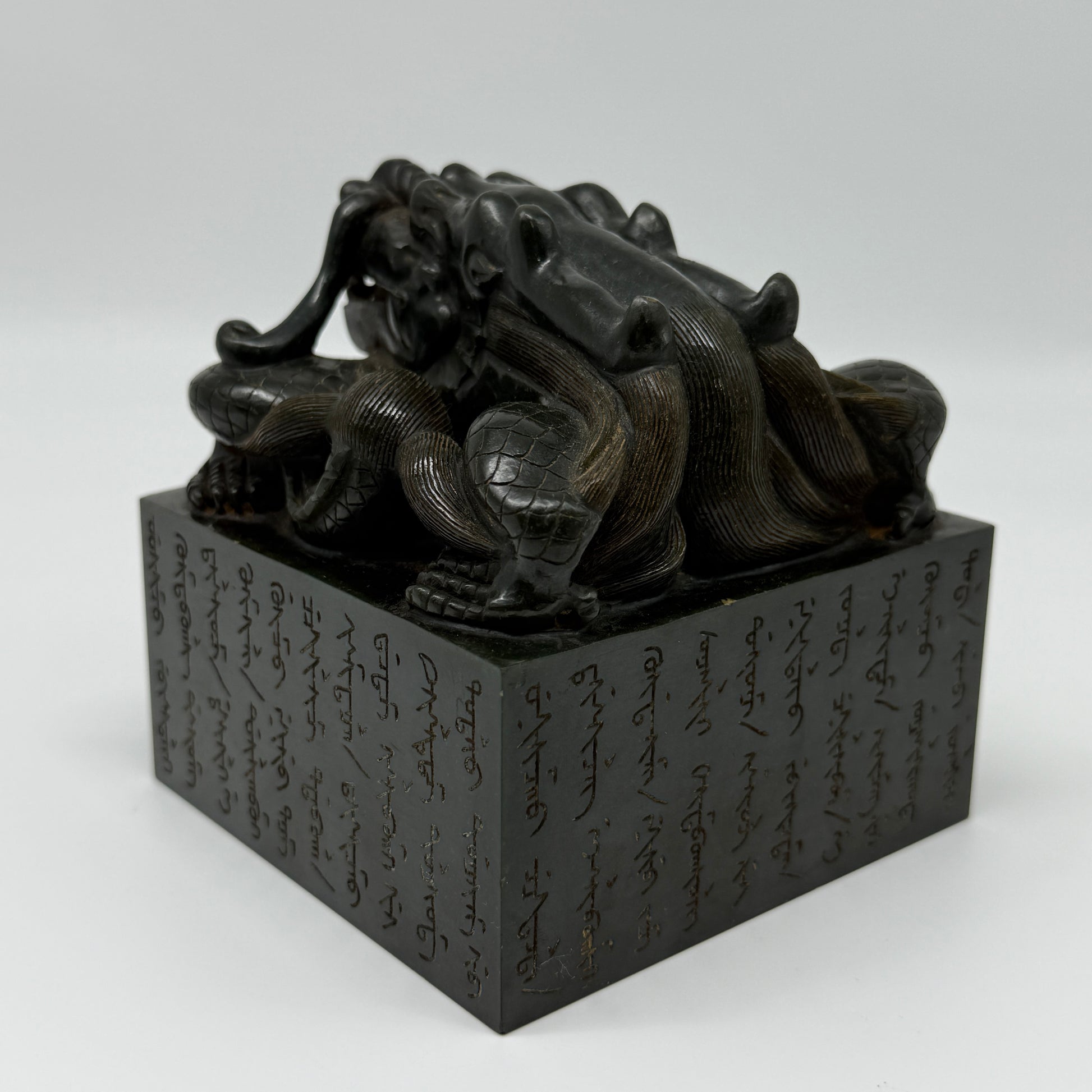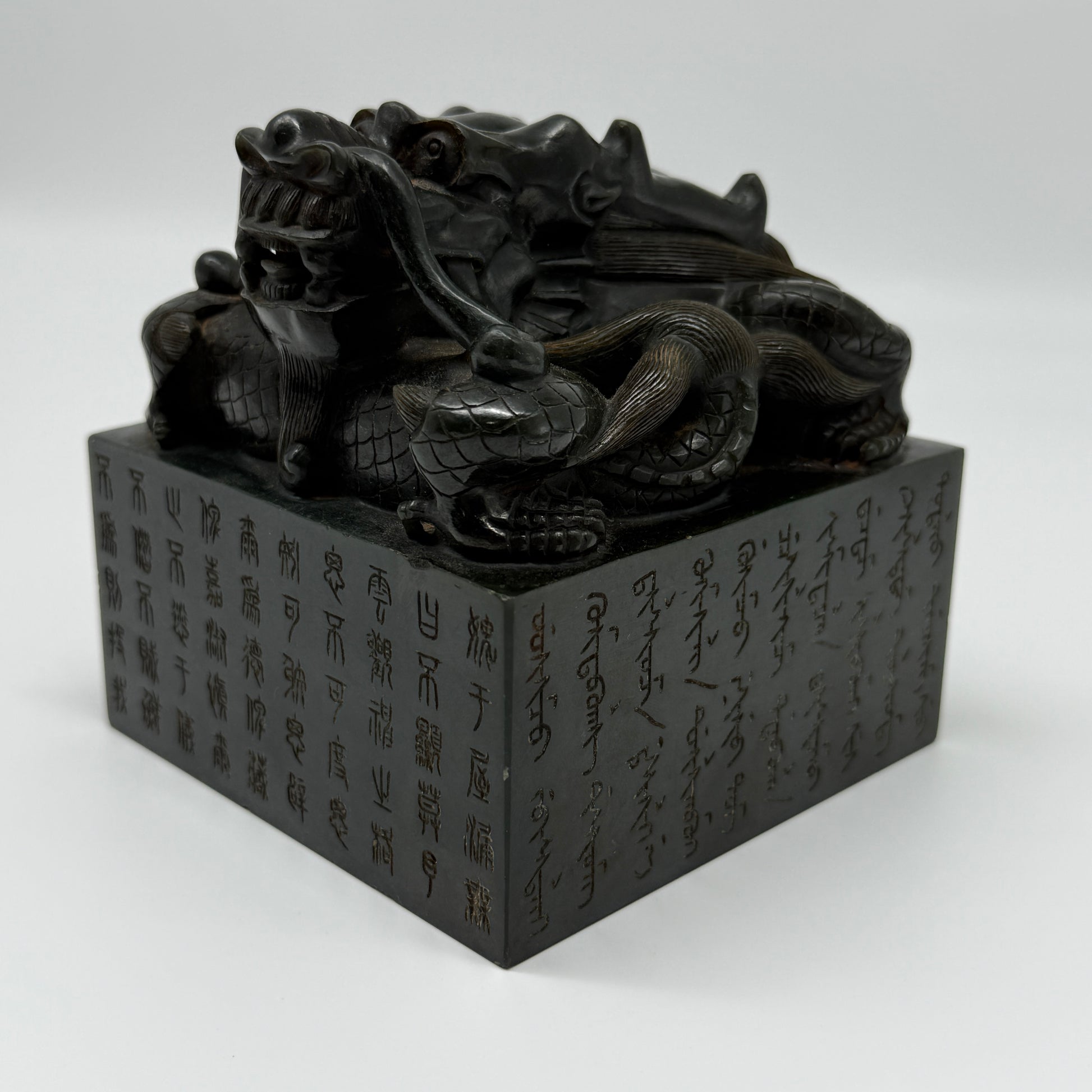 Rare Antique Natural Dark Green Nephrite Dragon Seal 2,218.6g 101.8 by 102.2 by 107.8mm