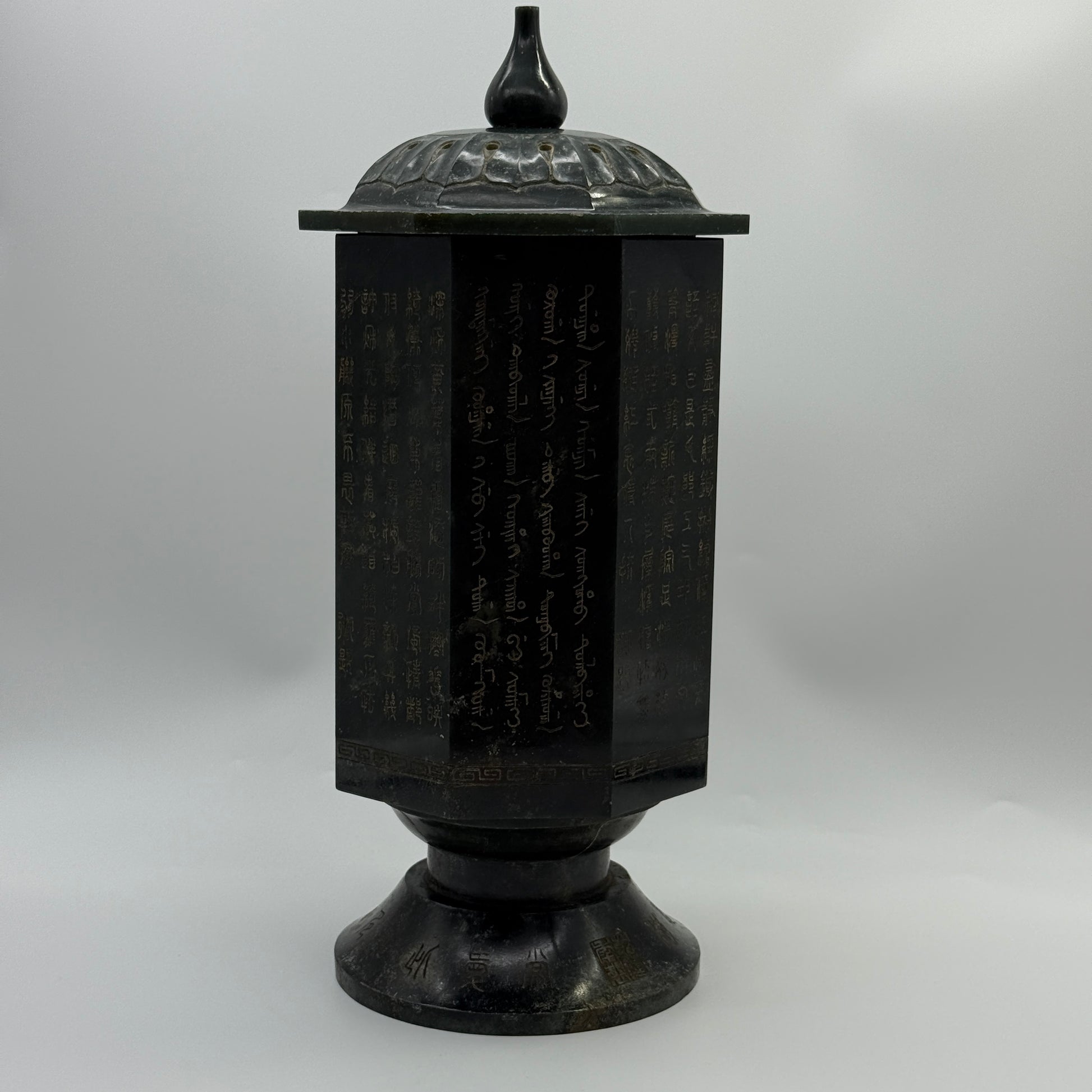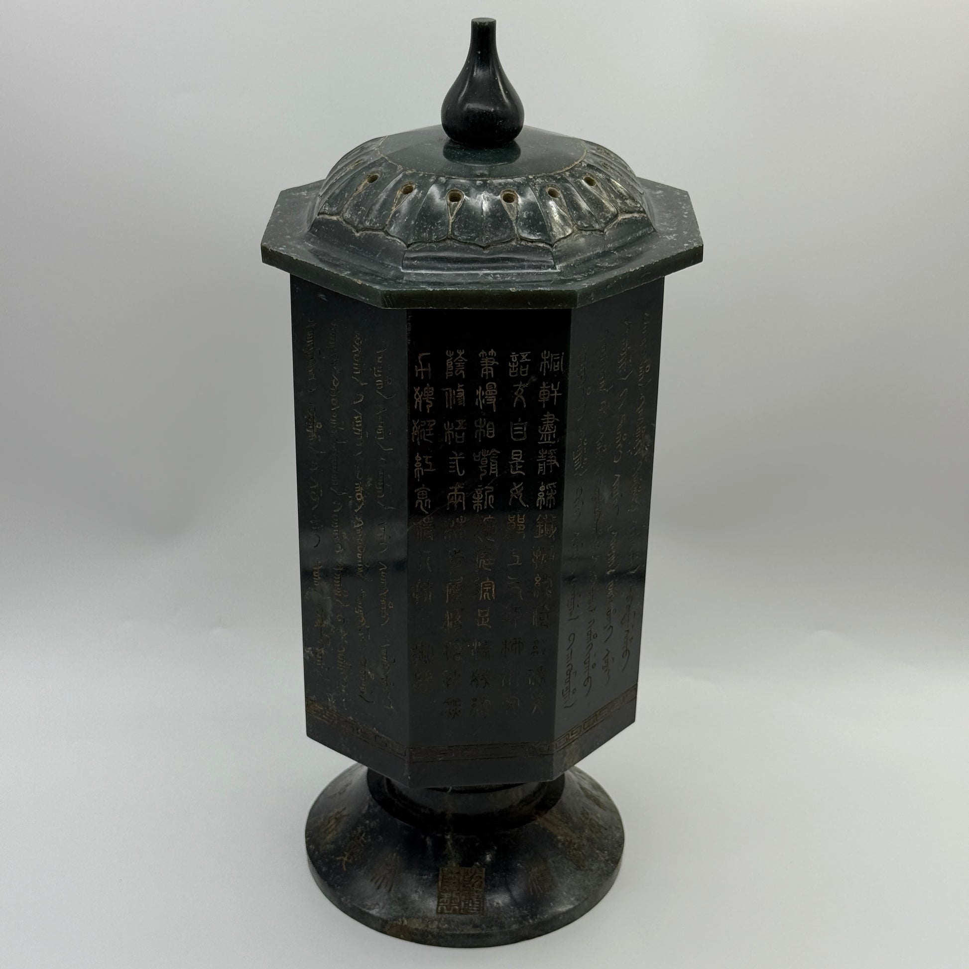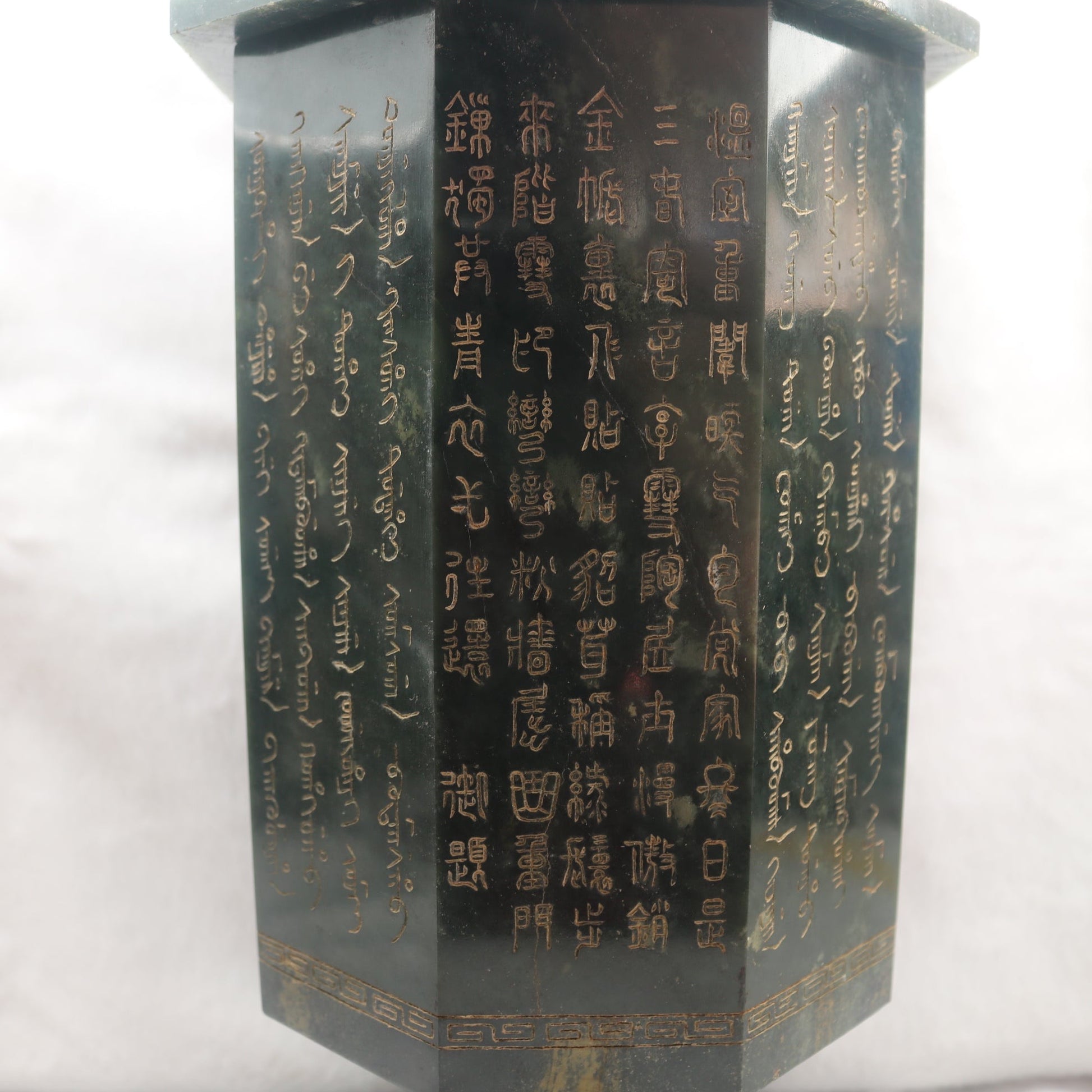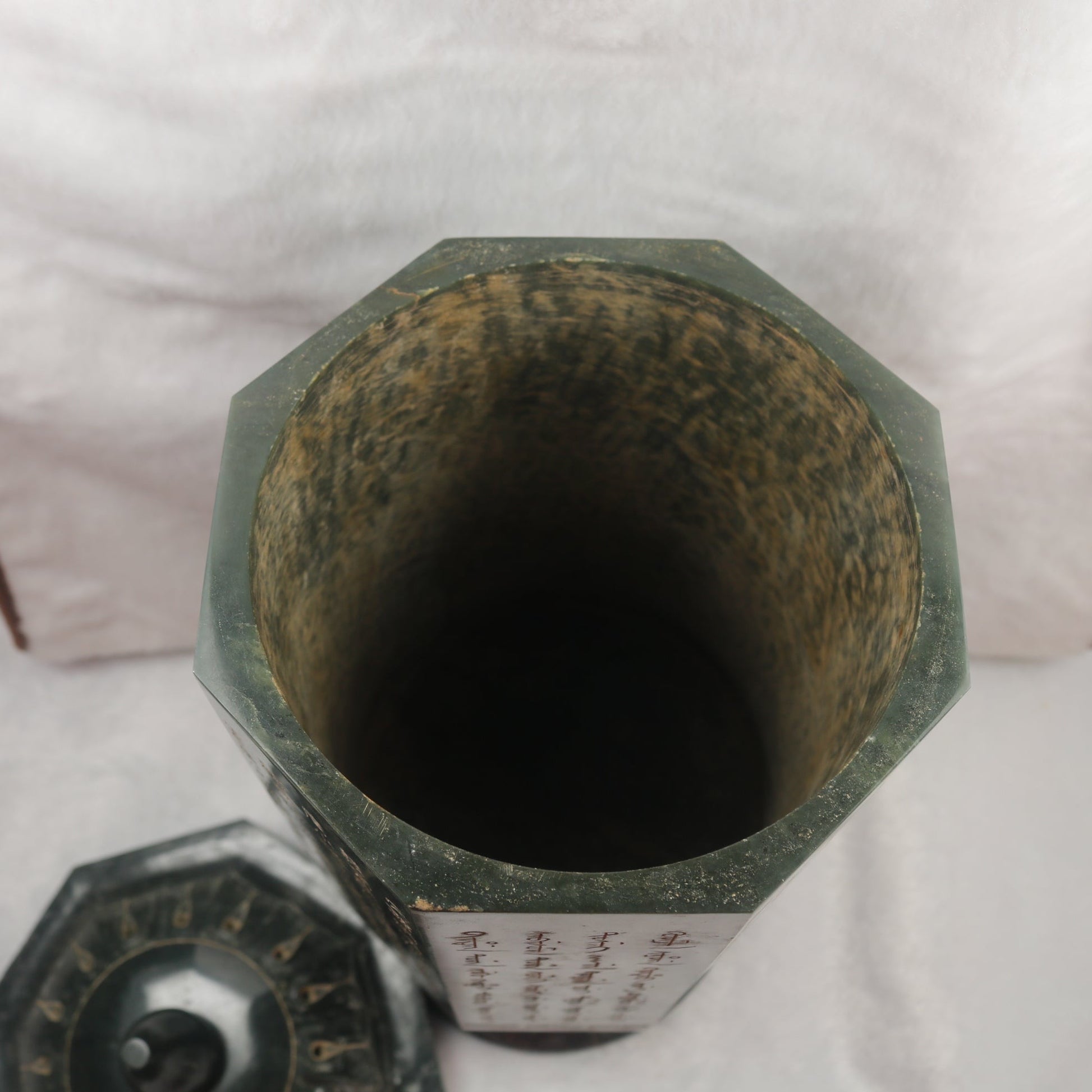 Rare Antique Natural Dark Green Nephrite Pagoda Vase 4,219.8g 150.0 by 150.0 by 340.0mm