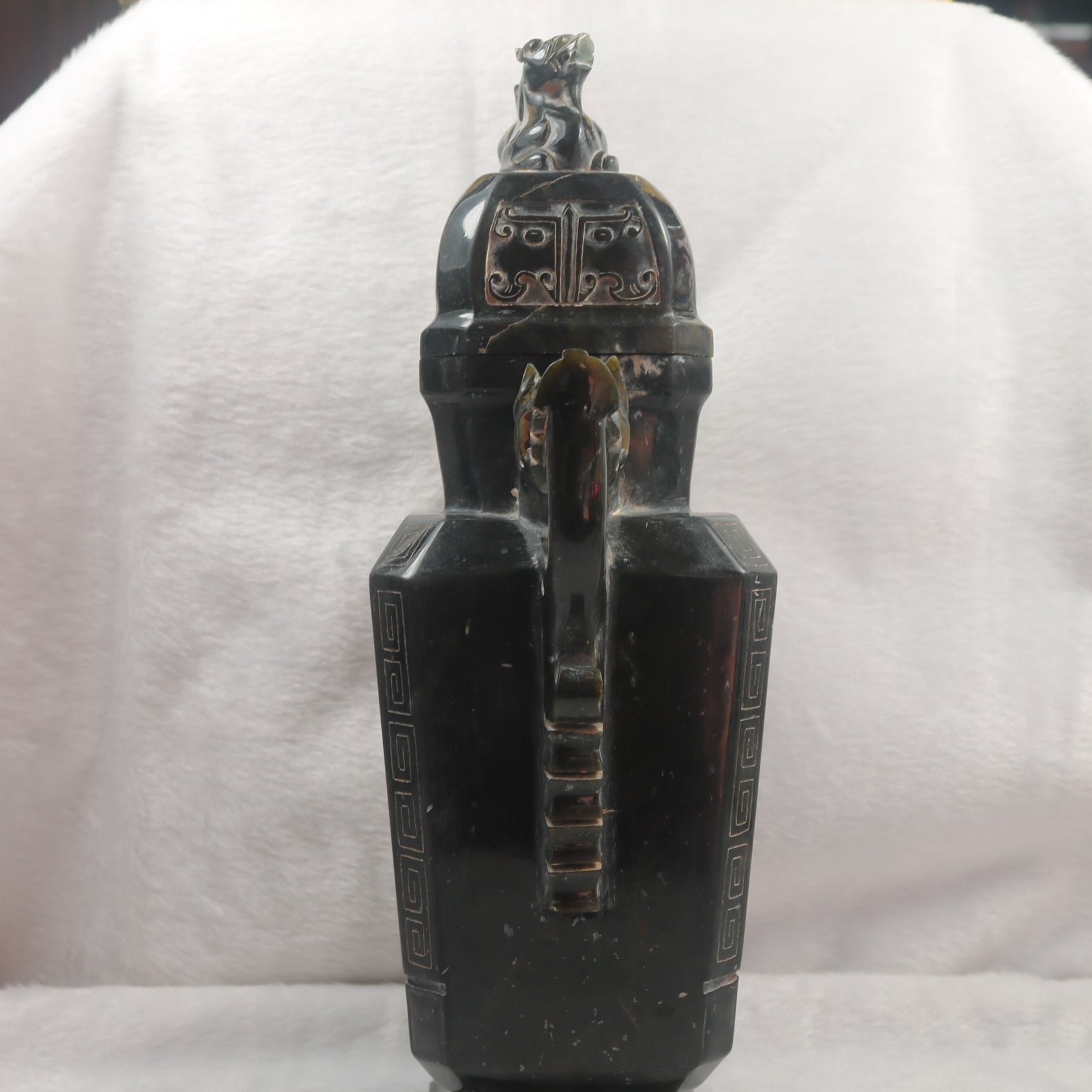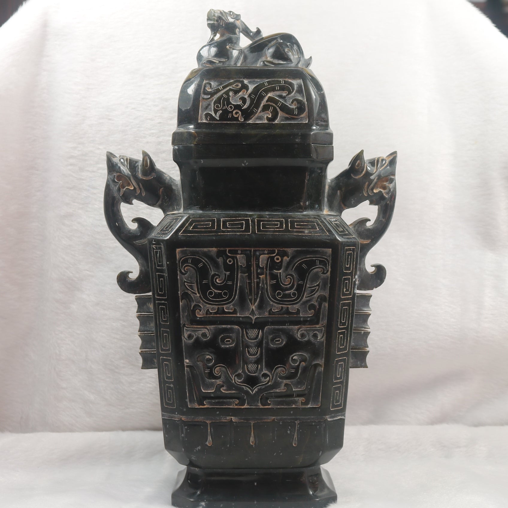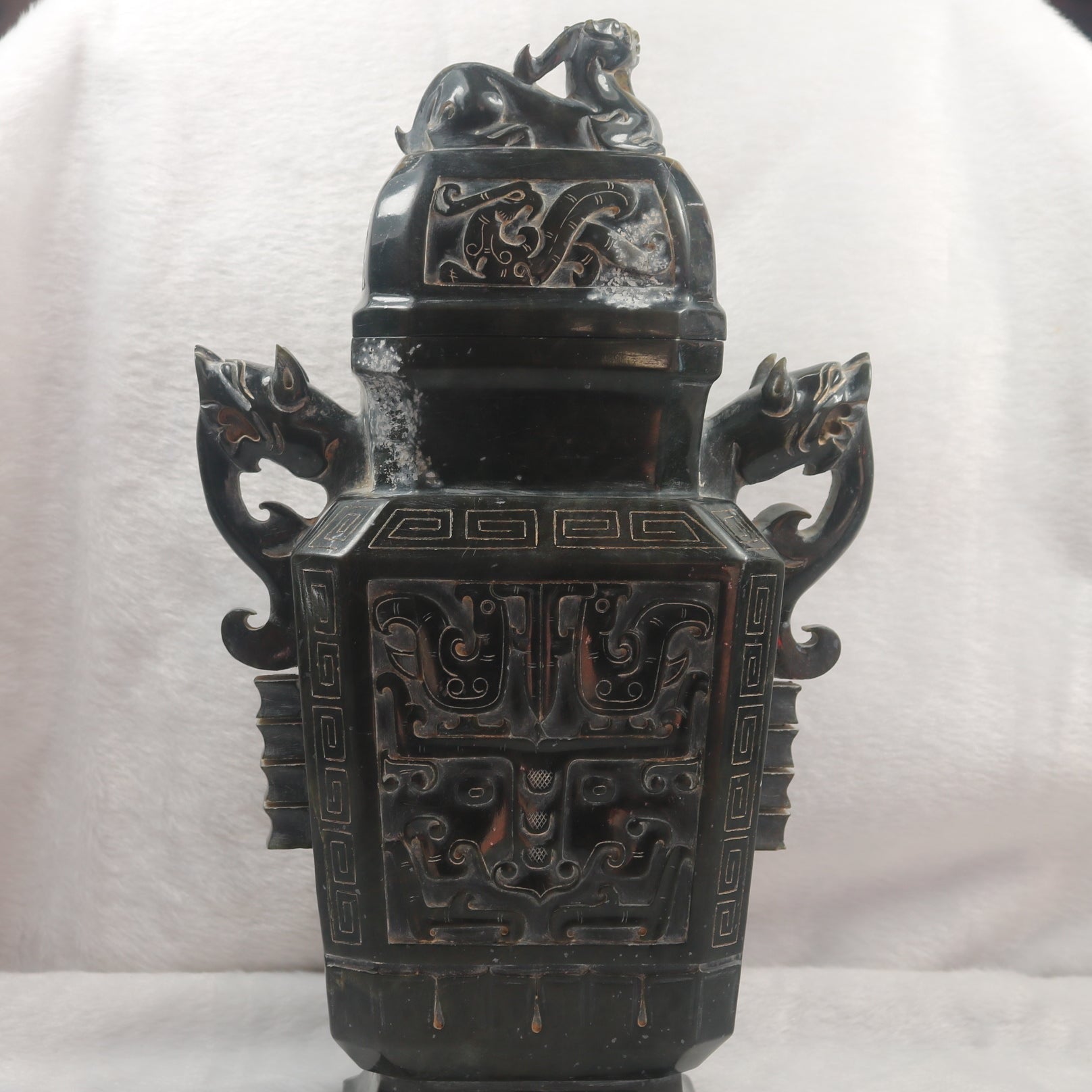Rare Antique Natural Dark Green Nephrite Pixiu Vase 1,882.7g 170.0 by 100.0 by 280.0mm