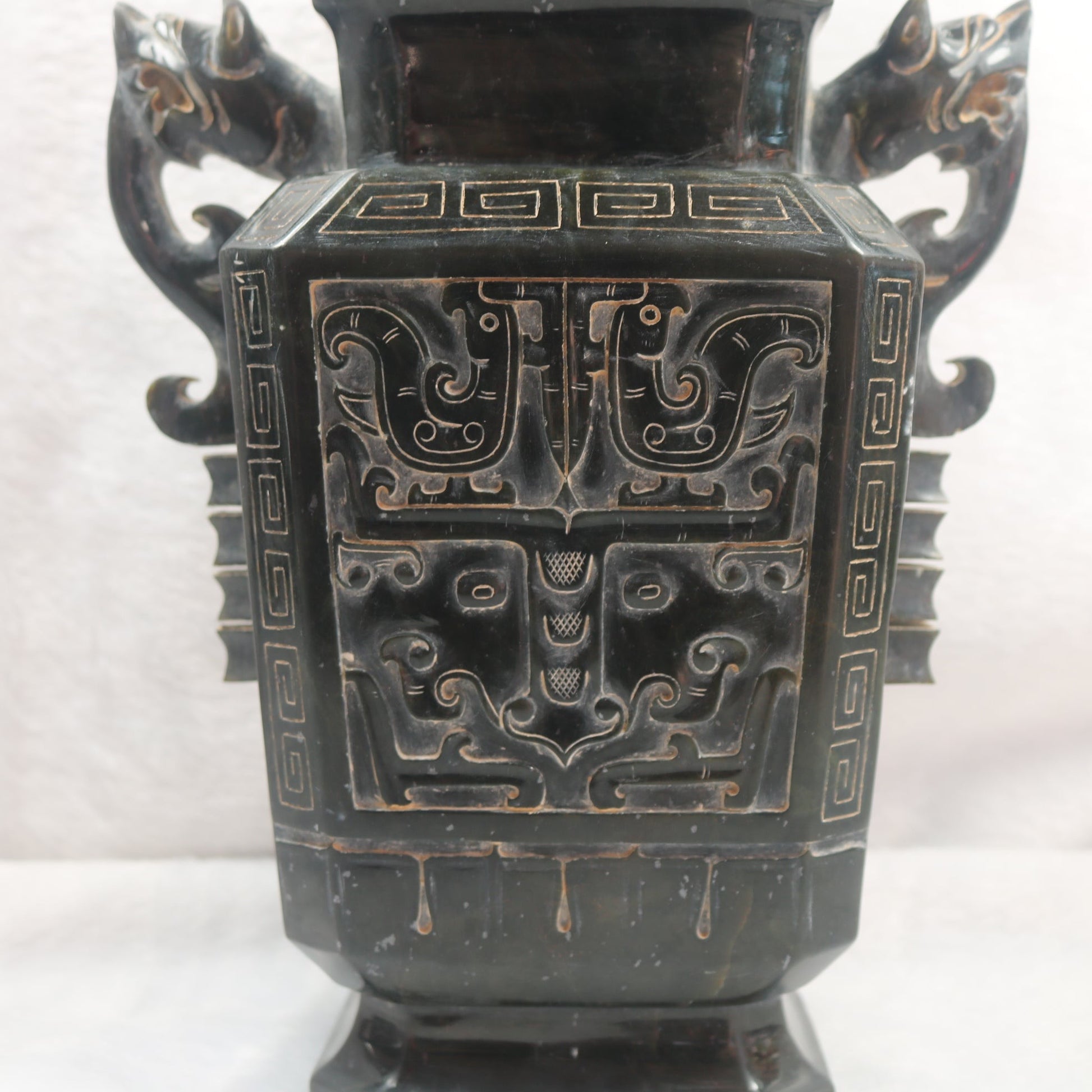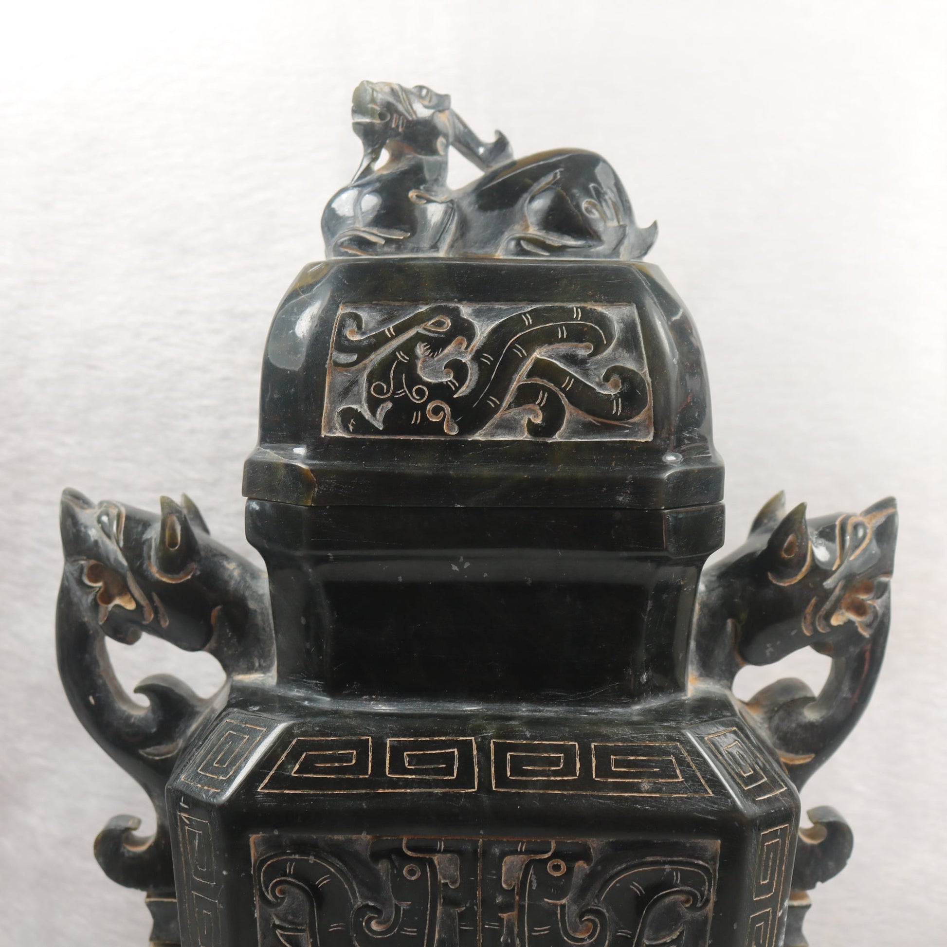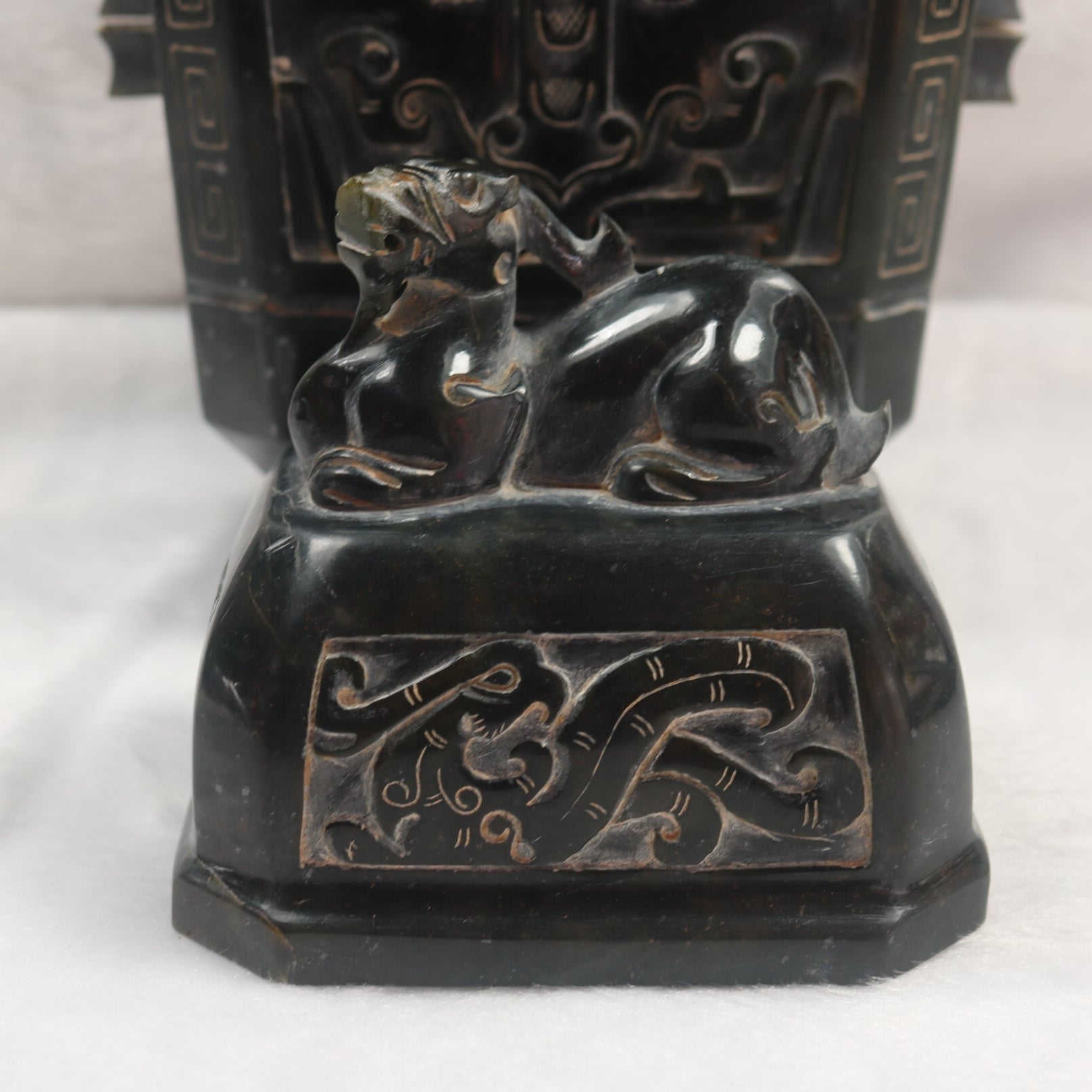 Rare Antique Natural Dark Green Nephrite Pixiu Vase 1,882.7g 170.0 by 100.0 by 280.0mm