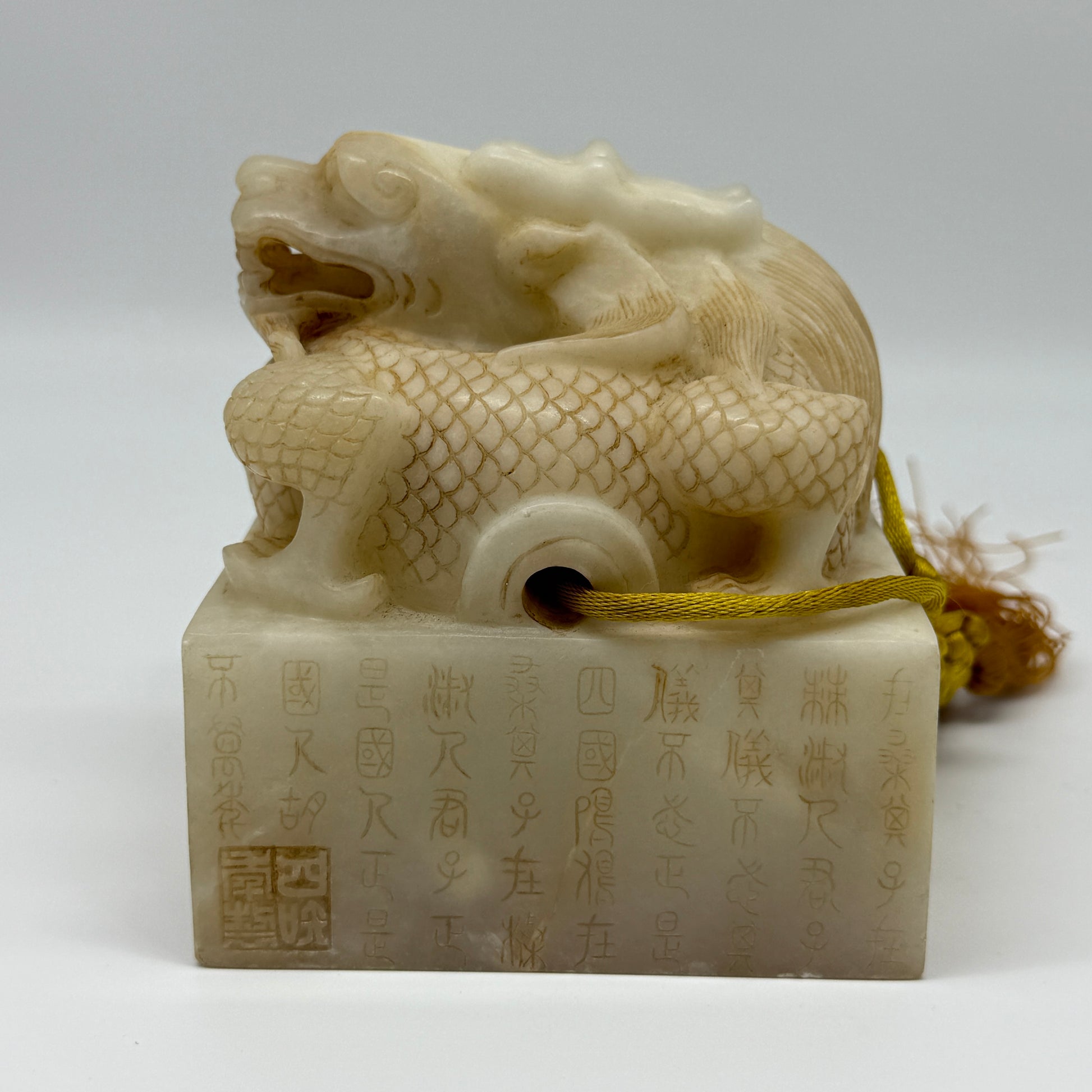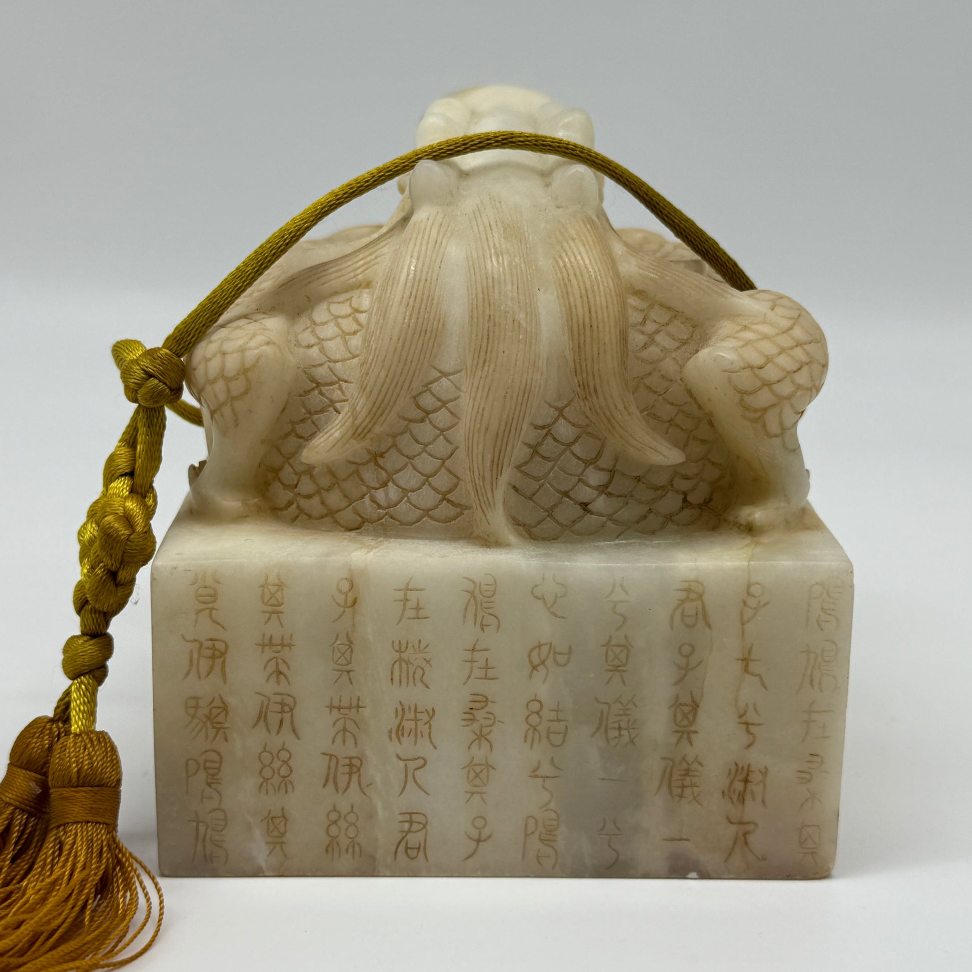 Rare Antique Natural Yellow White Nephrite Dragon Seal 2,154.7g 99.7 by 100.6 by 110.5mm