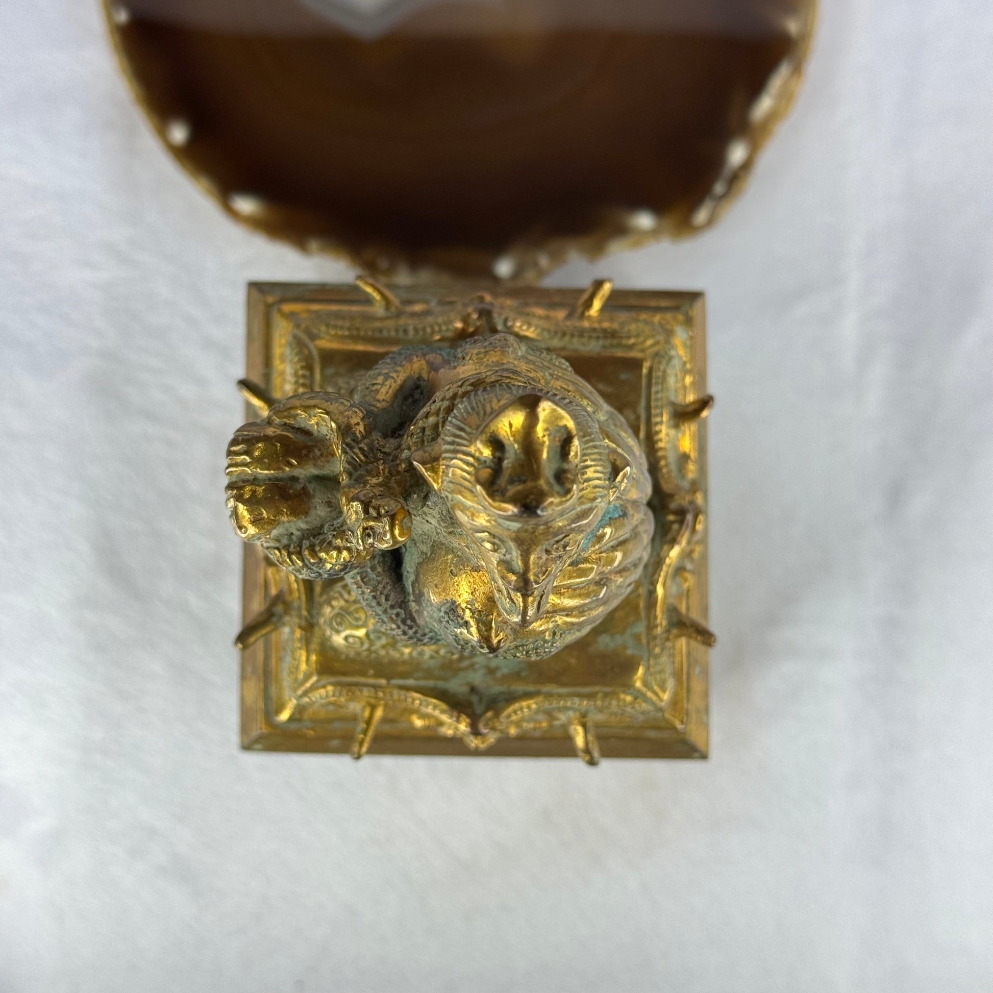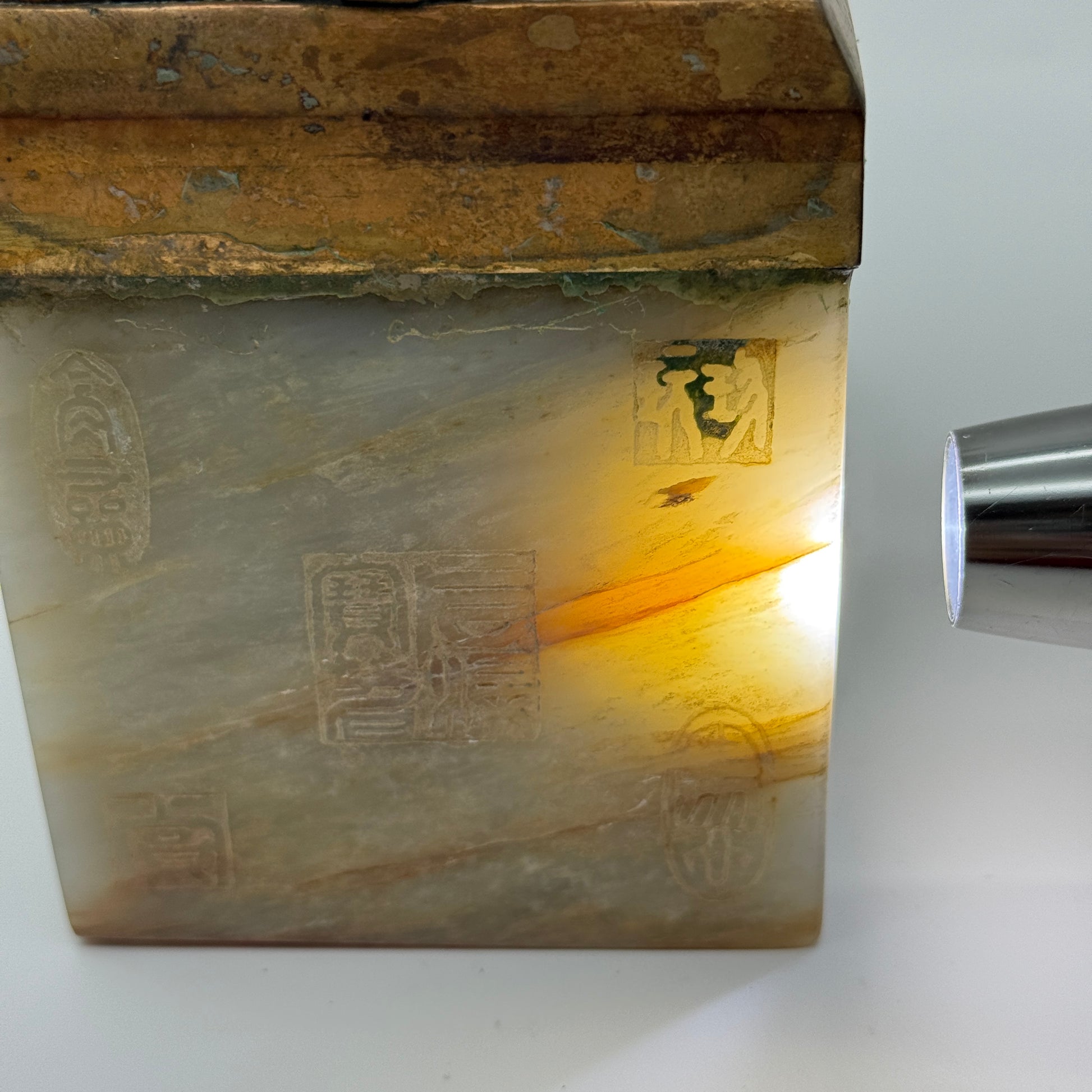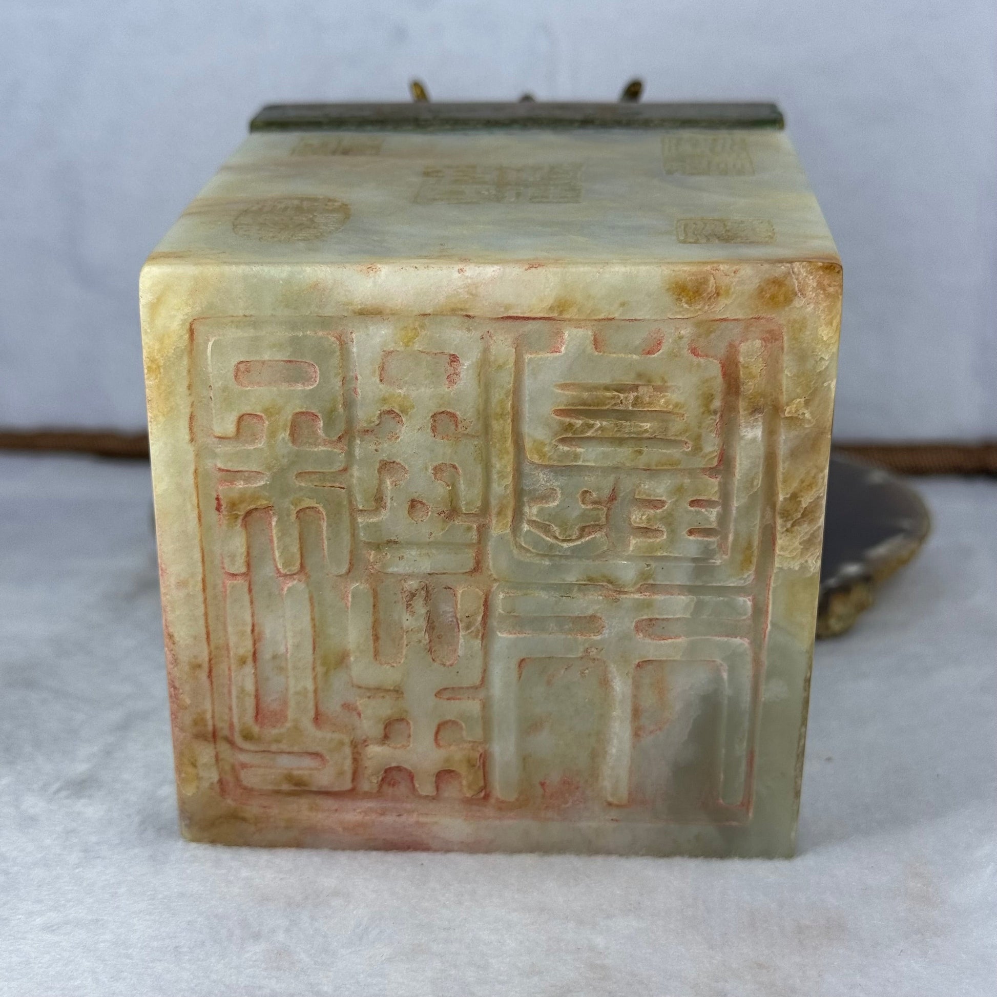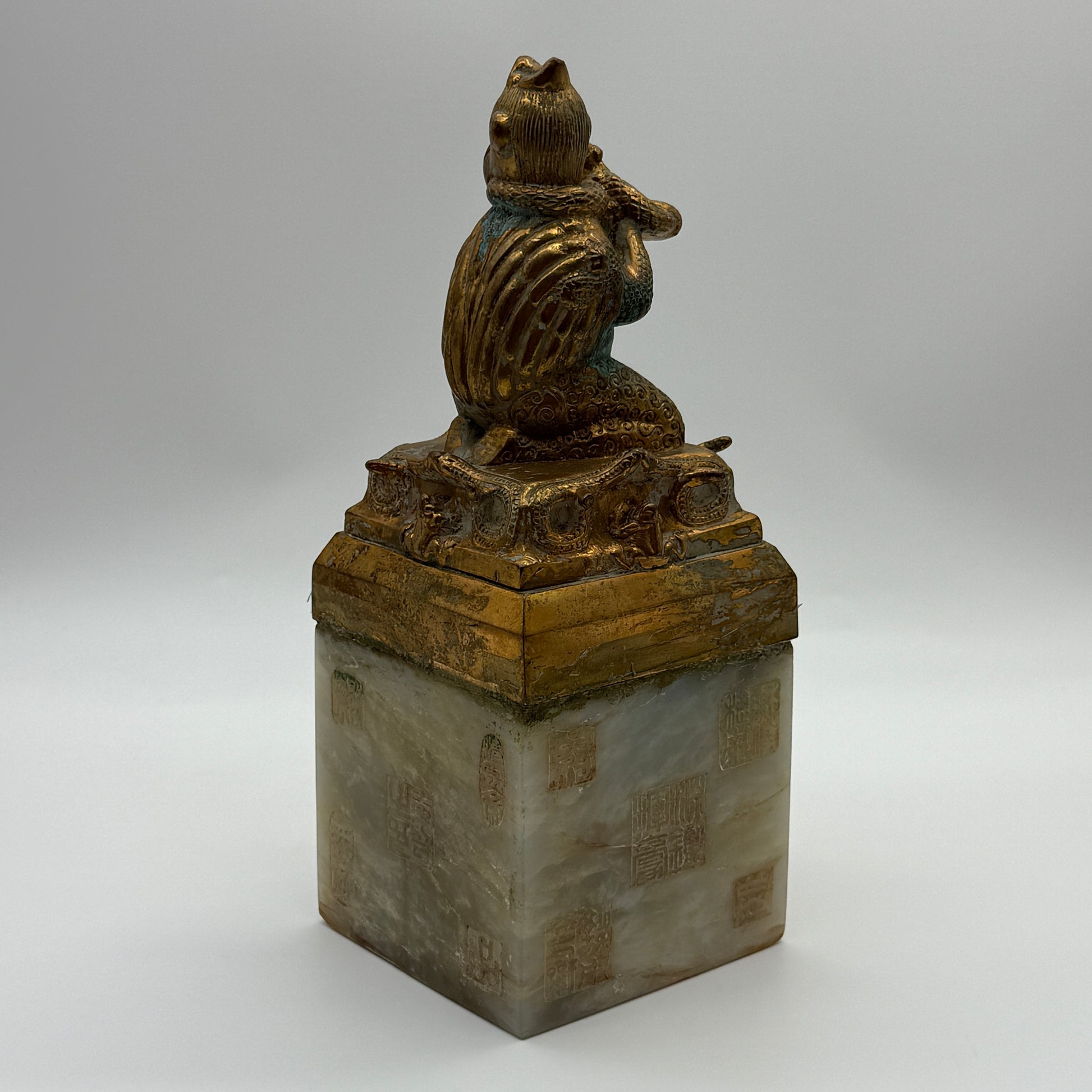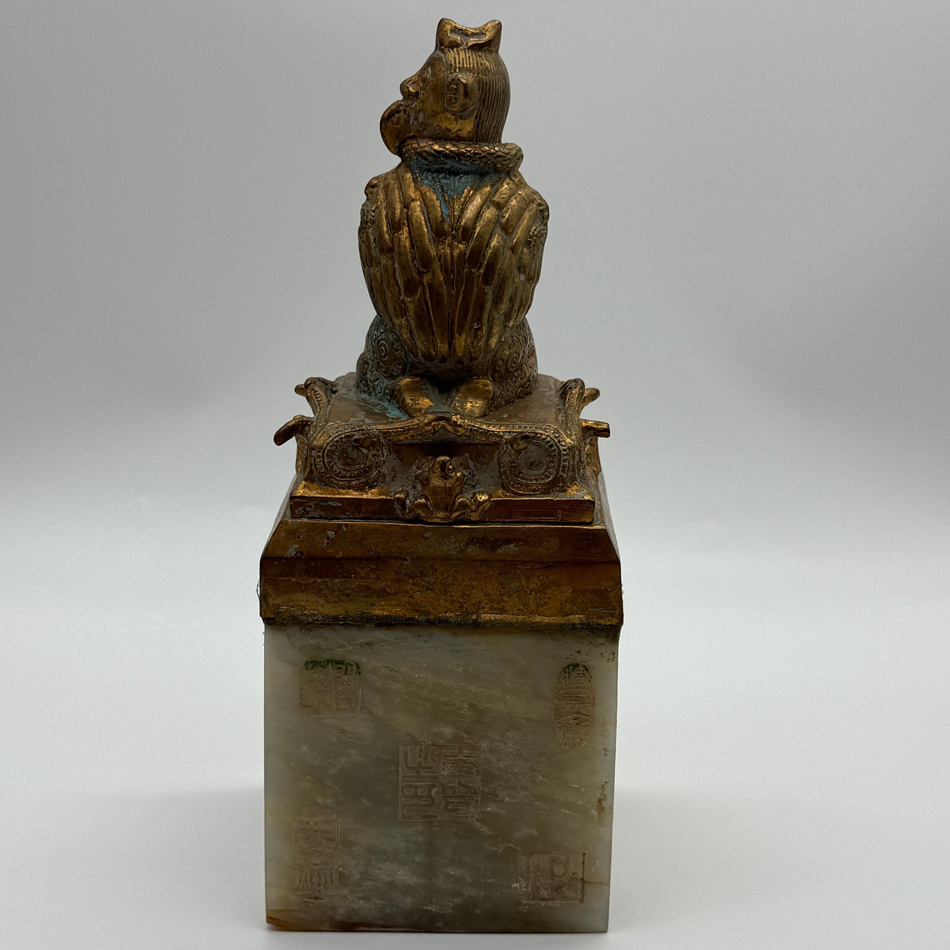 Rare Antique Nephrite with Copper Bird with Monkey Face with Snakes and Frogs Seal 2,751.6g 85.0 by 85.0 by 220.0mm
