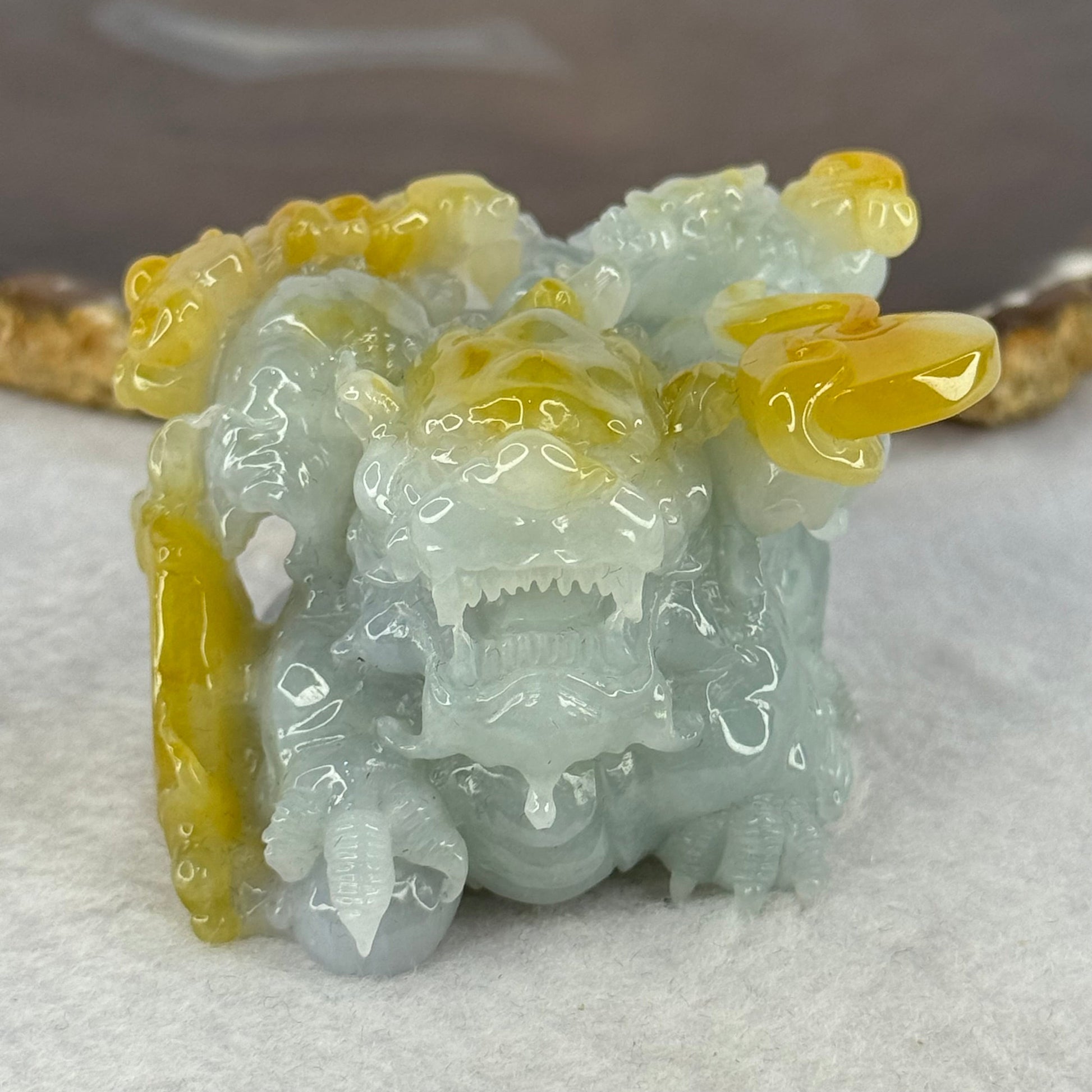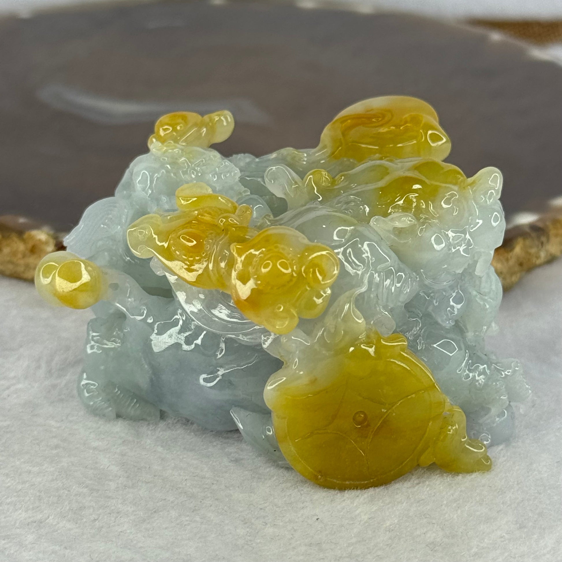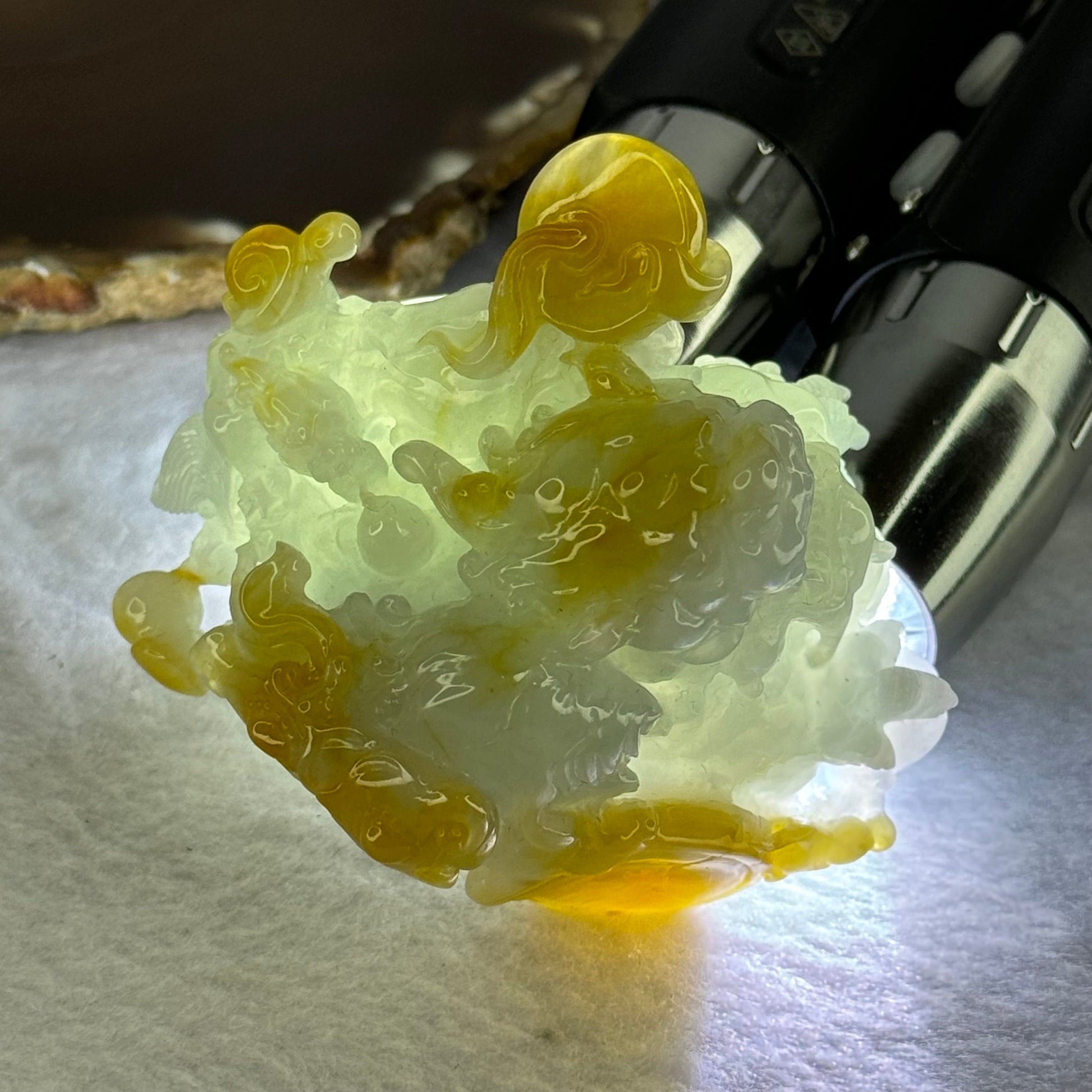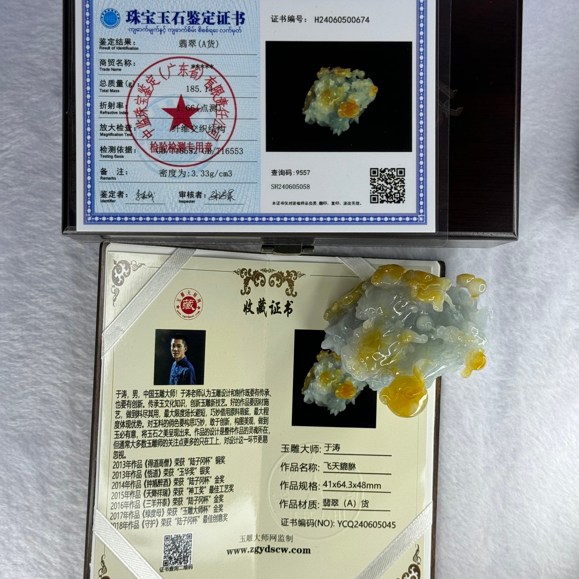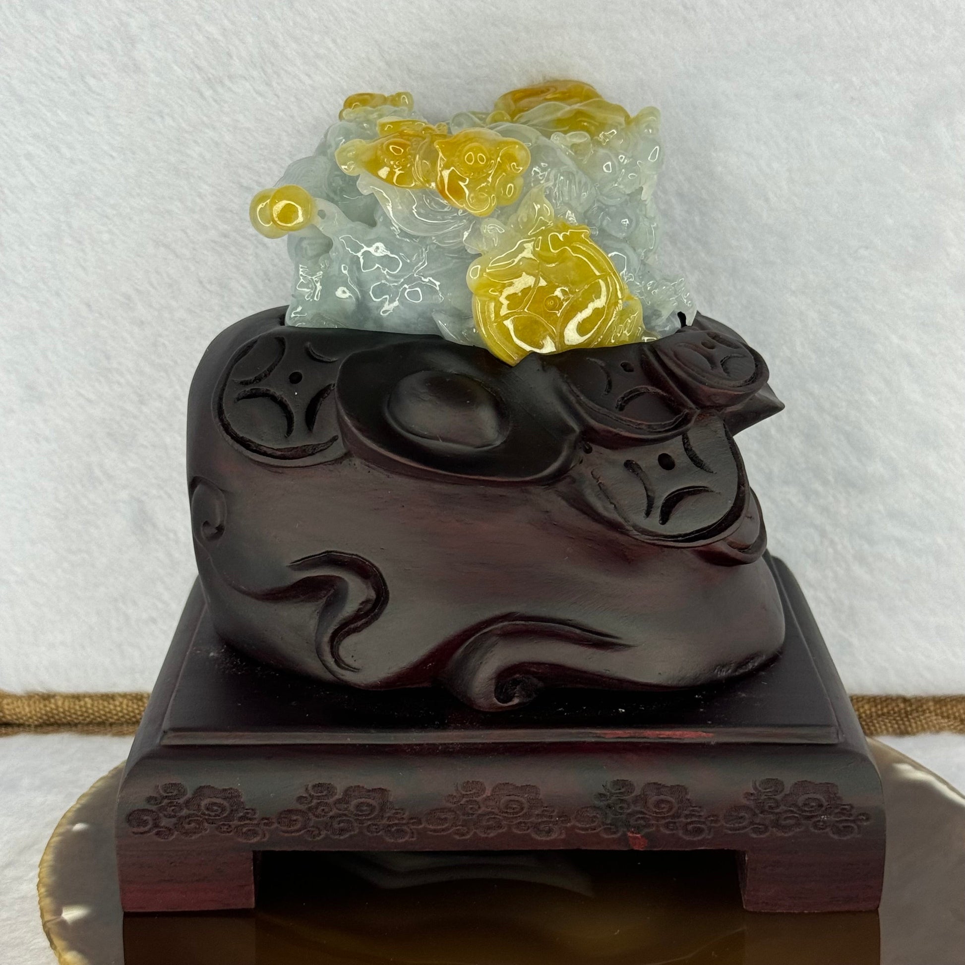 Rare Grand Master Type A Green with Lavender and Yellow 3D Flying Pixiu with Baby, Ruyi and Coins 大师A货三彩翡翠飞天貔貅摆件 185.14g 41.0 by 64.3 by 48.0mm with Wooden Stand