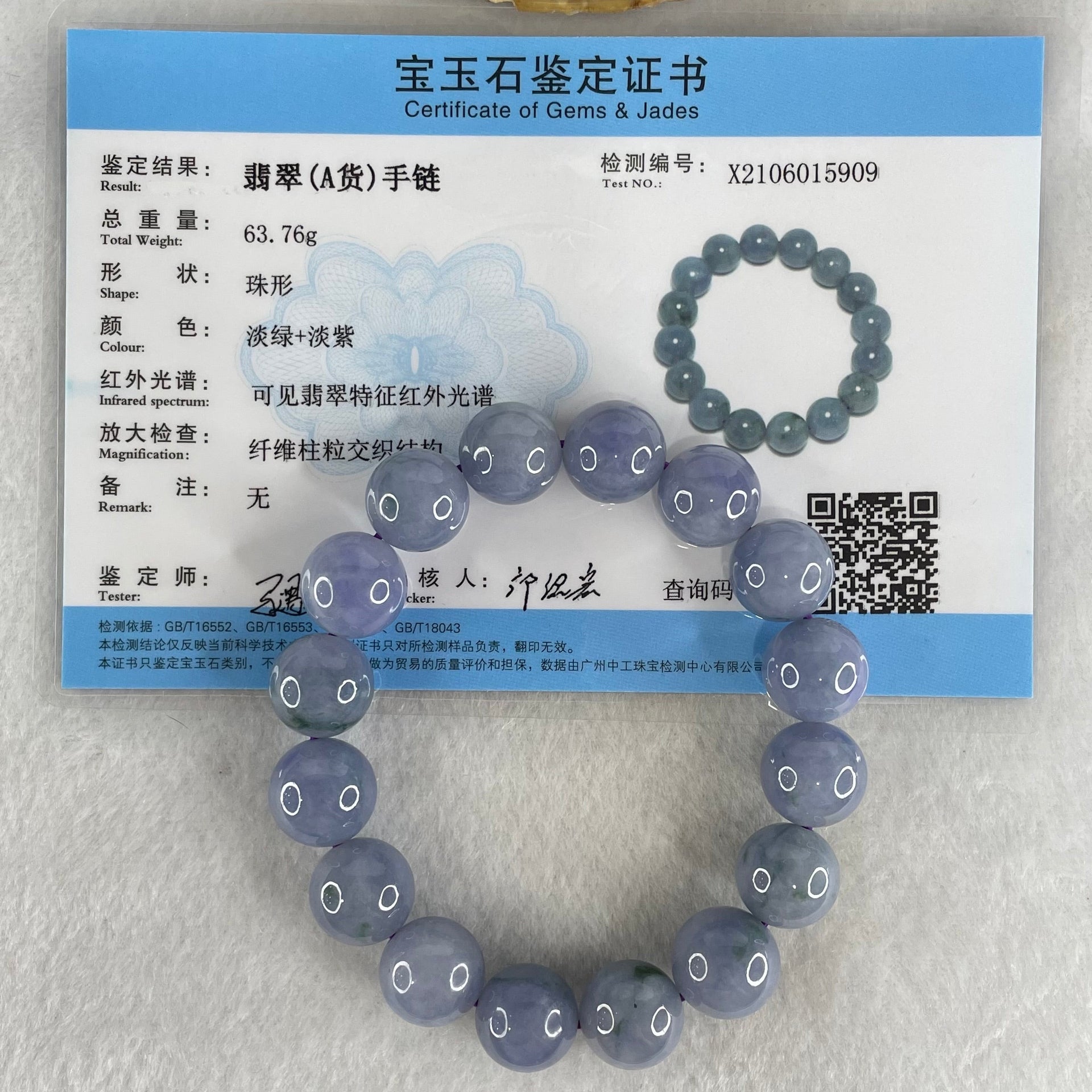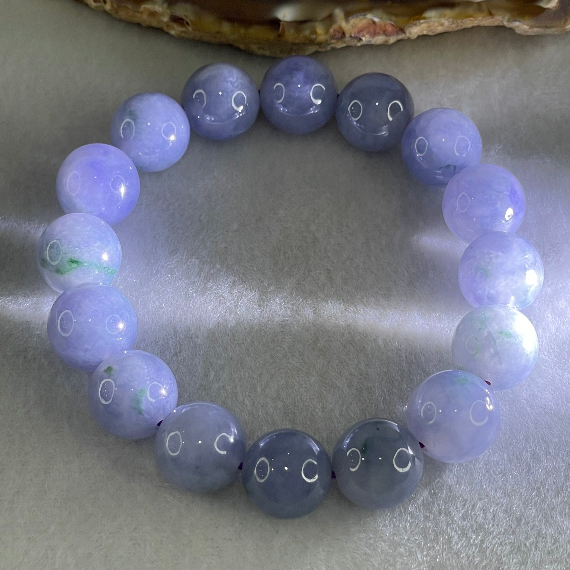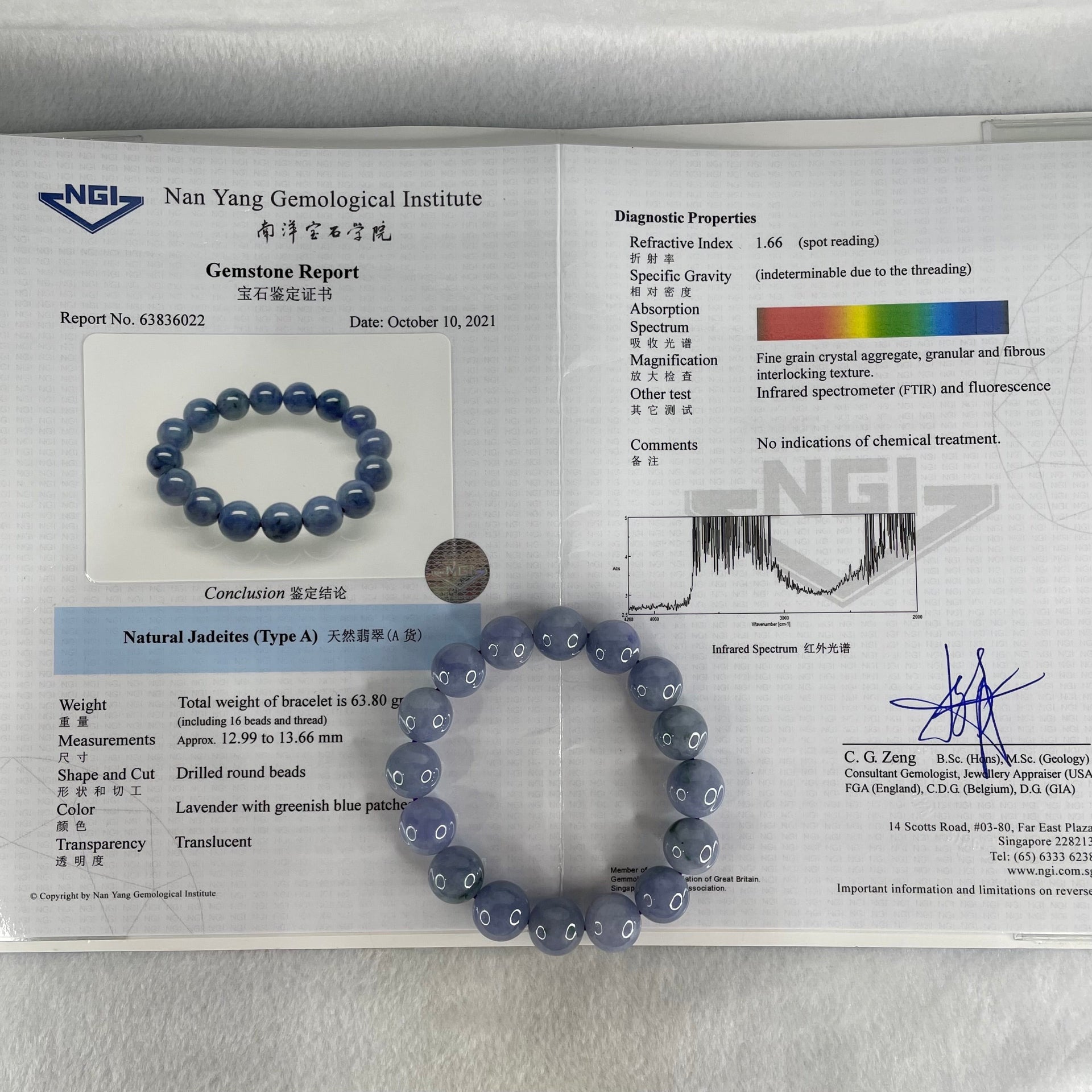 Rare High End Type A Myanmar Burmese Intense Deep Lavender Jade Jadeite Bracelet with NGI Cert - 63.76g 13.6mm/bead 16 beads