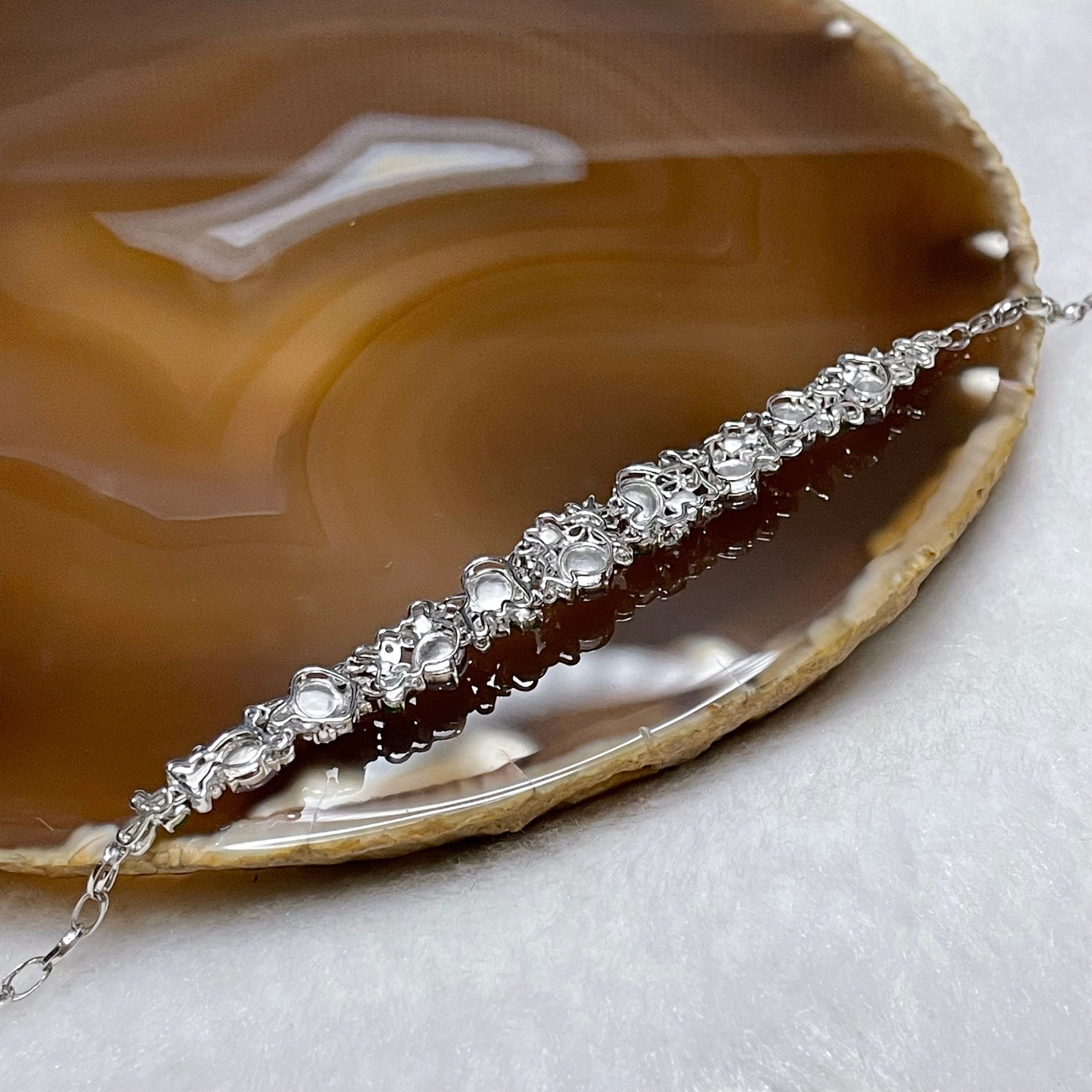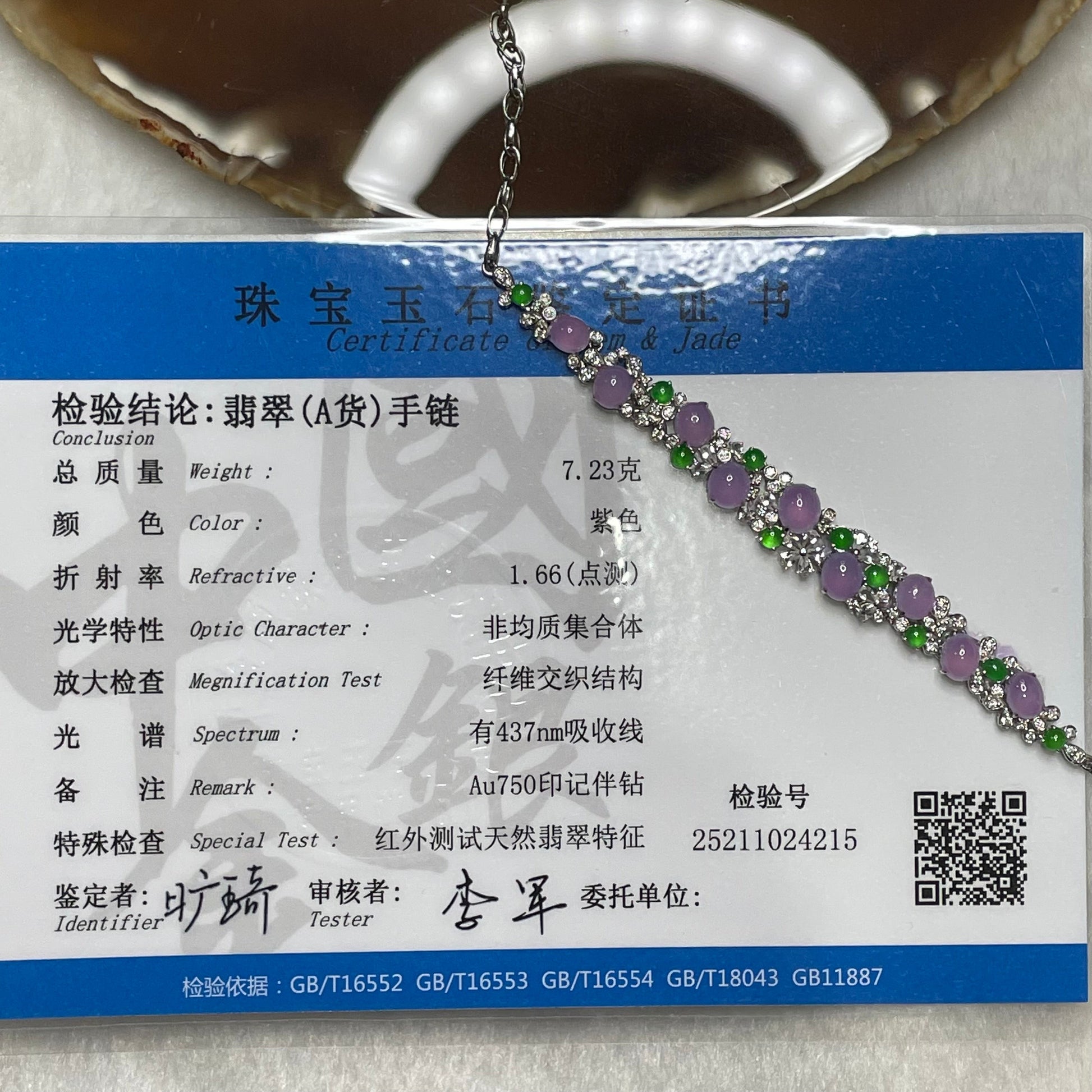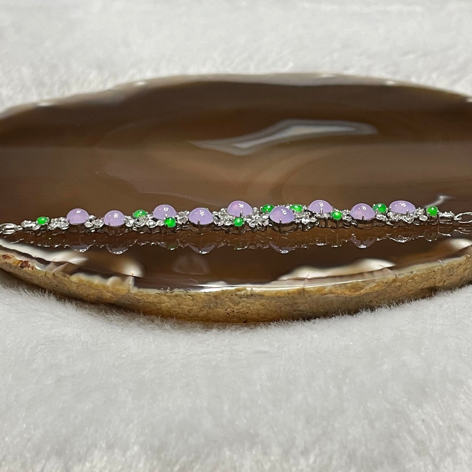 RARE Type A Semi Icy Lavender & Green Jade Jadeite Bracelet 18k white gold, natural diamonds & sapphires 7.23g Dimensions of middle piece: 88.2 by 9.2 by 4.7mm Length of Bracelet: 16cm