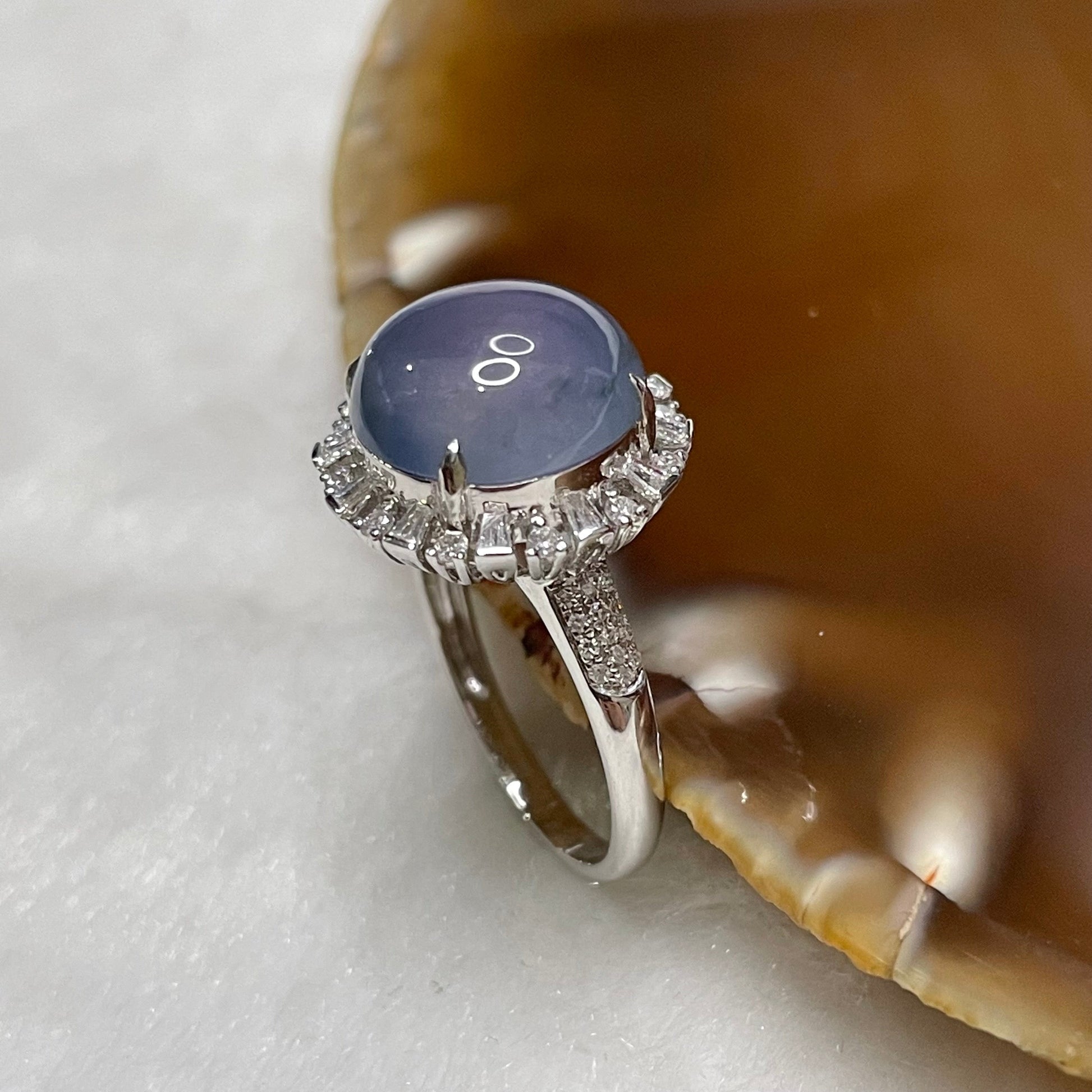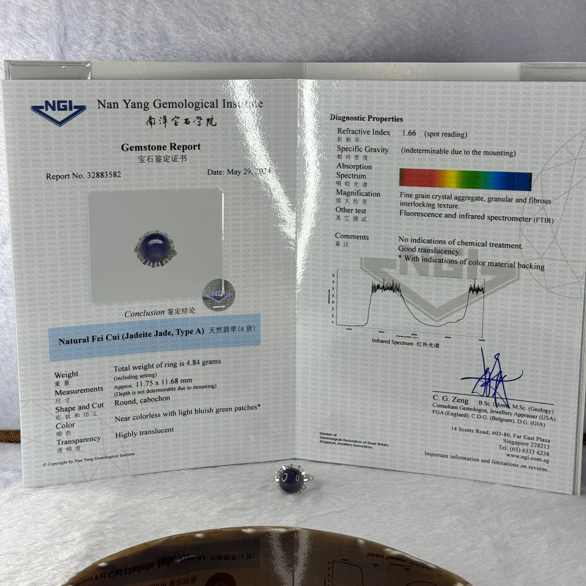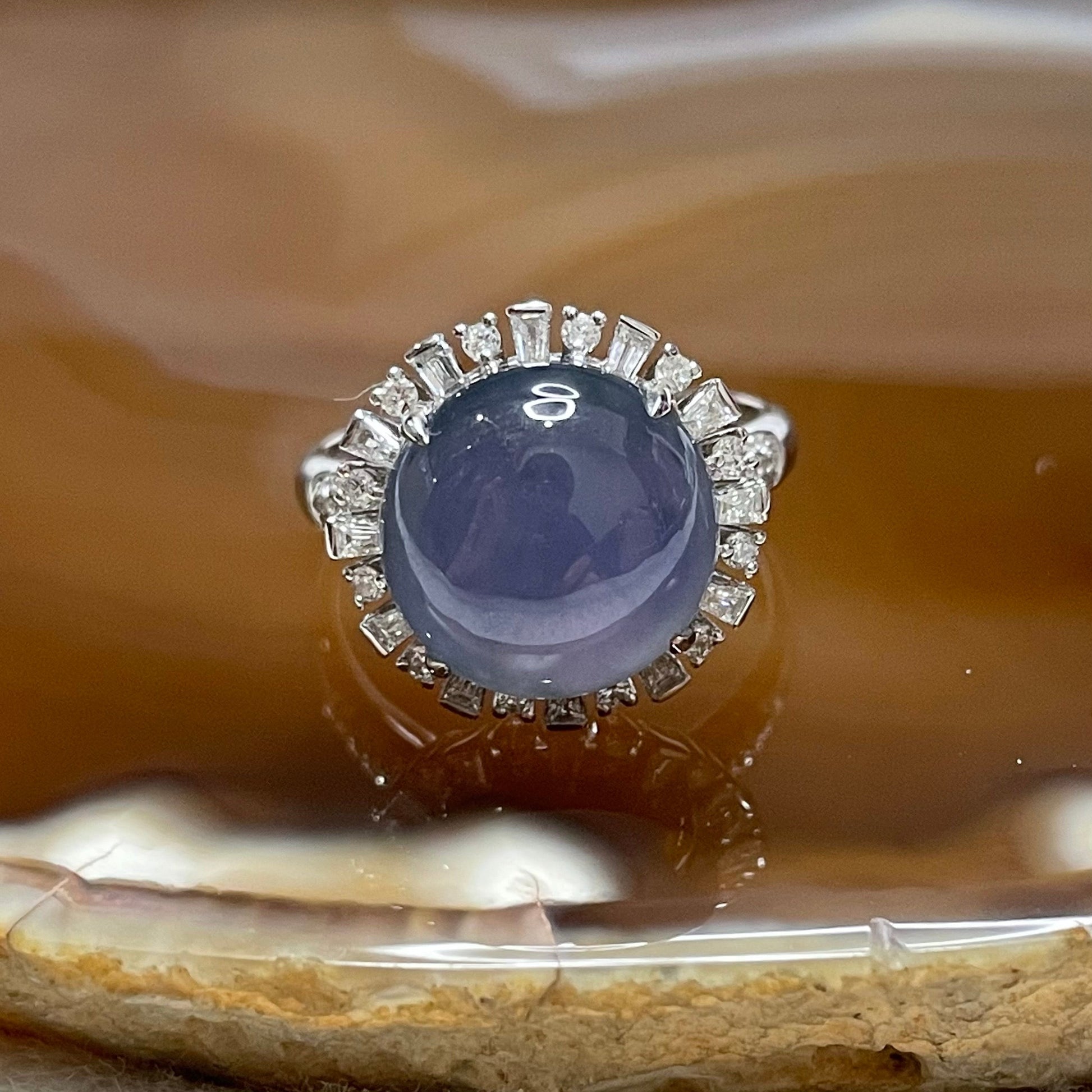 RARE Type A Semi Icy Lavender Jade Jadeite Ring 18k white gold & diamonds 4.84g Dimensions of jade: 11.6 by 11.6 by 4.2mm US 6.25 HK 14 with NGI cert
