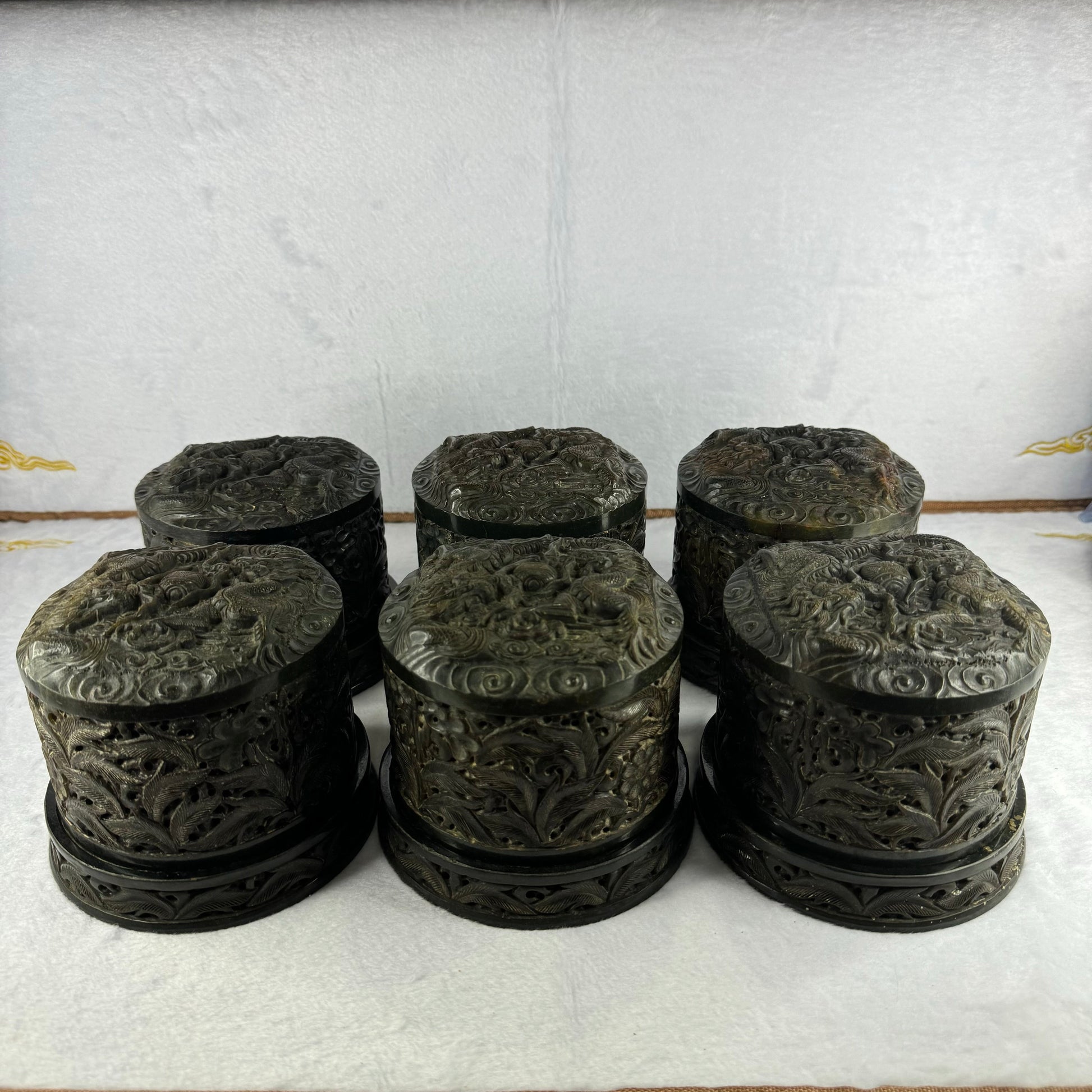 Super Rare Natural Nephrite Seal Set of 6 Double Dragons Seal with Flowers total weight 12,245.5g each about 2,060.7g 108.1 by 108.1 by 83.8mm
