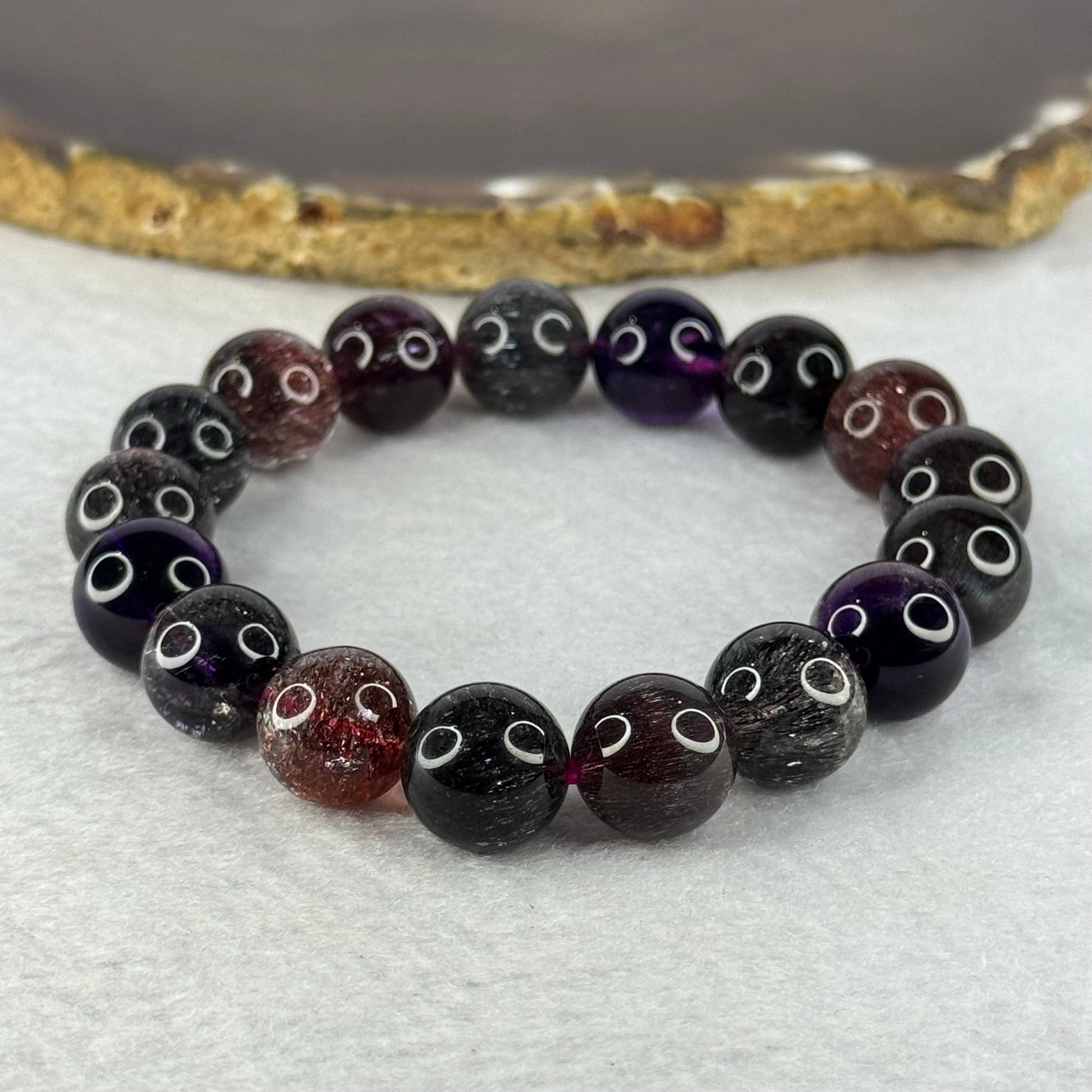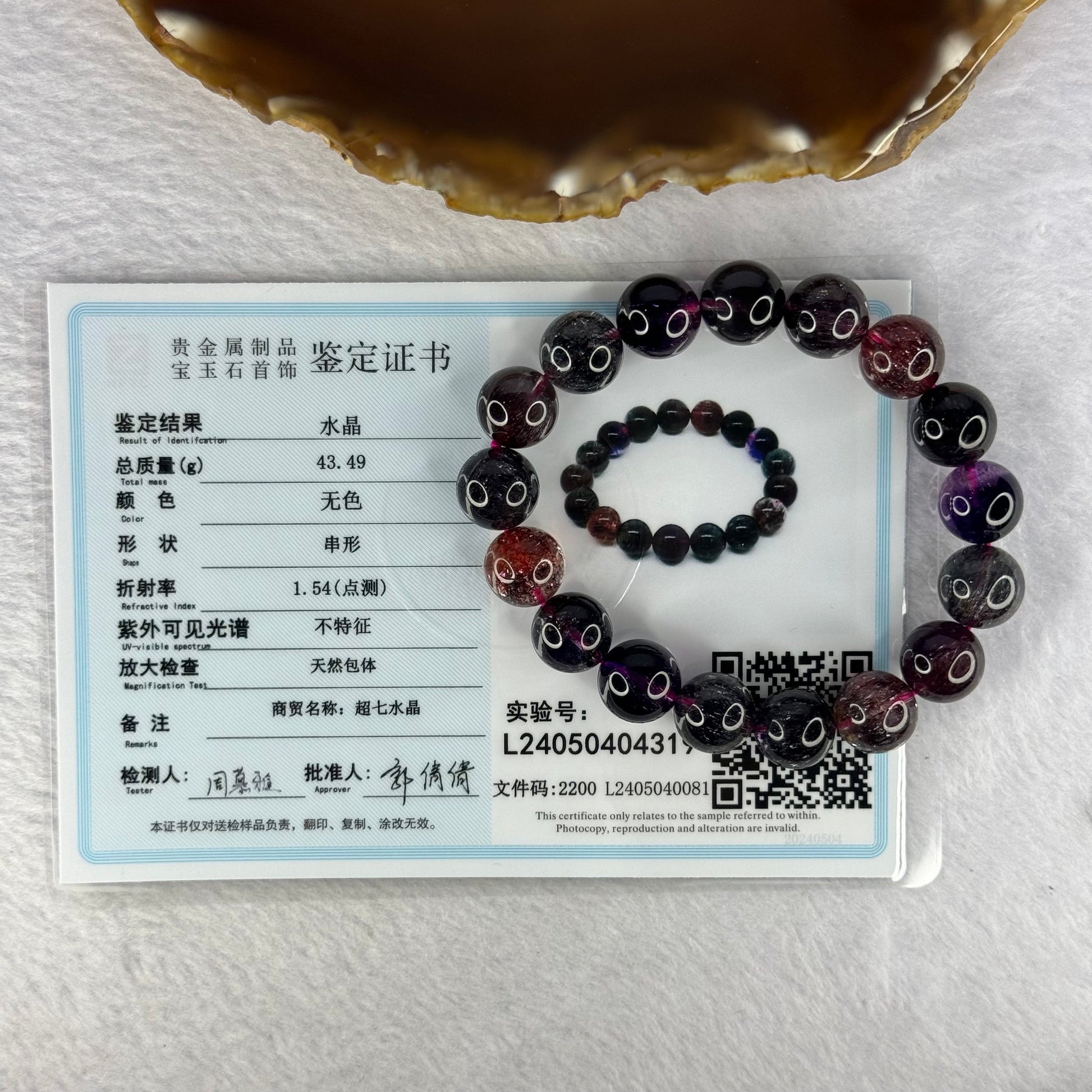 Super Rare Triple Excellence Grade Natural Transparent Dark Blackcurrant Super 7 Beads Bracelet 超级罕见三重卓越级透明深天然黑加仑超级七珠手链 43.49g 18cm 12.5mm 17 Beads