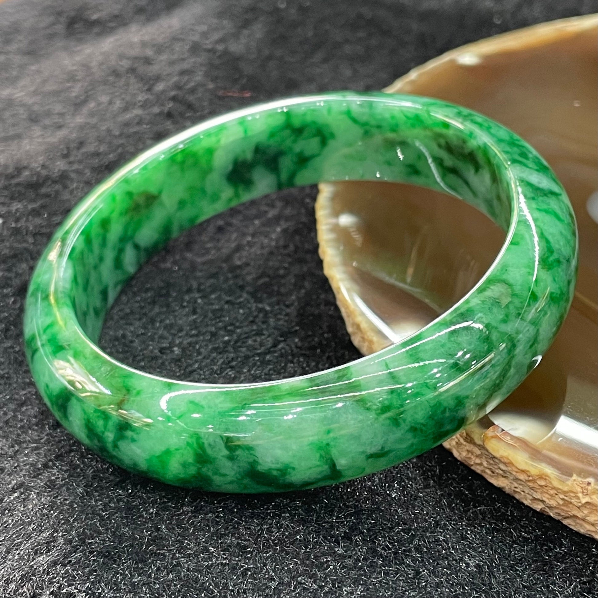 Type A Burmese Jade Jadeite Intense Green Bangle - 62g inner Diameter 58.5mm thickness 14.4mm (Close to Perfect)