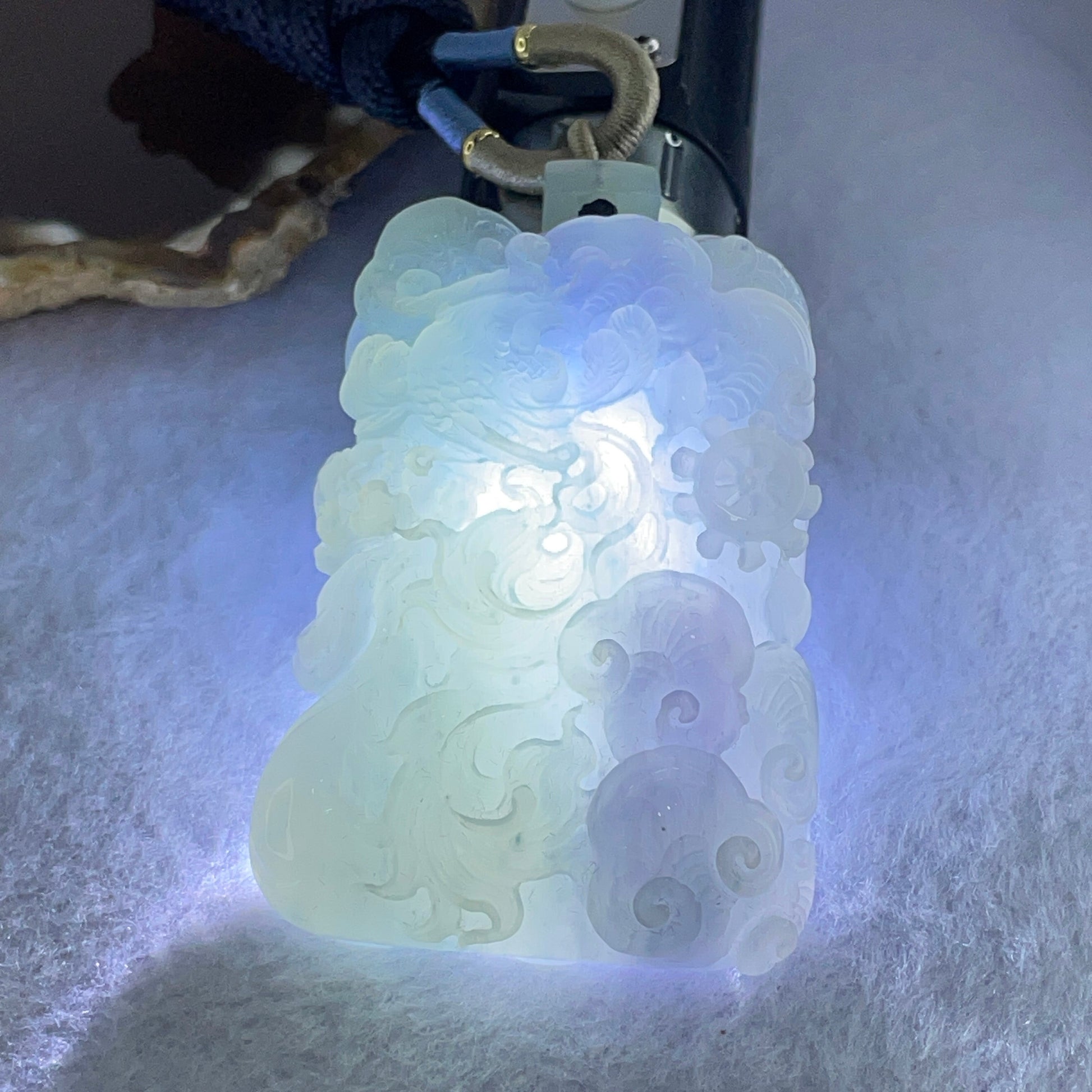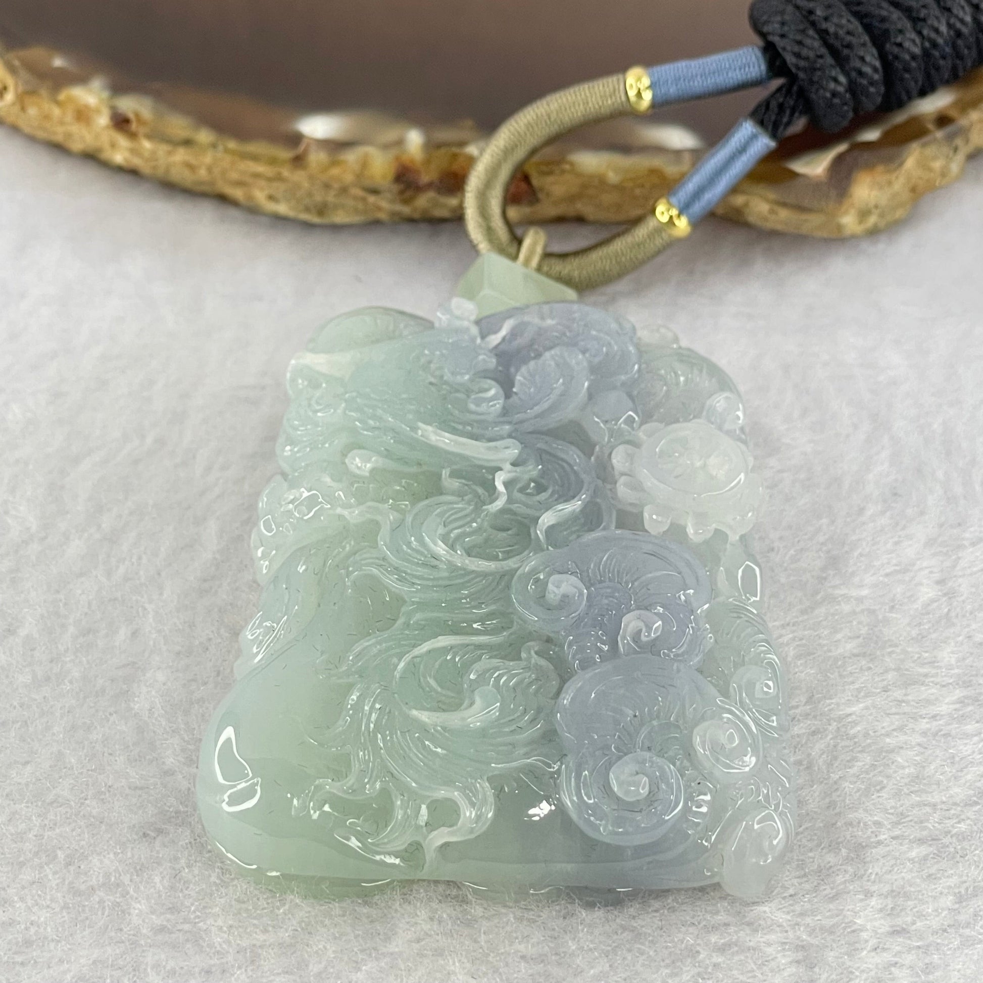 Type A Light Green and Bright Lavender Jadeite Phoenix Ruyi Wheel Pendant 80.00g 62.9 by 44.5 by 13.5mm