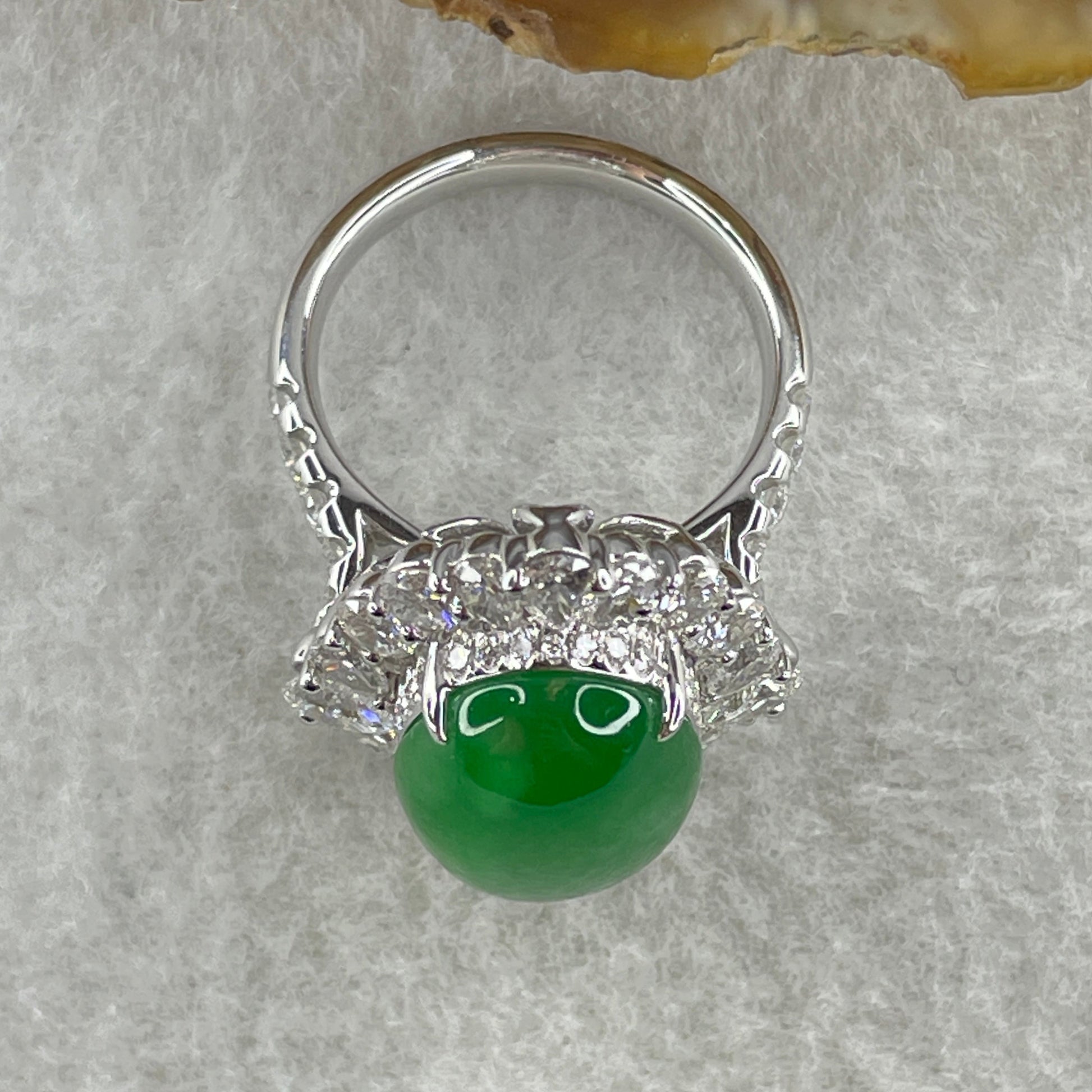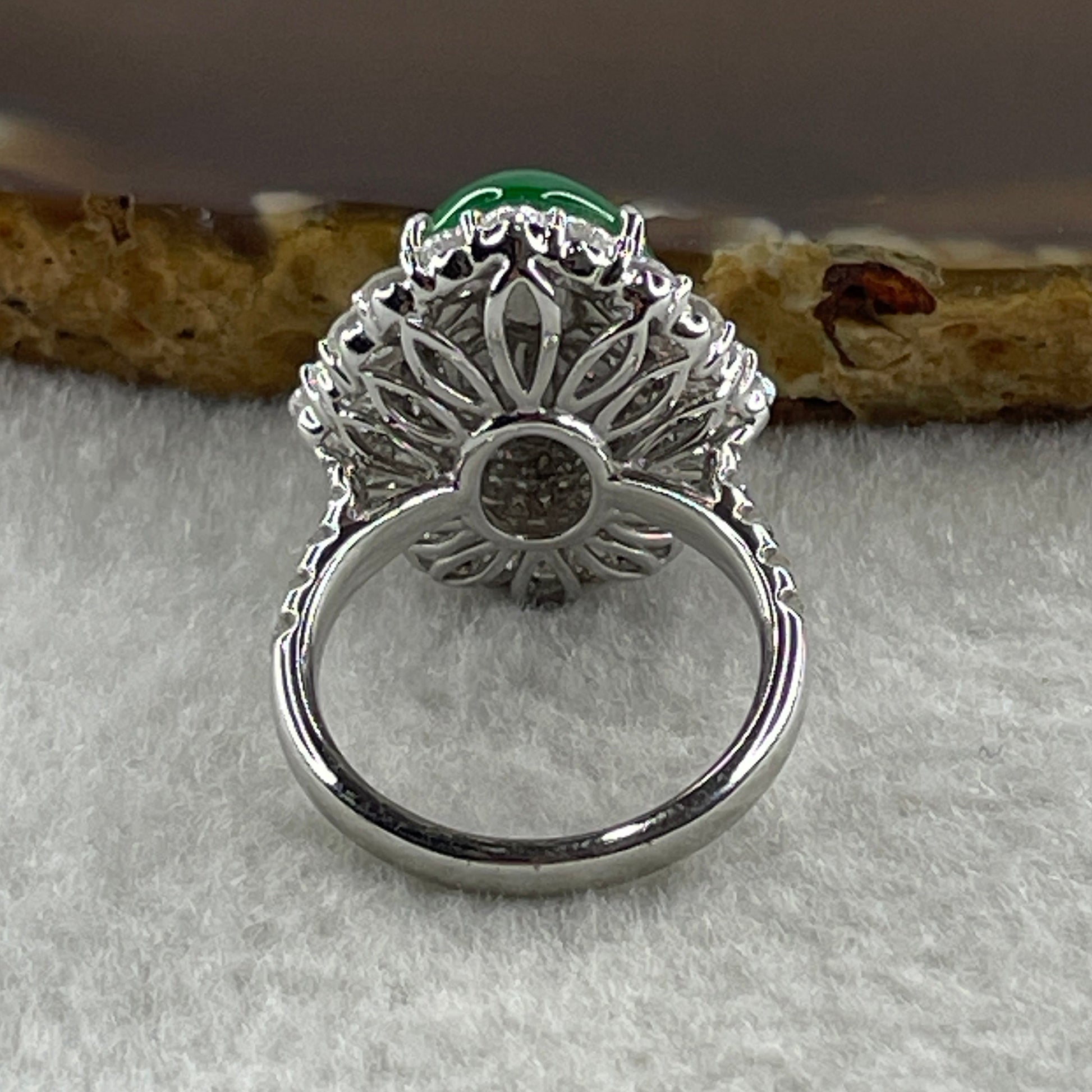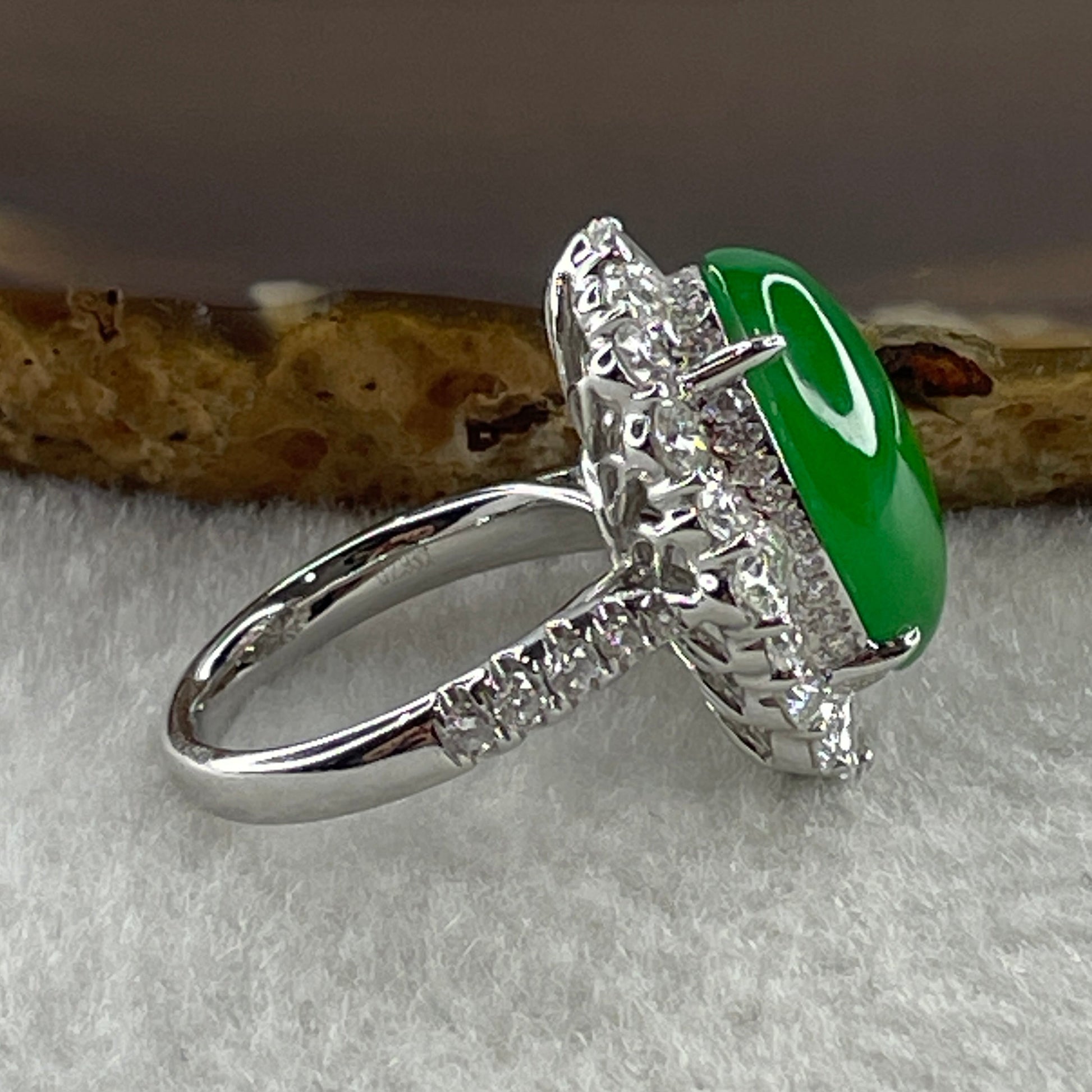 Very High Quality Highly Translucent TYPE A Natural Icy Intense Green Jadeite Oval Cabochon Approx 18.13 by 11.66mm Total Weight 11.42g including Natural Diamonds 2.93ct and Au750 White Gold Ring Setting US 7.25 HK 16 Inner Diameter 17.5mm with GIA Cert