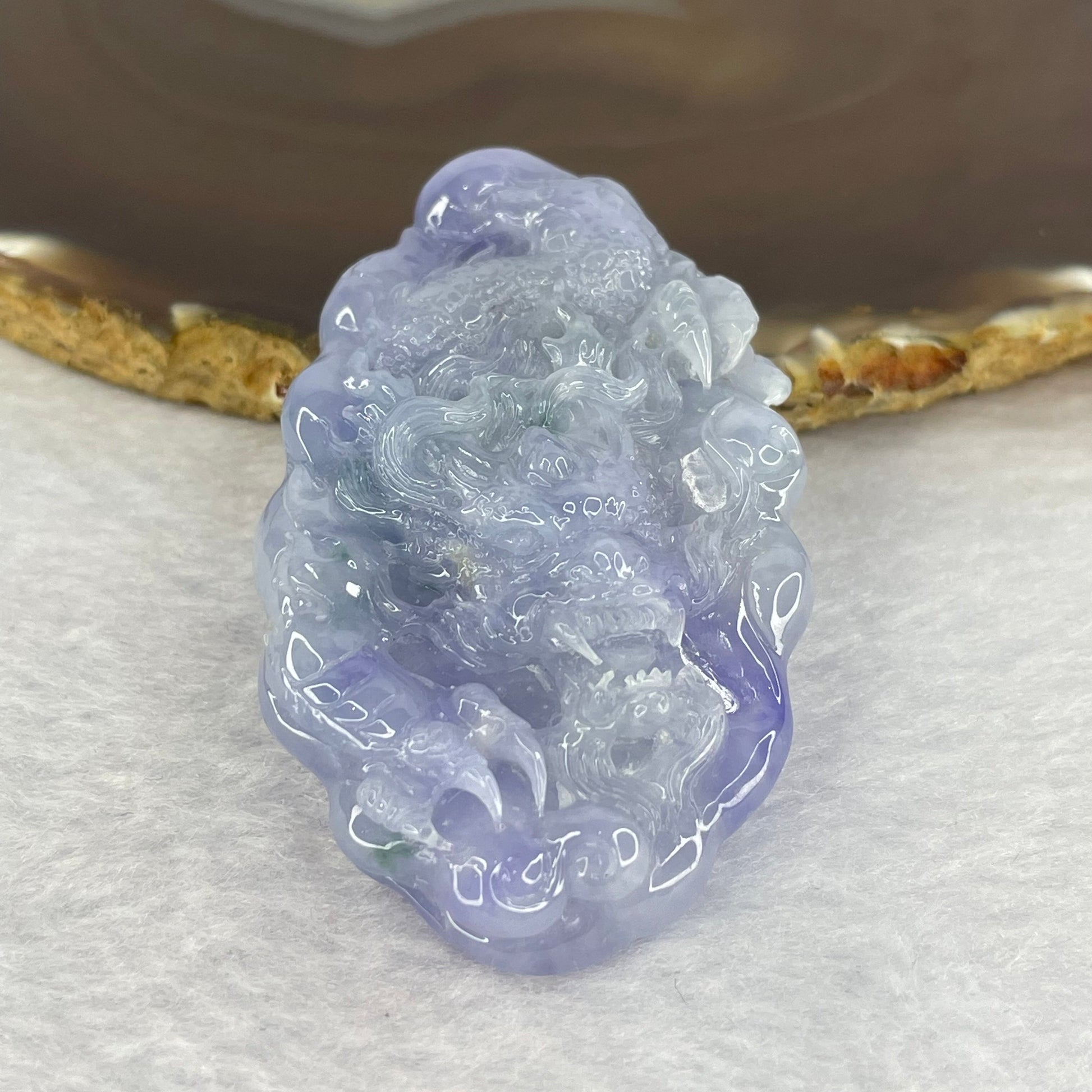 Very Rare Grand Master Semi Icy Type A Intense Lavender Jadeite Dragon 60.71g 68.0 by 39.20 by 16.8mm with Wooden Stand