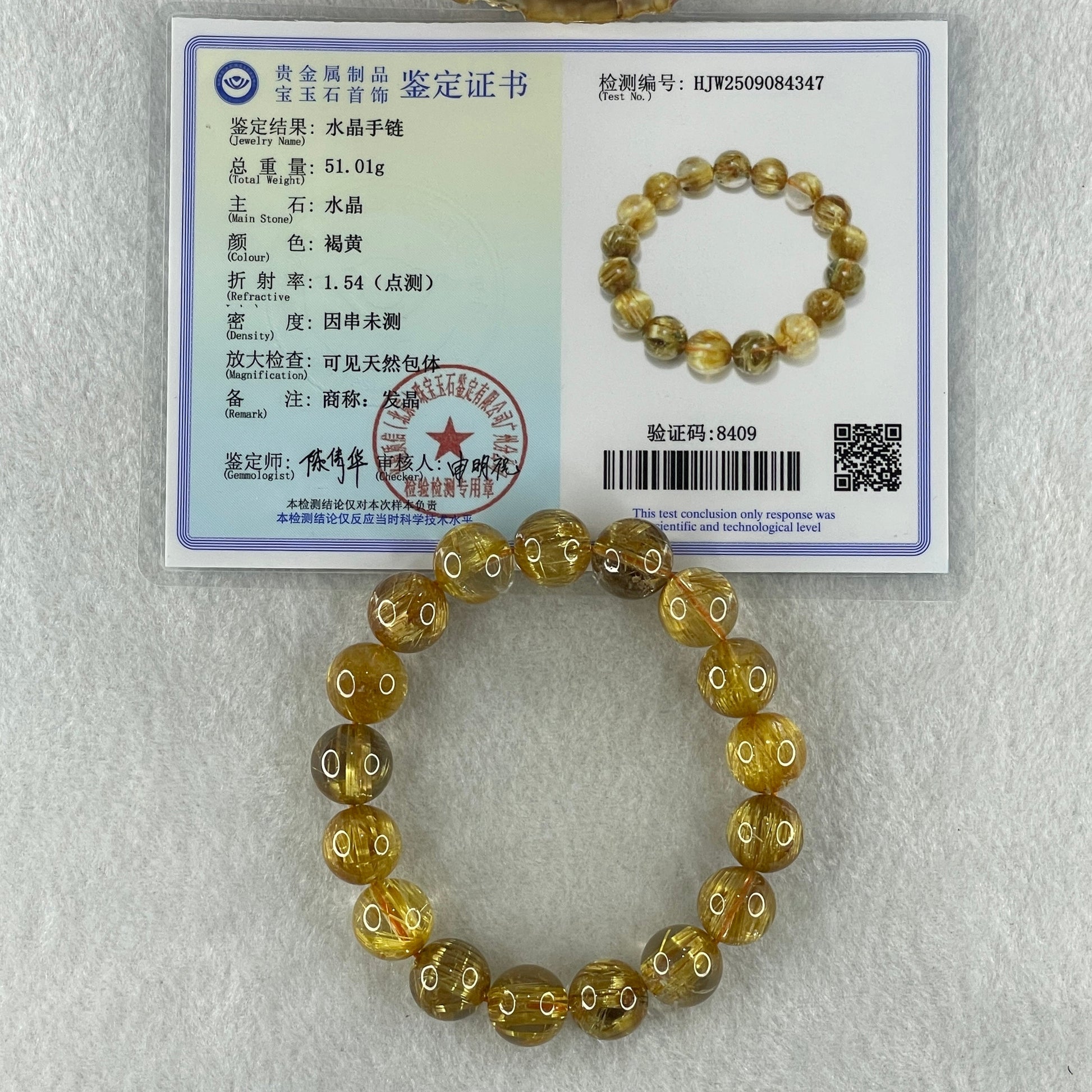 Very Very High Quality Golden Rutilated Quartz Beads Bracelet 51.01g 17.5cm 13.0mm 17Beads